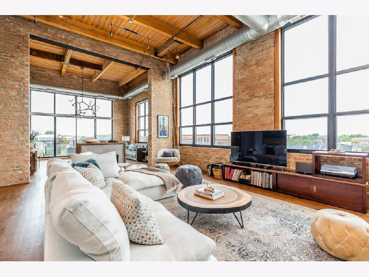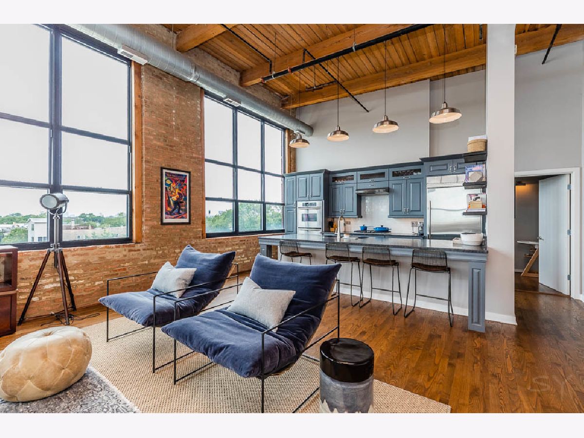 Rarely available huge 2BD/2BA timber and exposed brick corner penthouse loft in the heart of Bucktown! Spectacular unobstructed views and tons of natural light make this sought after unit a true gem. Unit 404 is the largest offered tier in the building at approximately 2200 sq. ft. and features 16' timber ceilings, hardwood floors, chef's kitchen and 2 heated garage parking spots (one extra large space w/ side storage) along with additional detached storage. You'll also find 2 gorgeous outdoor spaces including a large balcony with gas line that overlooks the 606 and Churchill park along with a private rooftop deck assignment showcasing 360 degree views of the Chicago skyline from one of Bucktown's tallest vantage points! The loft features a full wall of windows on the north and west sides and a huge west-facing deck . The floorplan includes two bedrooms and two full bathrooms, one en-suite and one Jack & Jill, at opposite ends of a 56' combined living and dining area separated by a custom gas fireplace. The open kitchen prime for entertaining features a large island, double oven, Wolf fridge and freezer, Bosch dishwasher, and wine fridge. Custom cabinetry with recessed lighting was also added by the current owners. A utility room with built-in floor to ceiling cabinetry and new stacked washer dryer completes the space, providing a hidden pantry area and an abundance of storage! Top-end appliances and mechanicals have all been purchased and installed within the last several years. Easy access to the 90/94, CTA/blue line and a steps to some of the finest parks, dining & shopping in the City!