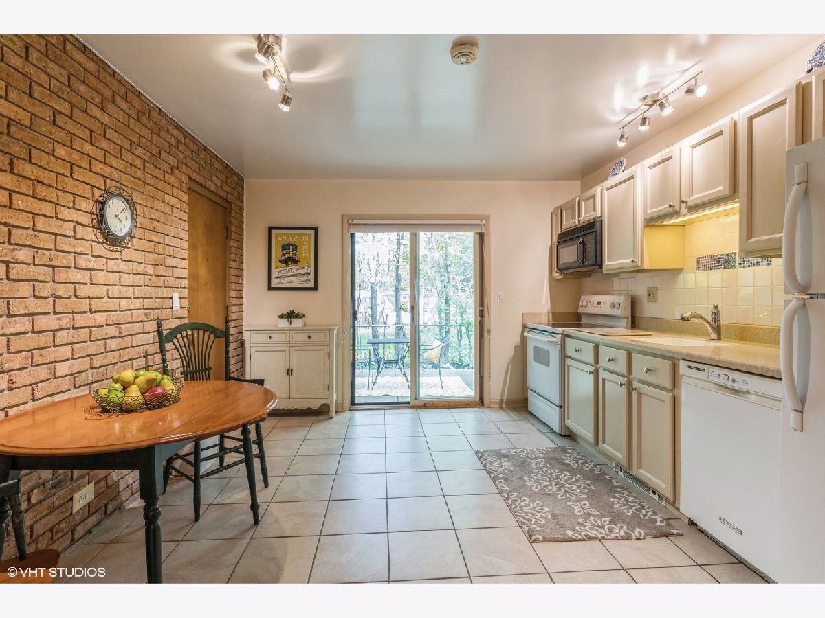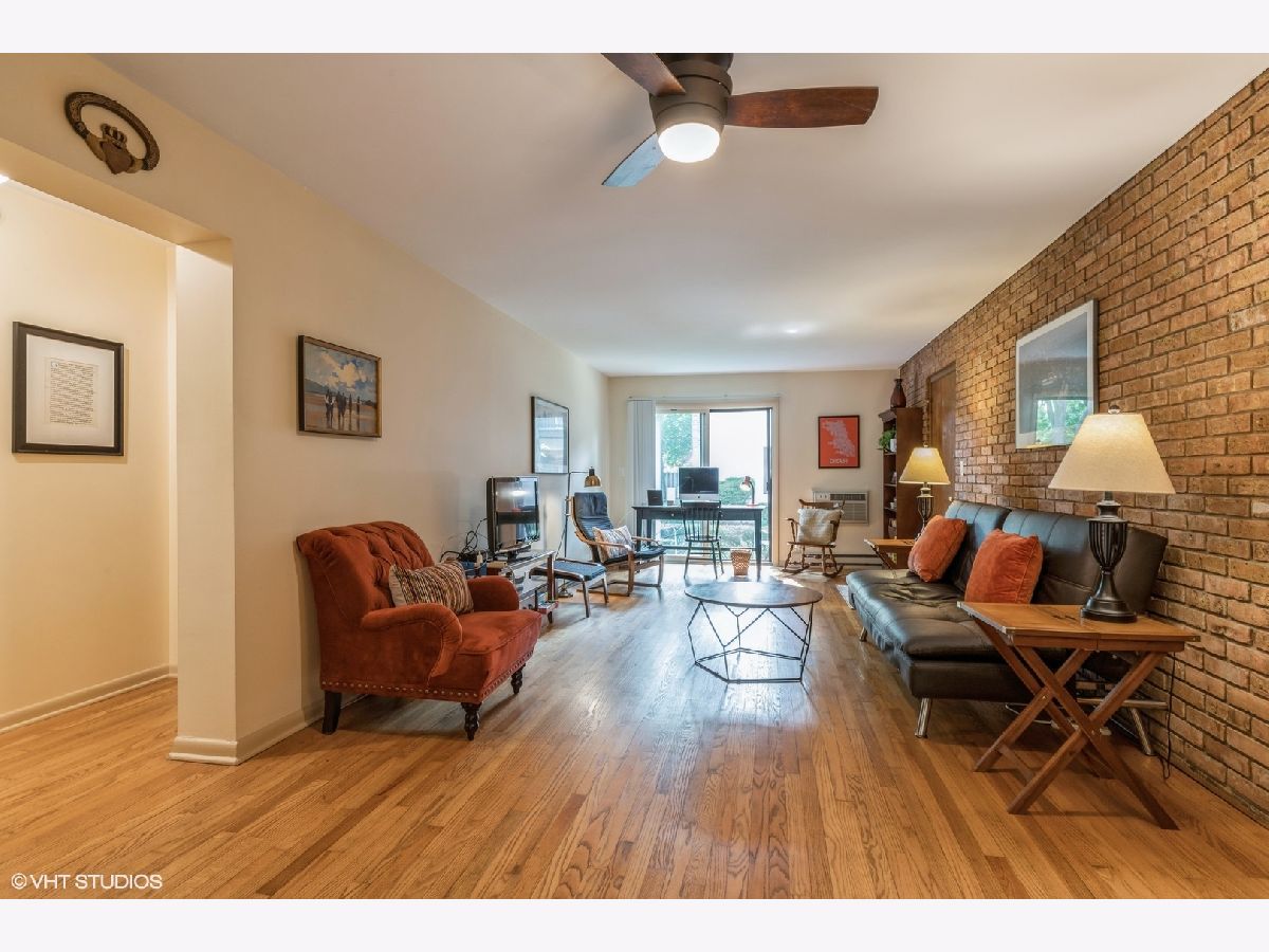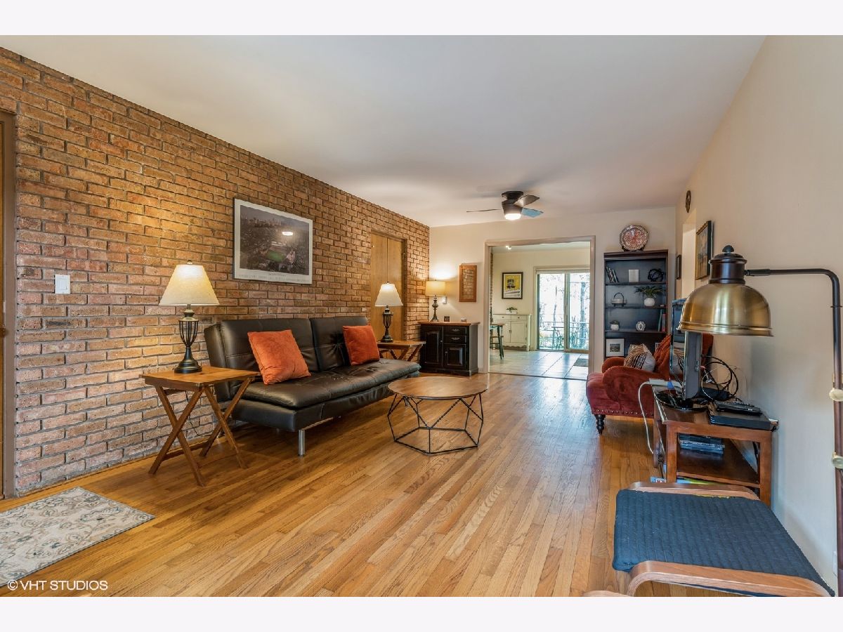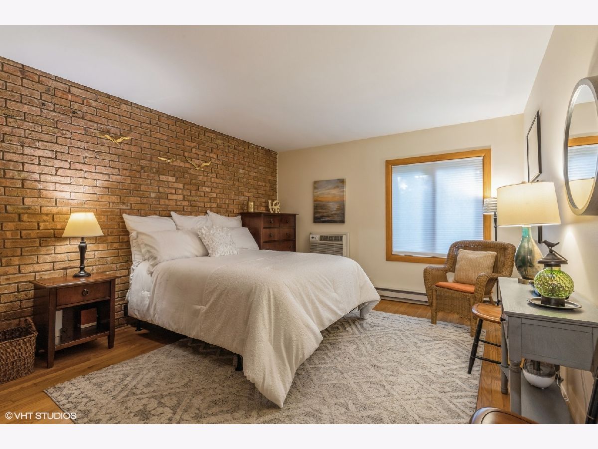 Great location for this 2 bedroom 1 bath unit right in downtown Glenview. Charm galore includes: exposed brick interior walls, hardwood floors, open floor plan, spacious bedrooms, cute back patio and front porch. This place comes with 1 car garage and storage. Blocks to grocery, library, parks, train and shopping.