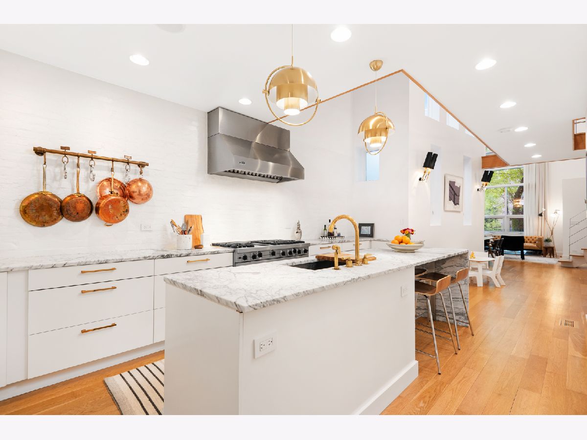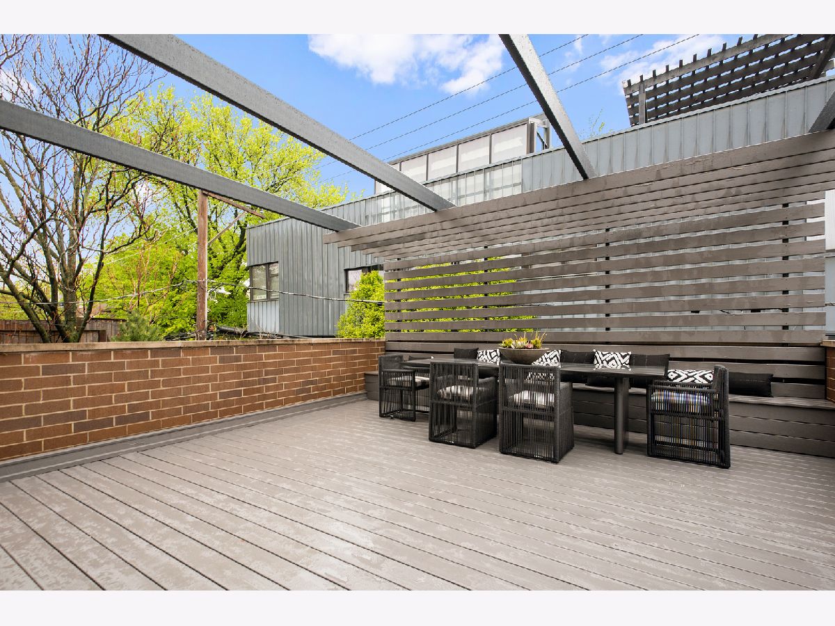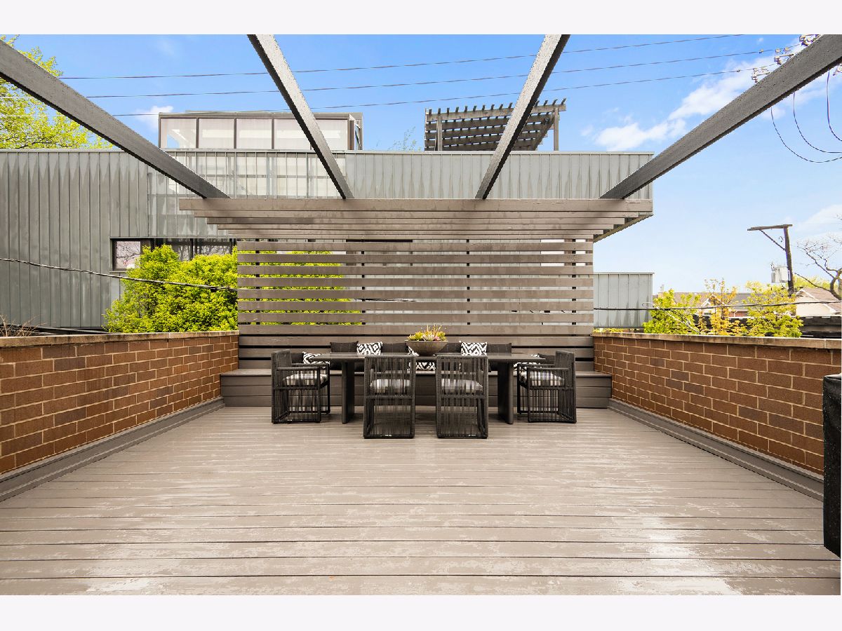 Professionally designed renovation of this stunning all-brick and limestone home in prime A+ Bucktown location. Impressive main level features dramatic 2-story living/dining room with 20' custom draperies, stylish built-in banquet, architecturally unique floating staircase and swoon-worthy kitchen which boasts gorgeous marble countertops and waterfall island, commercial grade appliances, designer brass fixtures and pantry closet. Modern, open-concept landings create a sense of connection from the main level to family room on 2nd level which opens directly onto fabulous outdoor space with pergola. Master suite features custom organized closets and luxurious master bath with Jacuzzi tub and separate shower with body sprays. Lower level features terrific ceiling heights, recreation/media room, exercise room currently used as playroom, laundry room, and guest bedroom/bathroom. Full skyline views from roofdeck and coveted attached 2 car garage complete this amazing home. Conveniently situated with easy access to 90/94, blue line, Metra, 606 Trail, parks and all of the best restaurants and boutiques in the heart of Bucktown.