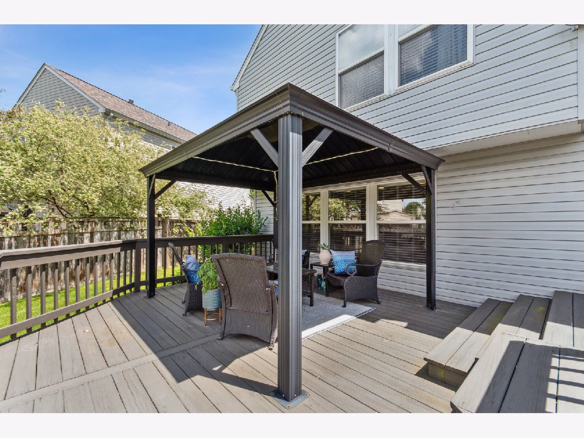 Open concept floor plan will greet you with beautiful espresso hardwood floors! They seamlessly flow into the updated kitchen that offers, granite countertops, stainless steel appliances, and a cozy eat-in area perfect for casual dining. Enjoy relaxing in the sunken living room, maybe make some smores indoors with your gas fireplace (logs stay) and take advantage of the convenience of the first-floor laundry. Step outside to the fenced backyard, complete with a wood deck and charming gazebo (also stays). Upstairs, you'll find three spacious bedrooms, including the primary suite with a walk-in closet and a private bath featuring dual sinks and granite counters. This home also offers peace of mind with a new roof installed in 2017 and HVAC system replaced in 2019. Owners are the listing brokers and we are excited to present this exceptional home to you.
