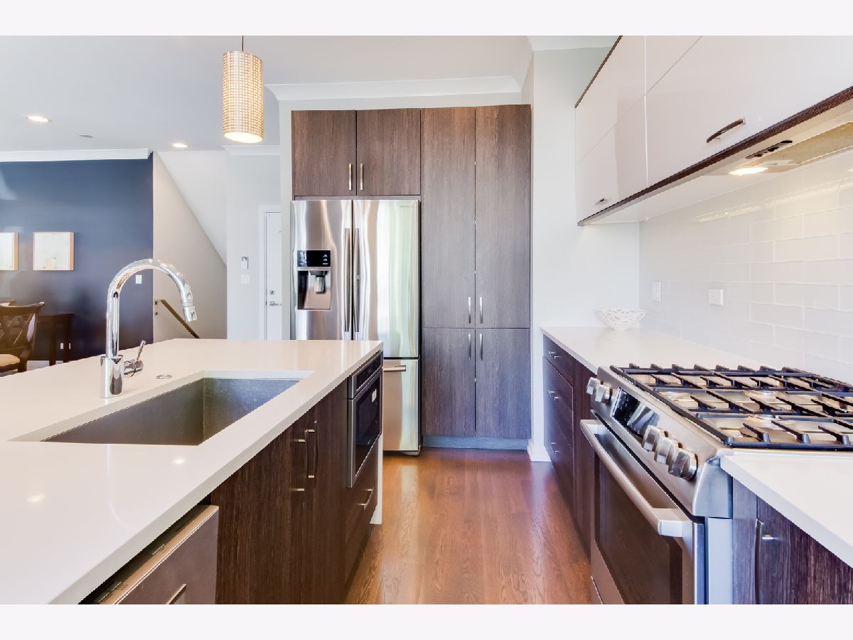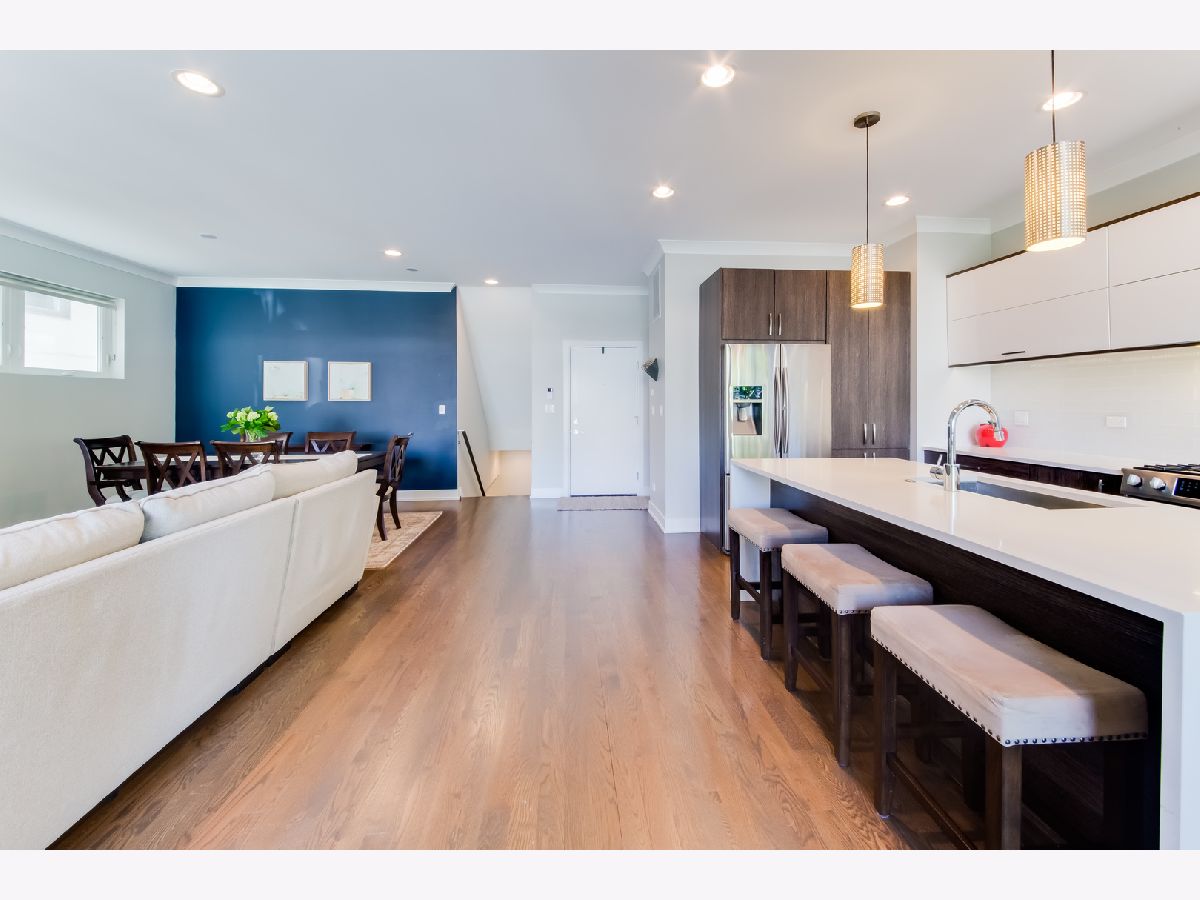 Quiet tree-lined street just off historic Humboldt Boulevard, mere steps from the entrance of the immensely popular 606 trail. This one-of-a-kind, extra-wide (38 foot wide lot) 4 bed/2.5 bath duplex down gleams with comfort and offers modern simplicity at its finest. Immaculate condition, original owner, built in 2016. Main level has eastern exposure, floor-to-ceiling windows, rich stained hardwood floors, custom crown molding, half bath, coat closet, and sliding door leading to balcony off kitchen. Ultra modern kitchen, custom cabinetry and backsplash, Samsung and Bosch stainless steel appliances, and quartz counters with waterfall island. Lower level has vaulted ceilings and floods with natural light. Oversized master bedroom features two giant walk-in closets and en suite bathroom with double sinks and massive seamless shower. Walk-in laundry room with cabinets and shelving for storage. Deeded garage parking with additional storage and full roof deck over garage. Close to public transit: California Blue Line stop and 72 bus. Short walk to Humboldt Park, Logan Square, and the hottest restaurants in the city, including the original Parson's Chicken & Fish, Giant, Osteria Langhe, Longman & Eagle, and Bang Bang Pie & Biscuits.
