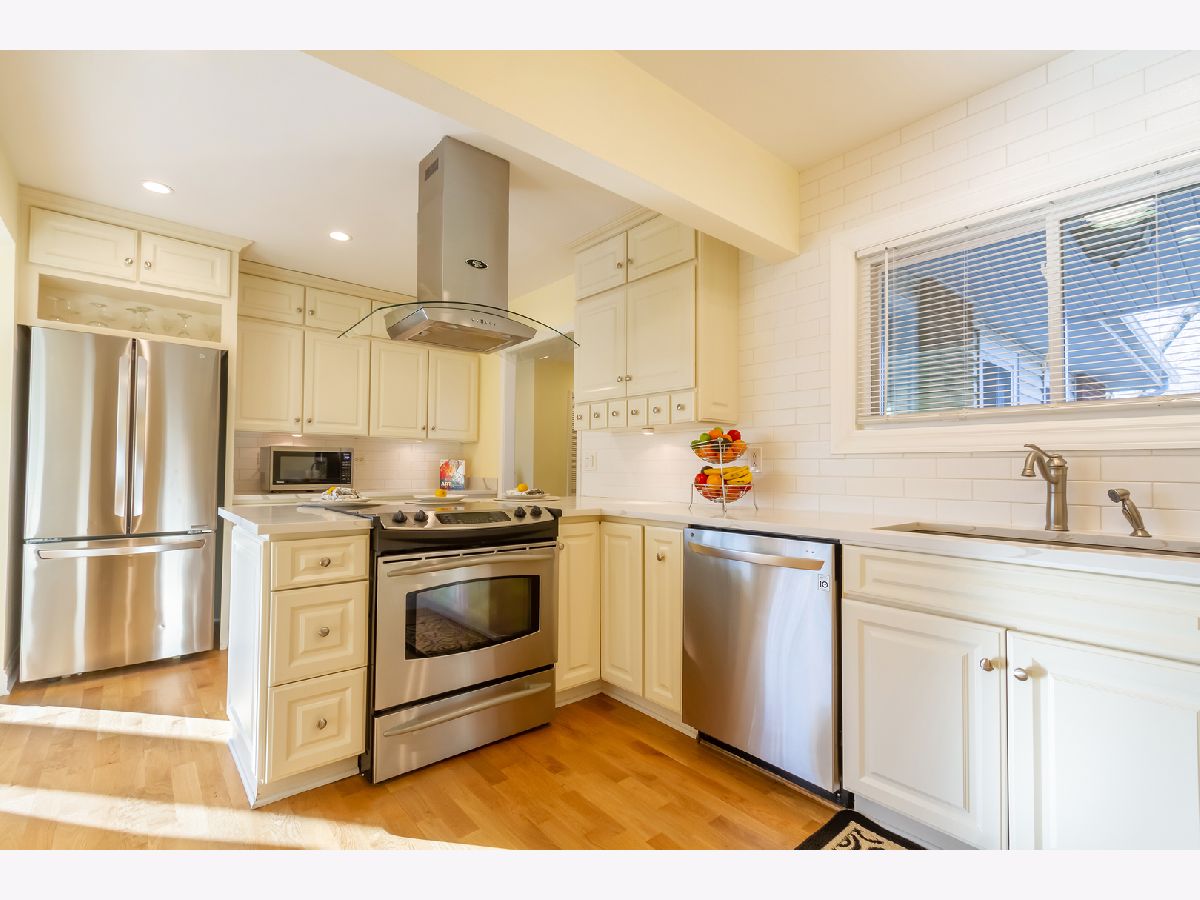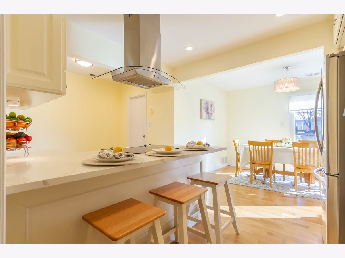 Beautifully updated 3 bedroom ranch in Hoffman Estates. This home features gleaming engineered hardwood flooring and an open concept floor plan. The spacious living room includes recessed lighting, floor to ceiling windows that allow for an abundance of natural lighting, and opens to a dining area~ perfect for entertaining. The kitchen boasts newer stainless steel appliances and range hood (microwave new in 2022), breakfast bar, new tile backsplash, quartz counters, new faucet and sink, and an abundance of cabinetry for storage. Down the hall, there is a master bedroom with en-suite half bath, two additional bedrooms and an updated full bath. There is also a main level laundry room with cabinets for storage and a new laundry sink with backsplash. Outside you can relax on the brick paver patio with electric controlled awning overlooking the fenced yard with picturesque landscaping. Shed for extra storage (new roof and fresh paint). New 3 pane windows and casings, patio door, light fixtures, vinyl siding (2019), HVAC (2018), water heater (2018), humidifier (2018), and fence (2017). Great location near schools, parks, shopping, restaurants, and I-90. Absolutely nothing to do but move in!