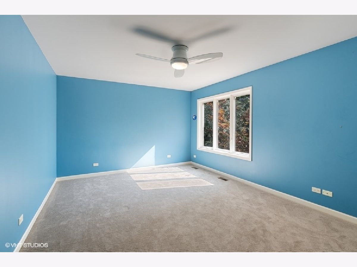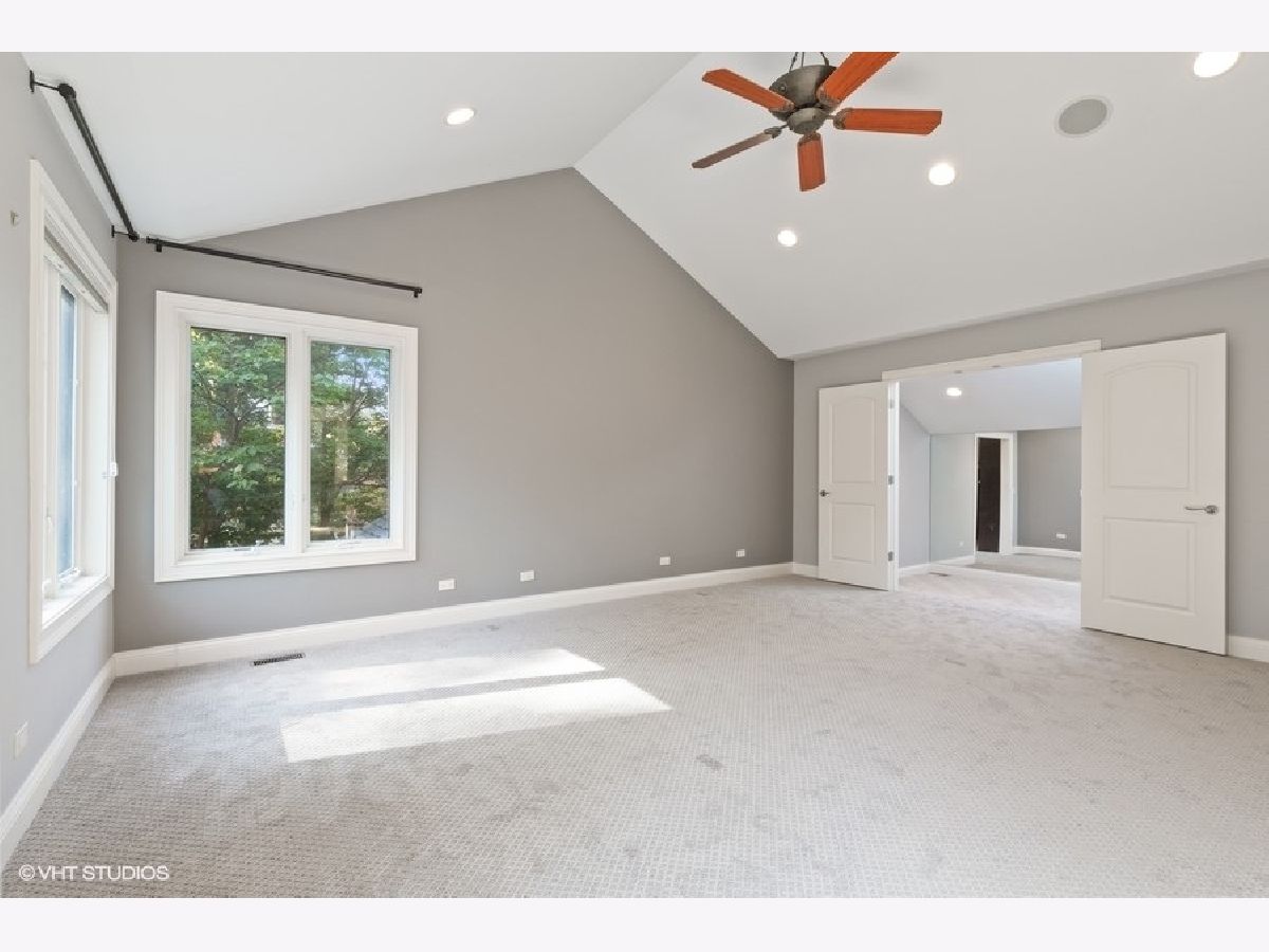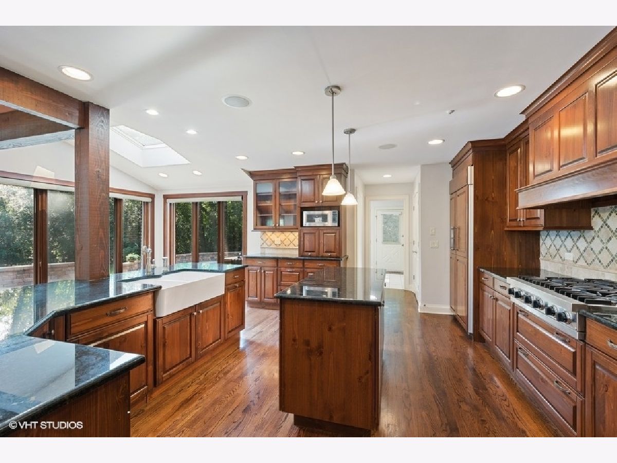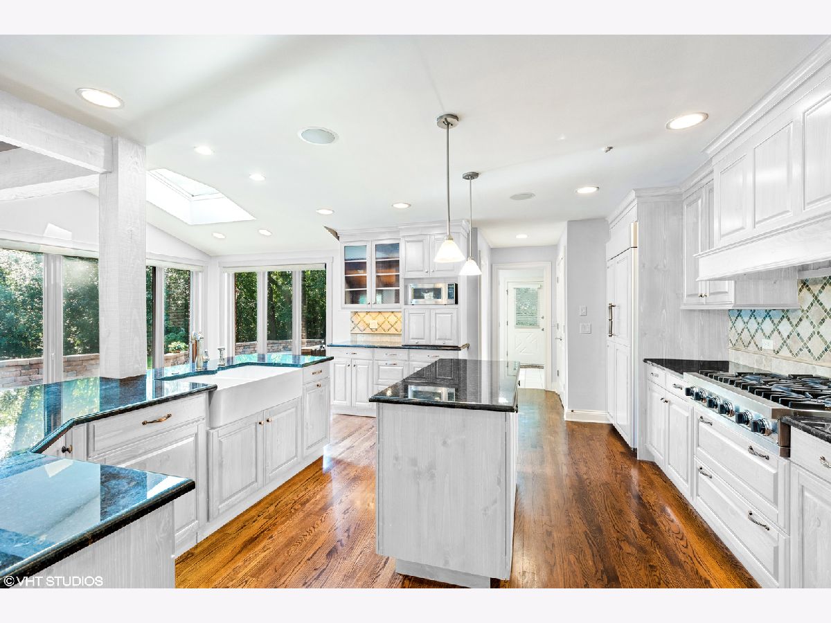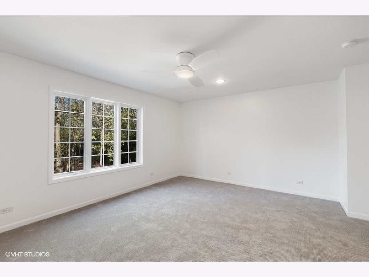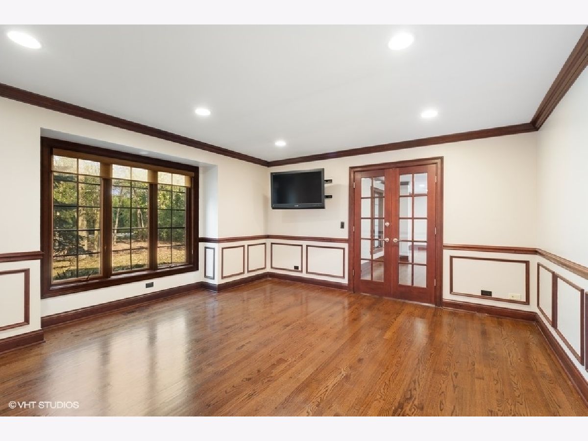 Enjoy the serenity of this custom-built home on over an acre of gorgeous wooded property. Soaring vaulted ceilings and rustic wood beams create the feel of an Aspen-like Chalet in the heart of Riverwoods. Fabulous open floor plan has flexible rooms that can be used differently depending on a buyers's needs. First floor private office with french doors. Gourmet kitchen with custom cabinets, top of the line stainless steel appliances, farmhouse sink, granite countertops and large eating area opens to the family room with floor to ceiling stone fireplace, amazing vaulted beamed ceiling and overlooks the magnificent yard. Hardwood floors throughout the first floor. 2 powder rooms on the first floor. Enter into the laundry/mud room from the 3 car garage. Primary bedroom suite with sitting area, huge walk in closet with custom built closet organizers, luxurious master bath has double vanities, radiant heated floor and generous sized shower with rain shower and bench seating. 3 additional bedrooms and 2 full bathrooms on the second floor. Full finished basement with media room, exercise room, wine cellar with temperature gauge, 2 additional bedrooms and a full bathroom. Move right in as this home was just freshly painted and has new carpeting throughout. This is an amazing value for space and land. Enjoy the peaceful setting and privacy during these days of quarantine. Wonderful pavers patio with built-in fire pit completes this special home!