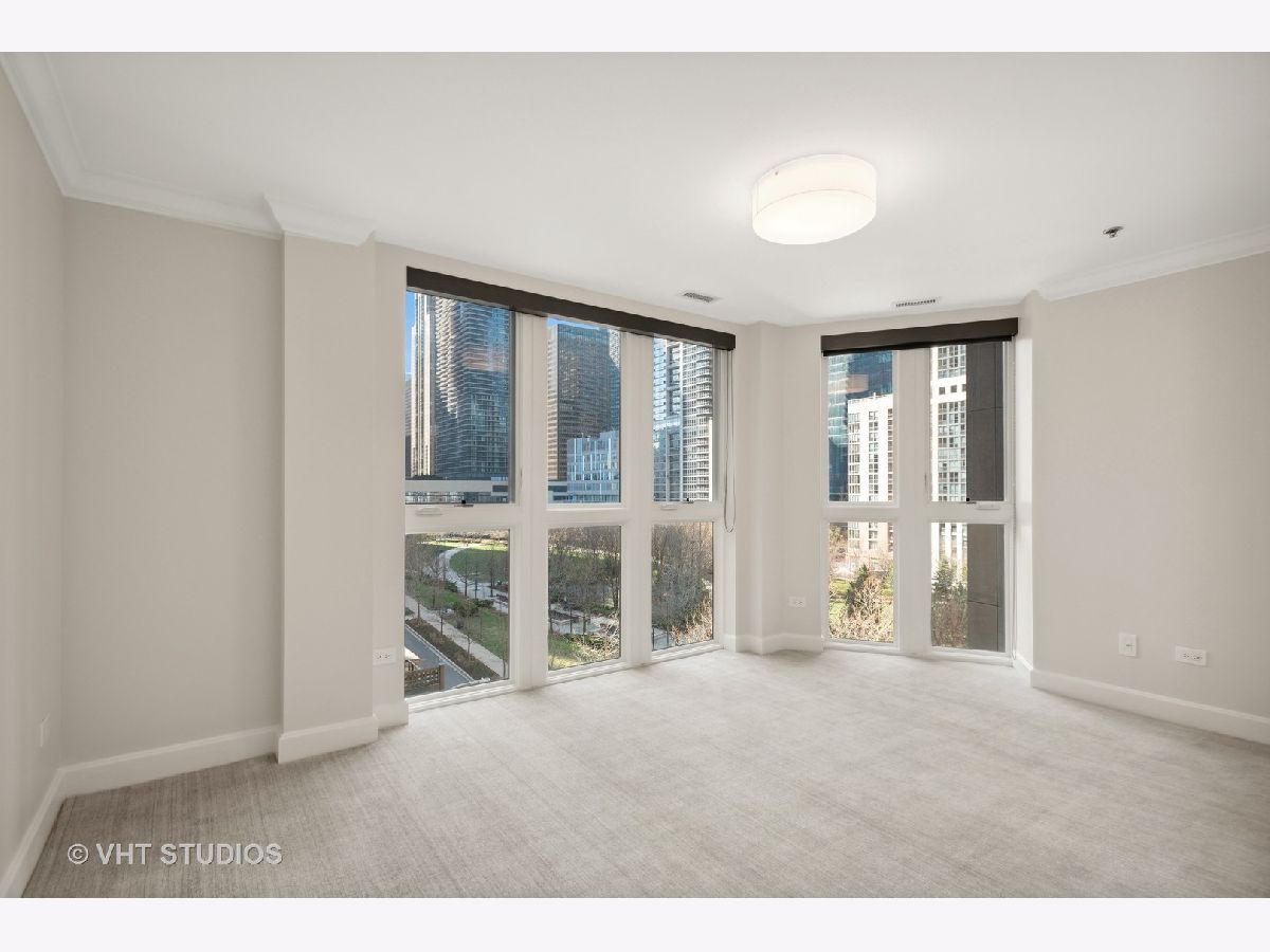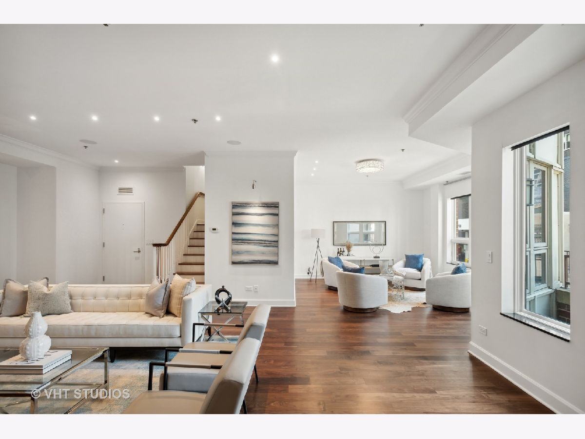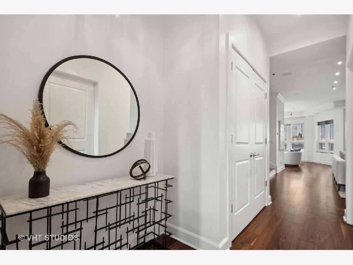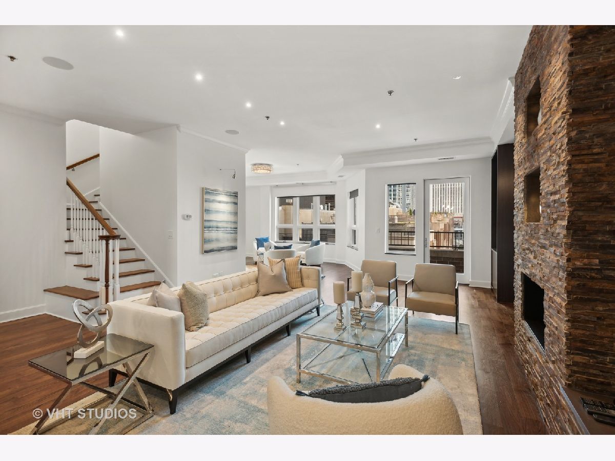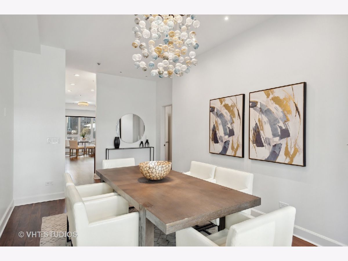 Prestigious and Meticulously Maintained 5 Bedroom - 3.5 bath newly painted duplex. With approximately 3600 sq foot the spectacular layout checks all the boxes. This home is perfect for living and is an entertainers dream. Stunning finishes, high end design, green and city views, modern gas fireplace, recently refinished walnut floors, new carpet upstairs, new lighting throughout, electronic blinds, heated primary bath floors, and more. The main level boasts the primary bedroom, spa-like primary bath, and walk in closet. Large high end kitchen, elegant formal dining room, 5th bed/Office option, cozy living room around the fireplace with a connected large sitting room that could serve multiple purposes. A balcony, large hidden storage room, and many closets round out the main level. Upstairs you will find three large bedrooms with great closet space, 2 full ensuite bathrooms, a third entrance, large windows with great views and natural light. Homeowners enjoy access to Aqua's Shore Club, including resort like pools & sundeck, top-of-the-line exercise facility, movie theatre, billiards room, conference and office center and more. Family and dog friendly neighborhood with parks, lakefront, easy highway access, Marianos grocery store, Chicago Cultural Mile, restaurants, and GEMS World Academy are all steps away! Garage Heated Parking spot with Tesla Charger P30 included in the price.