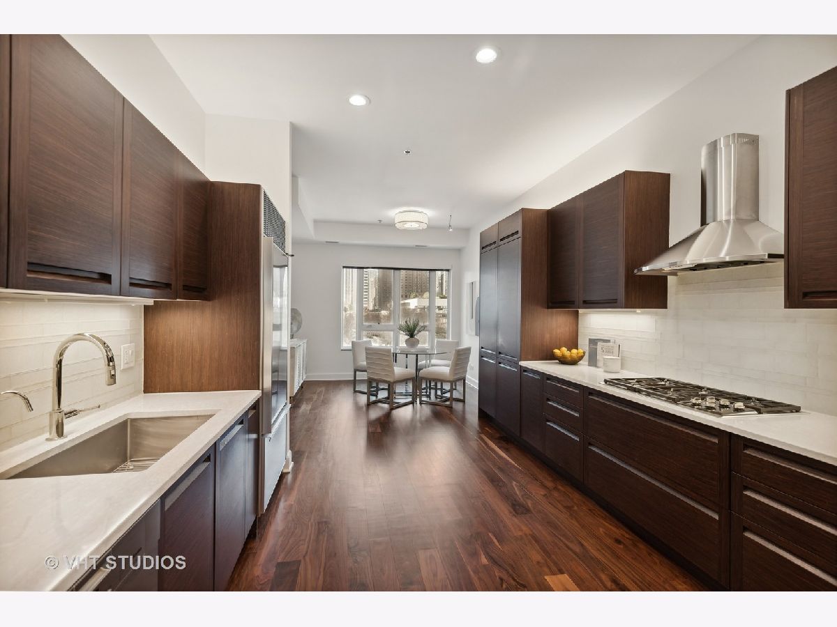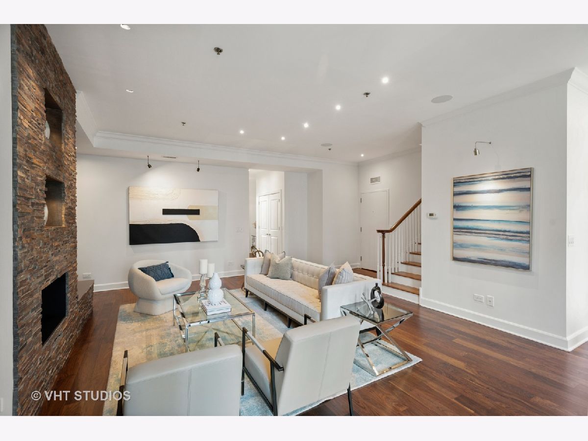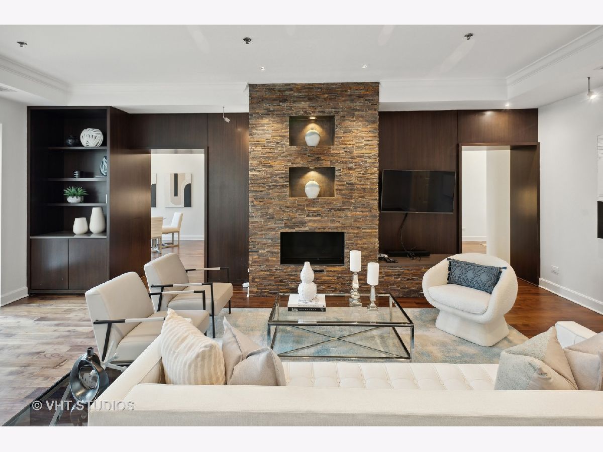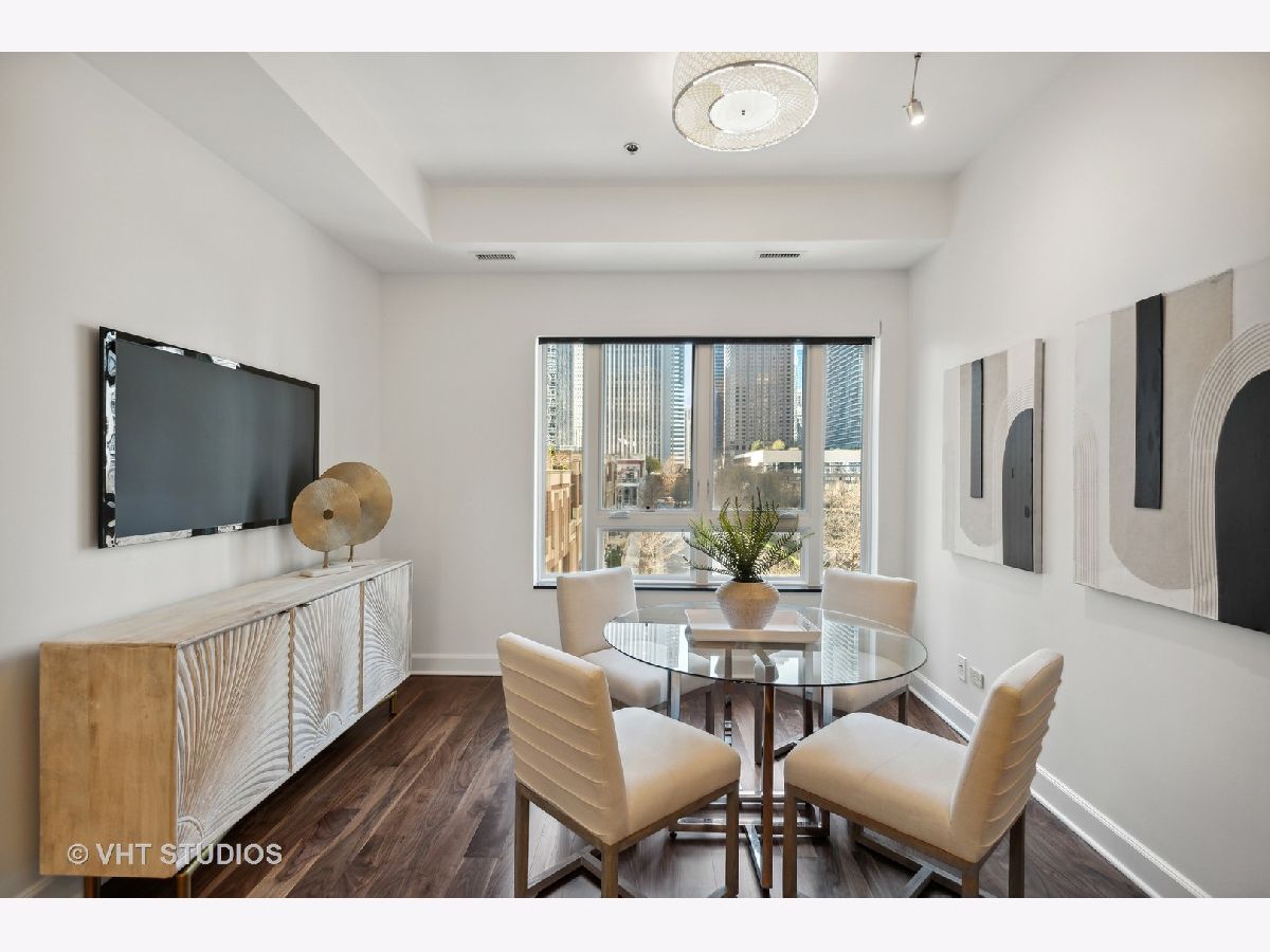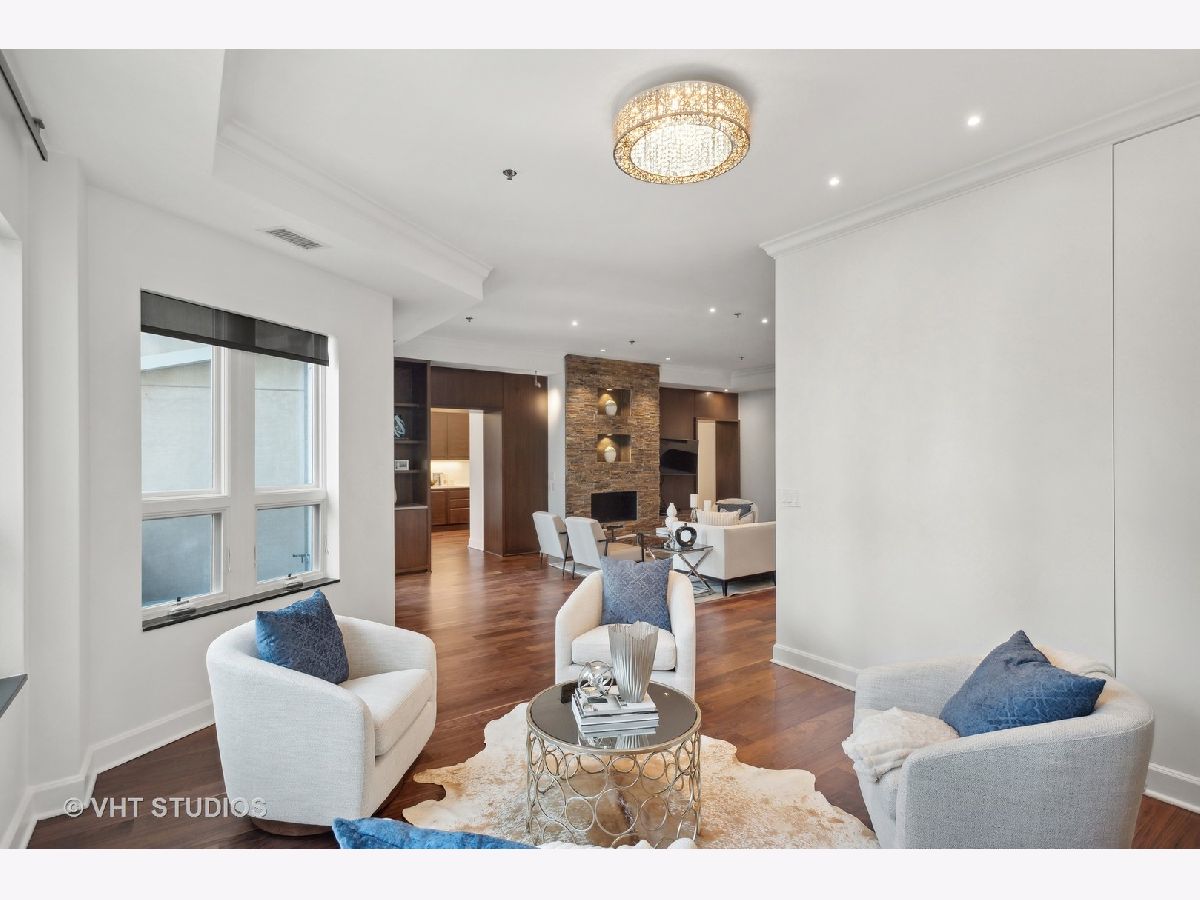 Prestigious and Meticulously Maintained 5 Bedroom - 3.5 bath newly painted duplex. With approximately 3600 sq foot the spectacular layout checks all the boxes. This home is perfect for living and is an entertainers dream. Stunning finishes, high end design, green and city views, modern gas fireplace, recently refinished walnut floors, new carpet upstairs, new lighting throughout, electronic blinds, heated primary bath floors, and more. The main level boasts the primary bedroom, spa-like primary bath, and walk in closet. Large high end kitchen, elegant formal dining room, 5th bed/Office option, cozy living room around the fireplace with a connected large sitting room that could serve multiple purposes. A balcony, large hidden storage room, and many closets round out the main level. Upstairs you will find three large bedrooms with great closet space, 2 full ensuite bathrooms, a third entrance, large windows with great views and natural light. Homeowners enjoy access to Aqua's Shore Club, including resort like pools & sundeck, top-of-the-line exercise facility, movie theatre, billiards room, conference and office center and more. Family and dog friendly neighborhood with parks, lakefront, easy highway access, Marianos grocery store, Chicago Cultural Mile, restaurants, and GEMS World Academy are all steps away! Garage Heated Parking spot with Tesla Charger P30 included in the price.