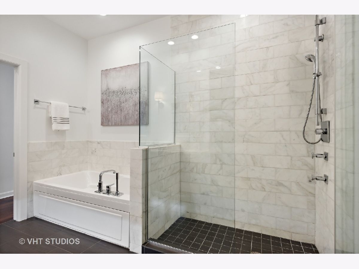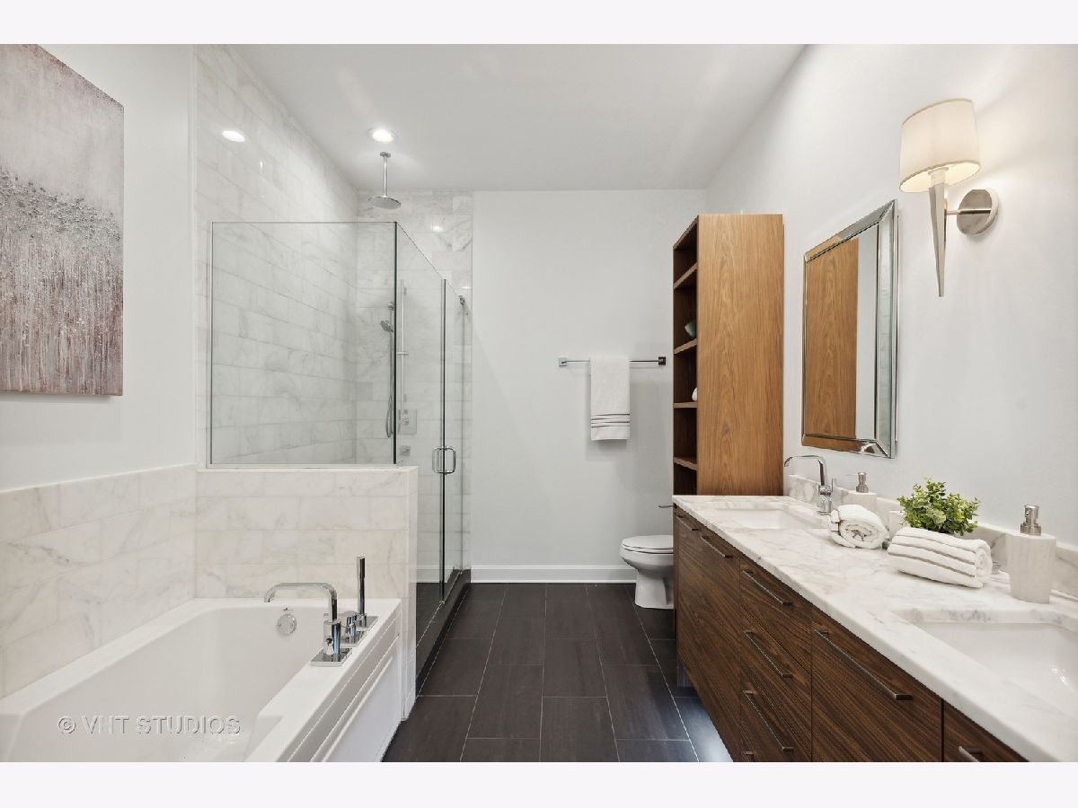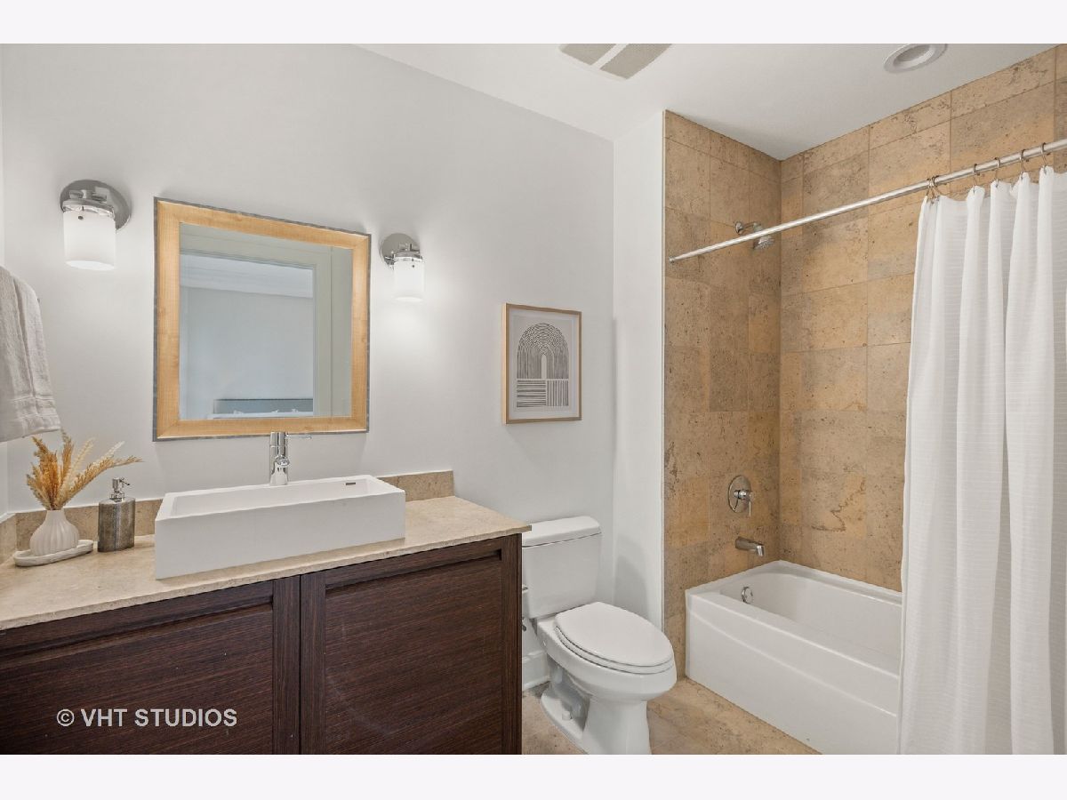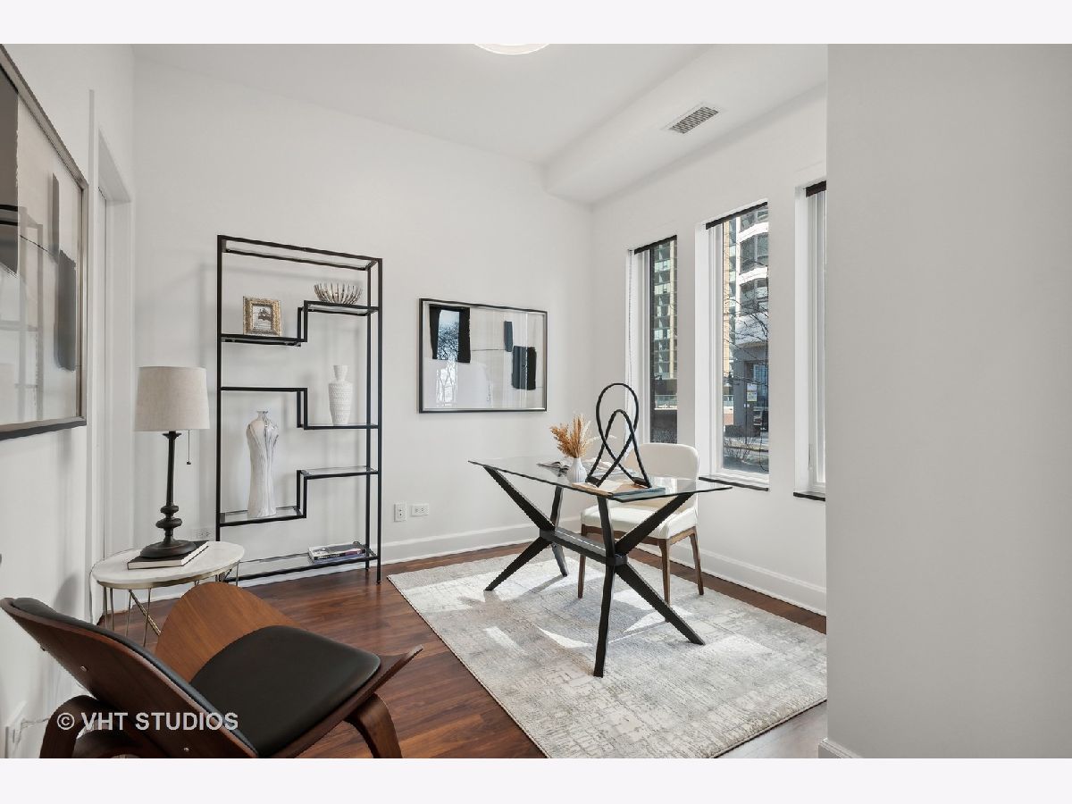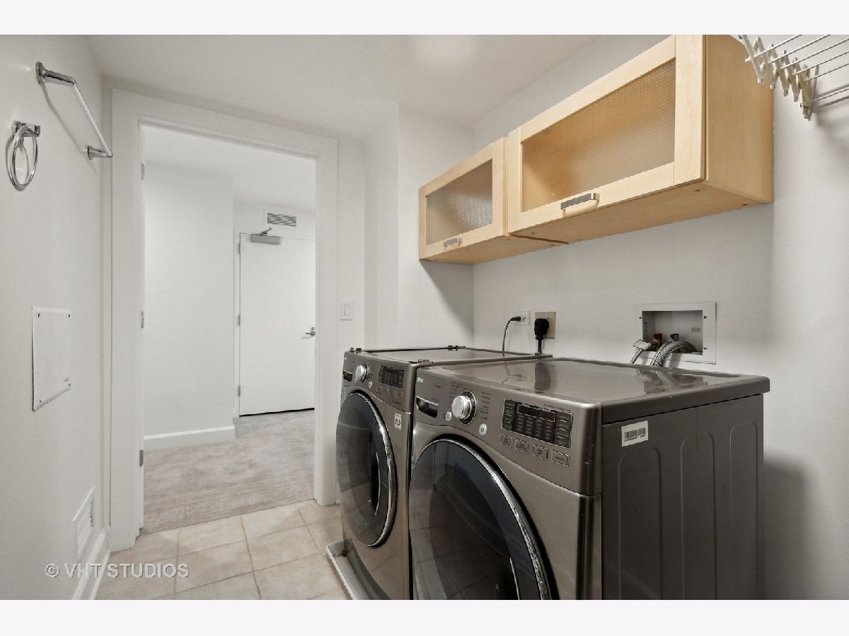 Prestigious and Meticulously Maintained 5 Bedroom - 3.5 bath newly painted duplex. With approximately 3600 sq foot the spectacular layout checks all the boxes. This home is perfect for living and is an entertainers dream. Stunning finishes, high end design, green and city views, modern gas fireplace, recently refinished walnut floors, new carpet upstairs, new lighting throughout, electronic blinds, heated primary bath floors, and more. The main level boasts the primary bedroom, spa-like primary bath, and walk in closet. Large high end kitchen, elegant formal dining room, 5th bed/Office option, cozy living room around the fireplace with a connected large sitting room that could serve multiple purposes. A balcony, large hidden storage room, and many closets round out the main level. Upstairs you will find three large bedrooms with great closet space, 2 full ensuite bathrooms, a third entrance, large windows with great views and natural light. Homeowners enjoy access to Aqua's Shore Club, including resort like pools & sundeck, top-of-the-line exercise facility, movie theatre, billiards room, conference and office center and more. Family and dog friendly neighborhood with parks, lakefront, easy highway access, Marianos grocery store, Chicago Cultural Mile, restaurants, and GEMS World Academy are all steps away! Garage Heated Parking spot with Tesla Charger P30 included in the price.