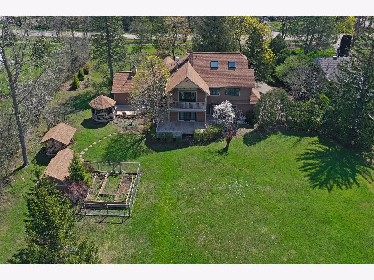 Discover serene, storybook living in this beautifully renovated and expanded country home, set on a picturesque 1.31-acre lot in sought-after west Lake Forest. Surrounded by lush lawn and mature trees, the property features a charming gazebo, expansive entertaining deck, garden, and storage shed-creating the perfect setting for relaxation and outdoor gatherings. Located on scenic Telegraph Road, the home offers the best of both worlds: a peaceful, private setting with quick access to expressways, top-rated schools, and the Metra commuter rail. Inspired by a romantic honeymoon cabin in Door County, Wisconsin, this home was fully renovated and expanded in 2001 to over 4,200 square feet of thoughtfully designed living space. Step inside to a sun-filled open floor plan accented by warm natural materials and rustic elegance. The dramatic 25' x 15' living room sets the tone with knotty pine paneling, a stunning stone wood-burning fireplace, a large bay window, and a staircase leading to the second-floor loft. The custom-designed kitchen features knotty pine cabinetry, granite countertops, premium appliances, a center island with seating, and a walk-in pantry-seamlessly connecting to the dining area and a spacious 18' x 19' family room with tray ceiling and French door opening to the rear deck. The main level also includes two comfortable bedrooms, a full hall bath, a powder room, a bright garden room, and a large laundry room-offering both functionality and charm. Upstairs, the primary suite is a peaceful retreat, featuring a private sitting/dressing room and a luxurious honed-marble bathroom with jetted tub, separate shower, and dual vanities. Across the hall, the versatile 18' x 19' recreation room offers a vaulted ceiling, wet bar, walk-in closet, and a private balcony overlooking the backyard-ideal as a second family room or easily converted into a fourth bedroom. A spacious loft down the hall provides the perfect space for a library, reading nook, or playroom. The finished third floor adds even more flexibility, with abundant natural light and space for an additional office, workout room, or creative studio. Additional highlights include a new architectural asphalt roof (November 2024) and a three-car side-loading garage.
