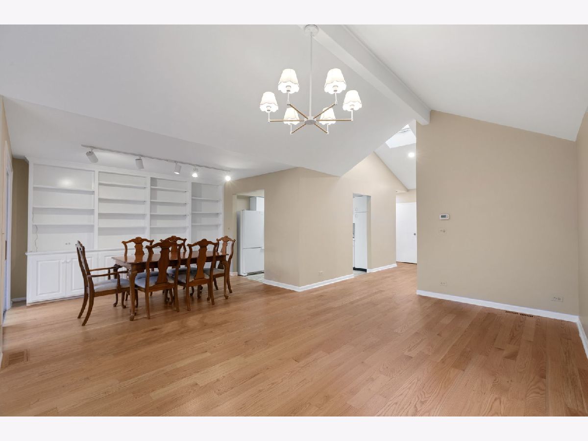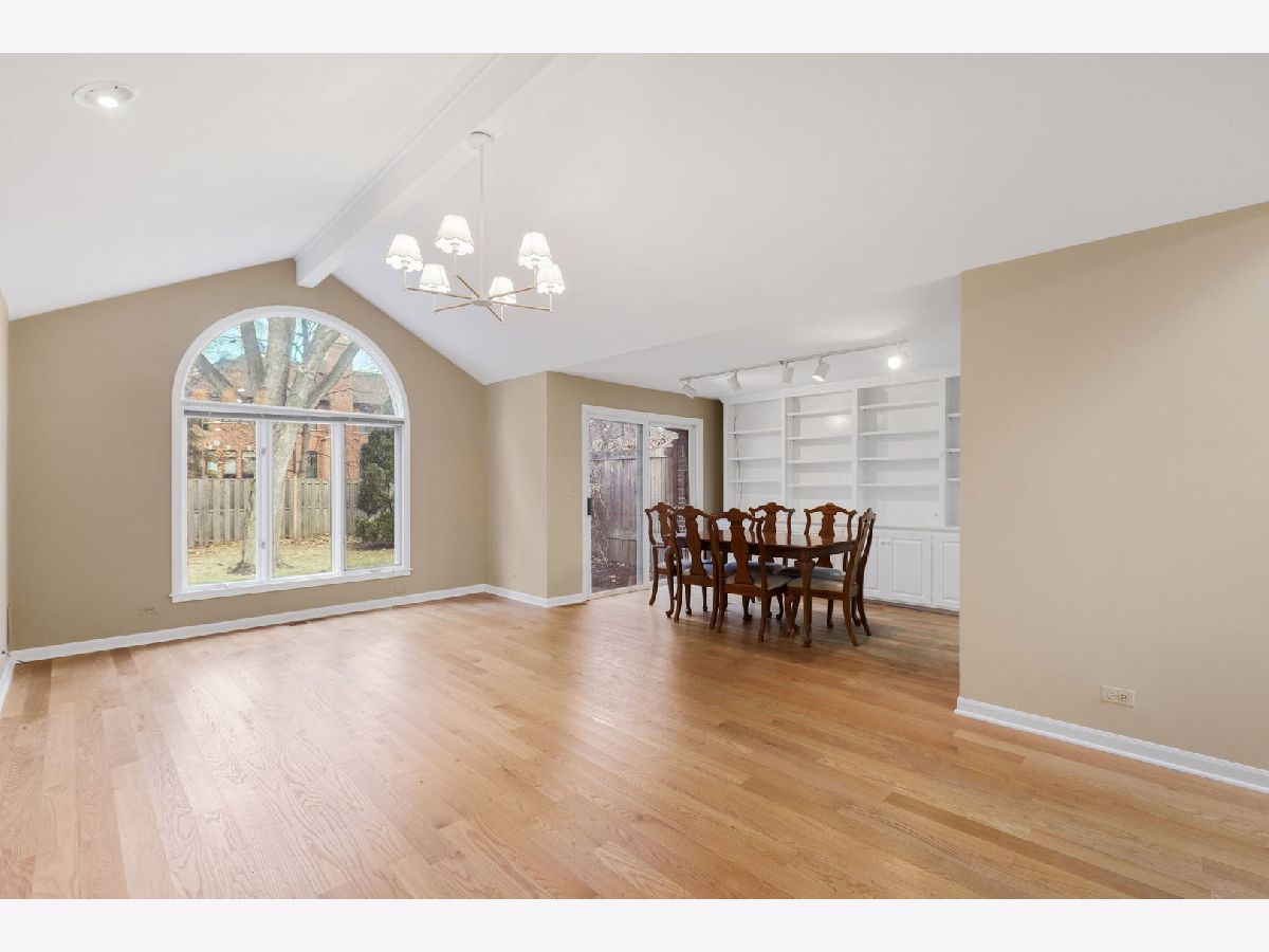MULTIPLE OFFERS; HIGHEST AND BEST DUE BY 4PM ON SUNDAY, JANUARY 11TH. A rare find in Glenview! This charming brick ranch townhome offers the perfect condo alternative, living like a single-family home in a highly desirable central location-just a short walk to shops and restaurants. Enjoy easy one-floor living with a welcoming covered front porch that leads into a light-filled interior. The foyer and living room feature wide-plank hardwood flooring, vaulted ceilings, and an updated light fixture that enhances the open, airy feel. The open-concept dining room includes a wall of custom built-ins and a sliding glass door that opens to a patio and semi-private yard, ideal for relaxing or entertaining. The all-white kitchen comes fully equipped with appliances and offers space for a small table. The primary bedroom features two closets and an en-suite bathroom with a tub/shower combination. A second bedroom offers direct access to a full bathroom, which is also accessible from the hallway-perfect for guests. Additional highlights include in-unit laundry, an attached one-car garage, and an additional exterior parking space. Major mechanical updates include a furnace and air conditioner (2017). This is an estate sale and is being sold AS IS. Don't miss this wonderful opportunity to own a unique ranch townhome in the heart of Glenview!