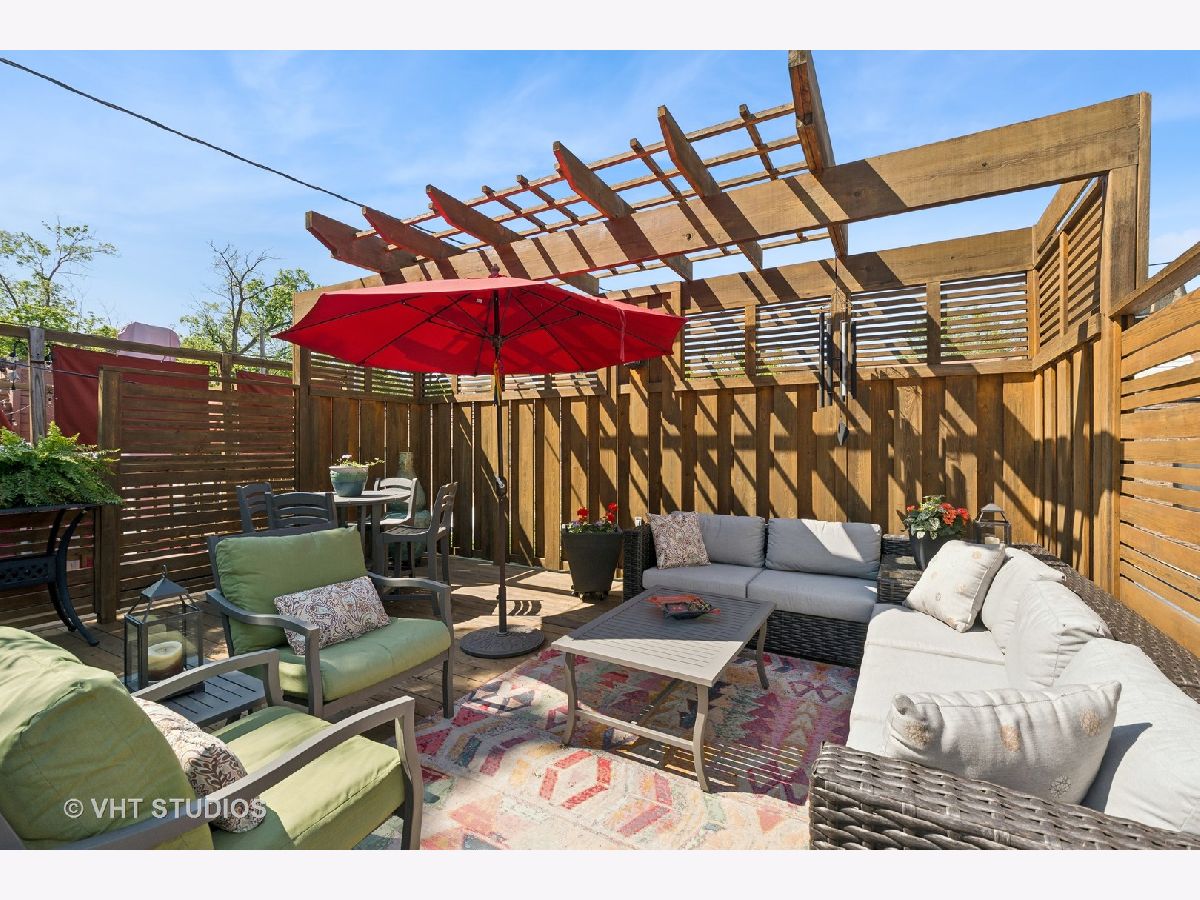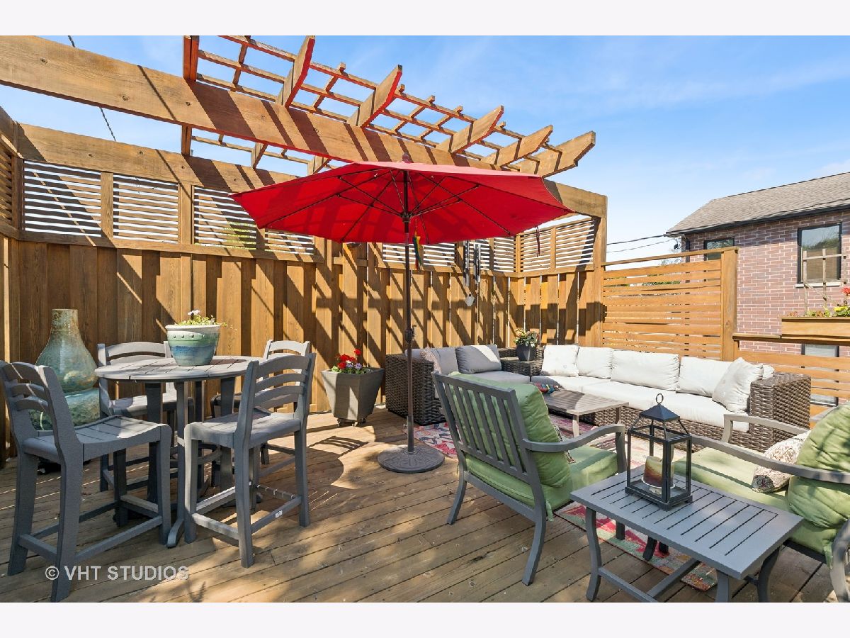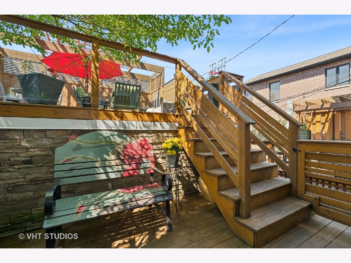 Rarely available - this 3 bedroom home in Andersonville (located in Peirce Grade School District) has been completely redone and updated! Nothing to do but move right in and relax on your gorgeous roof top deck! Built in 1997 the main level of the home features an open concept living/dining configuration with a wood burning fireplace in the living room & hardwood throughout that leads into a completely reconfigured opened beautiful white cook's kitchen with Miele SS dishwasher, 2 Wolf ovens - one being steam, 4 burner Wolf cooktop on the island and Subzero Fridge, a built in wine fridge, an abundance of cabinets for storage and great counter space. The kitchen includes a large island with ample shelving and space for informal dining. The main floor includes an updated half bath. From the kitchen one is drawn to an urban oasis on the roof deck atop a 2-car garage. The deck is large with ample multiple seating areas and dining space and has a pergola. The 2nd level features two generous bedrooms with a large, shared master bath with a separate two-person shower, soaking tub & double bowl vanity. The lower level includes a large family room perfect for casual gatherings and movie night, a gas start fireplace, a completely remodeled full bath (2023) and an additional third bedroom. Storage is abundant. The updates to this home include new Hardie Board siding, new roof on the house in 2014, new garage roof under the deck in 2023, furnace, hot water heater, & AC replaced in 2023. Also, in 2023 the lower level was repainted, new carpet was installed & the full bath on that level was completely remodeled; new custom window treatments were installed on the main level of the home as well. All the windows in the home were replaced in 2018. The 2-car garage includes additional storage space. The area behind the garage is private for these 6 homes and is plowed in the winter. Walk to everything Andersonville has to offer, while enjoying the quiet of being on a one-way street with other single-family homes. Getting places just got easier as the new Peterson Metra station is scheduled to open this month!