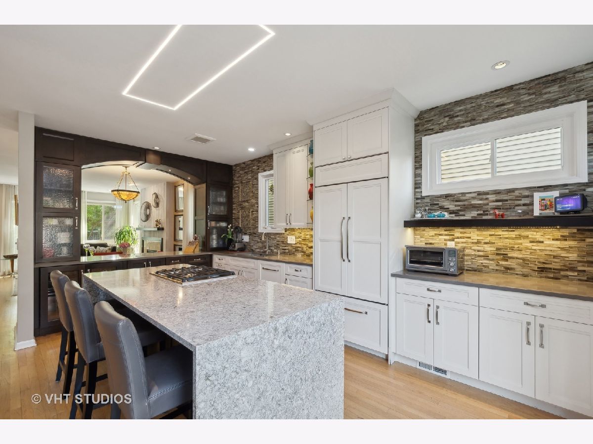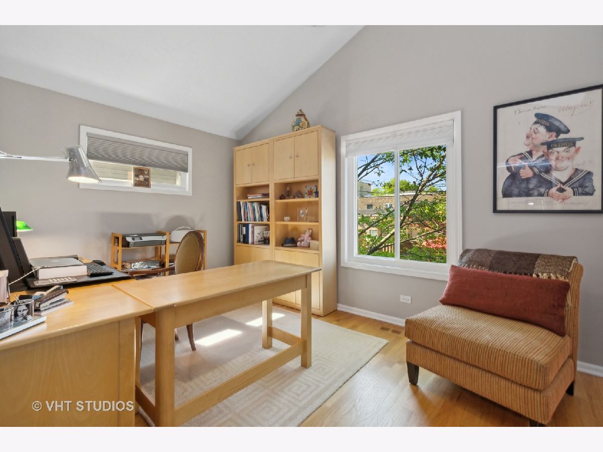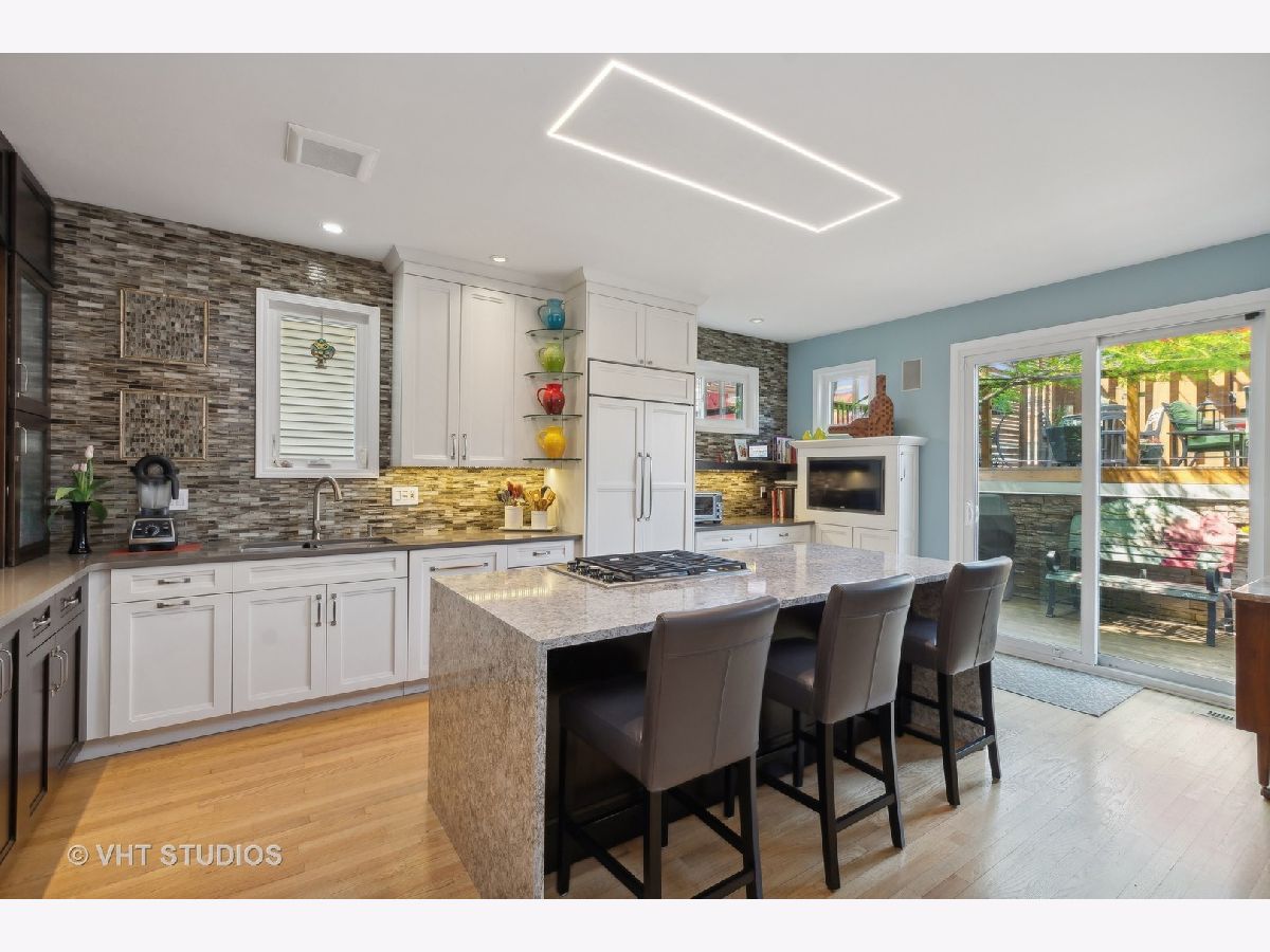 Rarely available - this 3 bedroom home in Andersonville (located in Peirce Grade School District) has been completely redone and updated! Nothing to do but move right in and relax on your gorgeous roof top deck! Built in 1997 the main level of the home features an open concept living/dining configuration with a wood burning fireplace in the living room & hardwood throughout that leads into a completely reconfigured opened beautiful white cook's kitchen with Miele SS dishwasher, 2 Wolf ovens - one being steam, 4 burner Wolf cooktop on the island and Subzero Fridge, a built in wine fridge, an abundance of cabinets for storage and great counter space. The kitchen includes a large island with ample shelving and space for informal dining. The main floor includes an updated half bath. From the kitchen one is drawn to an urban oasis on the roof deck atop a 2-car garage. The deck is large with ample multiple seating areas and dining space and has a pergola. The 2nd level features two generous bedrooms with a large, shared master bath with a separate two-person shower, soaking tub & double bowl vanity. The lower level includes a large family room perfect for casual gatherings and movie night, a gas start fireplace, a completely remodeled full bath (2023) and an additional third bedroom. Storage is abundant. The updates to this home include new Hardie Board siding, new roof on the house in 2014, new garage roof under the deck in 2023, furnace, hot water heater, & AC replaced in 2023. Also, in 2023 the lower level was repainted, new carpet was installed & the full bath on that level was completely remodeled; new custom window treatments were installed on the main level of the home as well. All the windows in the home were replaced in 2018. The 2-car garage includes additional storage space. The area behind the garage is private for these 6 homes and is plowed in the winter. Walk to everything Andersonville has to offer, while enjoying the quiet of being on a one-way street with other single-family homes. Getting places just got easier as the new Peterson Metra station is scheduled to open this month!