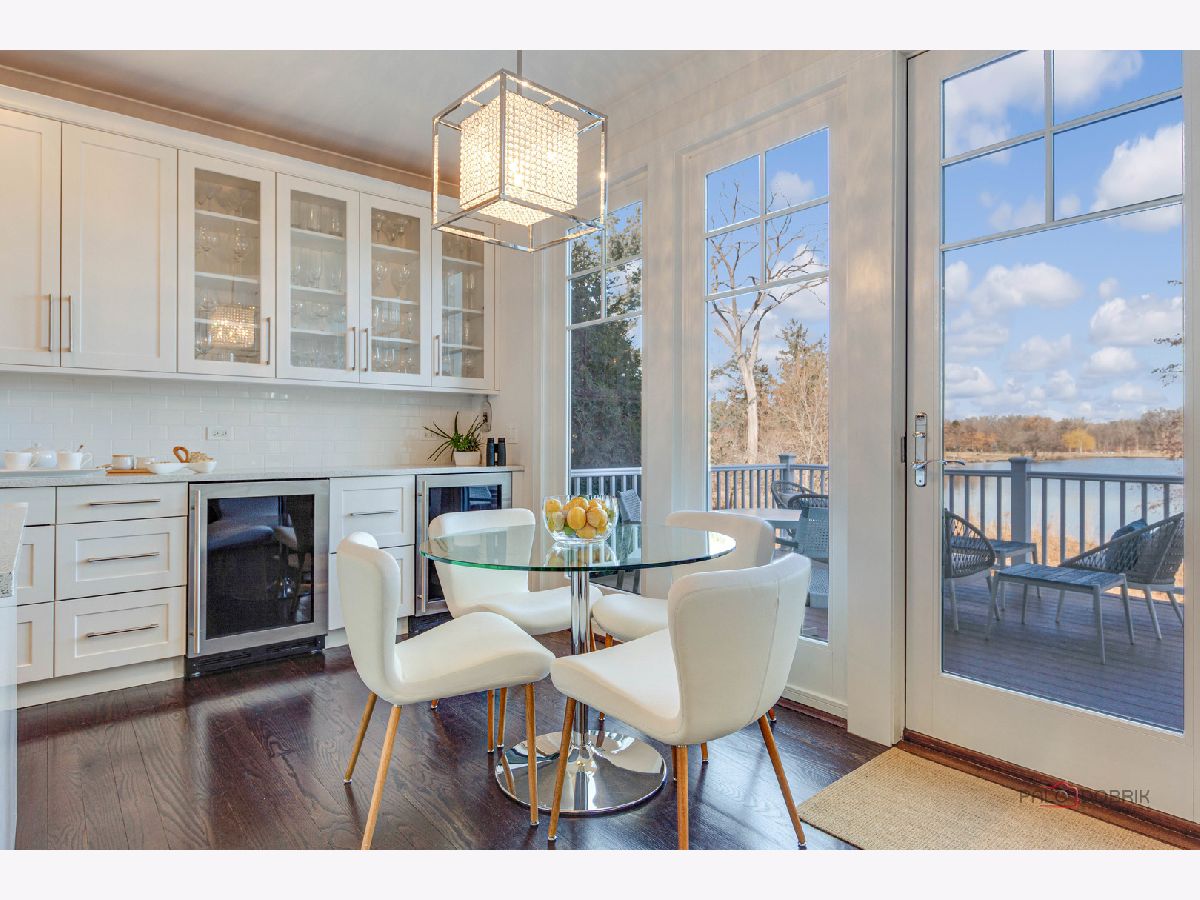 Experience the luxury and convenience in this stunning maintenance-free residence nestled on a premium lot boasting unparallelled sweeping views of West Lake. Upon entry, you are greeted with abundant natural light, beckoning you towards the serene outdoors and tranquil allure of the lake surrounded by conservancy of Lake County Forest Preserves. Embrace the airy ambience of this home's open layout featuring soaring ceilings, open staircase up and down, and crisp white paint throughout that creates an atmosphere of serenity and elegance. Built in Phase 2 with larger floorplan and upgraded finishes that include solid cedar garage doors, composite deck and cedar shake roof. Additional upgrades include...wide plank hardwood floors throughout, custom tile bathrooms and laundry room, crown molding and all closets, pantry and mudroom professionally finished. Tall 9' ceilings on both main and second levels, The main level offers welcoming foyer, formal living room and separate dining room, private home office/study with built-in bookcases, two story family room with wall of windows open to the eat-in kitchen with access to back deck features oversized island, 42" custom cabinetry, granite countertops, Thermadore SS appliances including two beverage coolers, huge walk-in pantry and oversized mudroom with built-in cabinetry. Second level features open loft/gallery leading to luxurious primary suite overlooking the conservancy, spa-like bath with double vanity, oversized soaking tub and separate shower as well as walk-in closet. Bedroom two and three both offer privacy with en-suite baths and walk-in closets. Full laundry room with built-in cabinetry and sink. Light-filled English basement provides additional living space for recreation and fitness with natural light, finished drywall ceiling, full bathroom, finished storage room and large mechanical room with added storage space. Recently installed whole house generator provides backup power for added peace of mind. Property is designed for future elevator installation. Location is ideal with easy access to Dining, Shopping, Costco, I-94, Schools and extensive nature trails. Welcome to your sanctuary of refined living!
