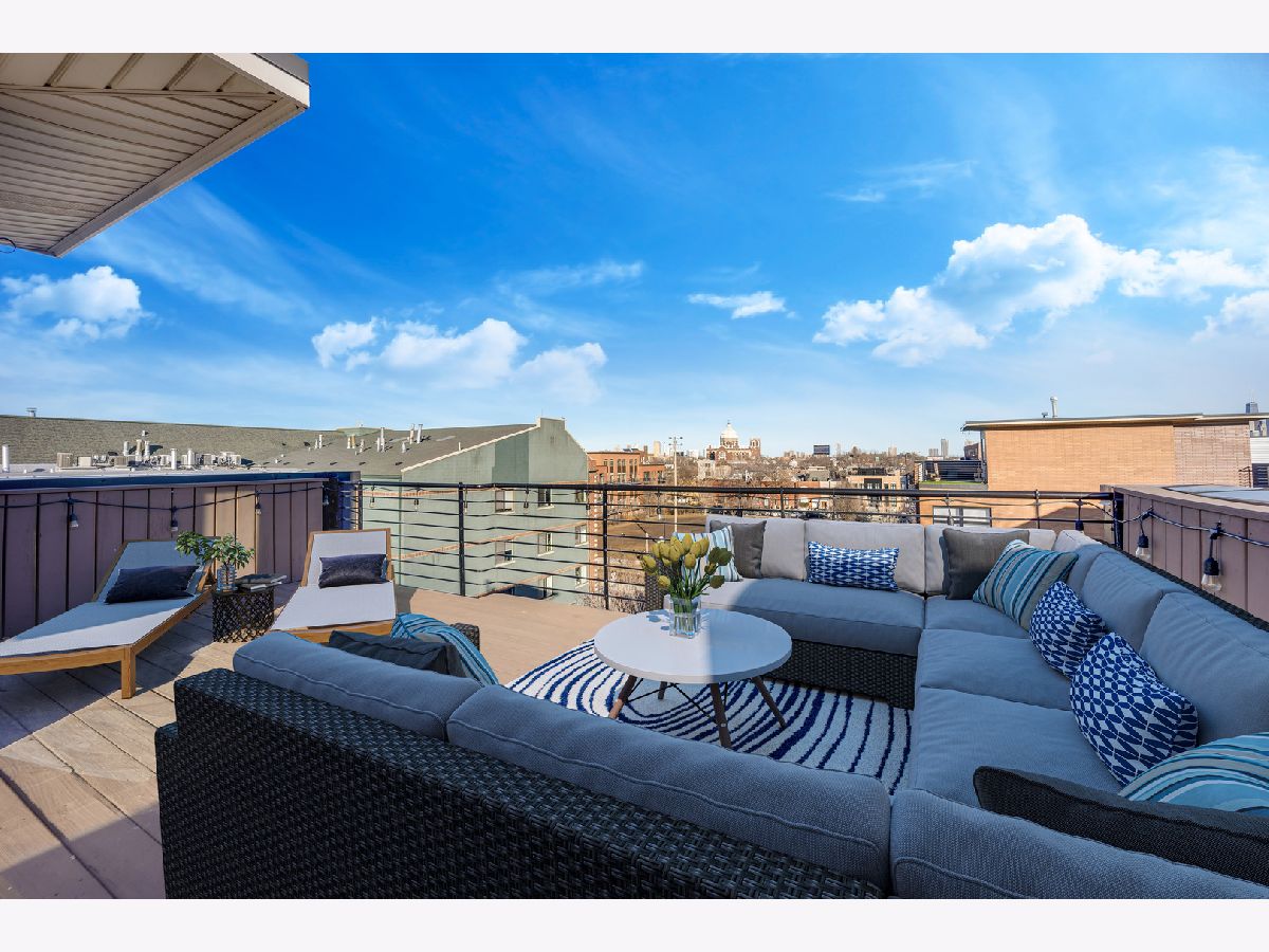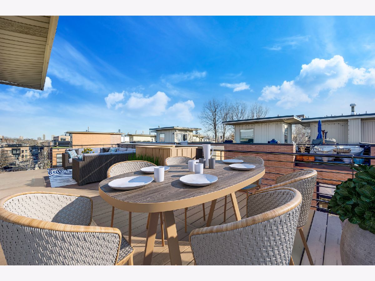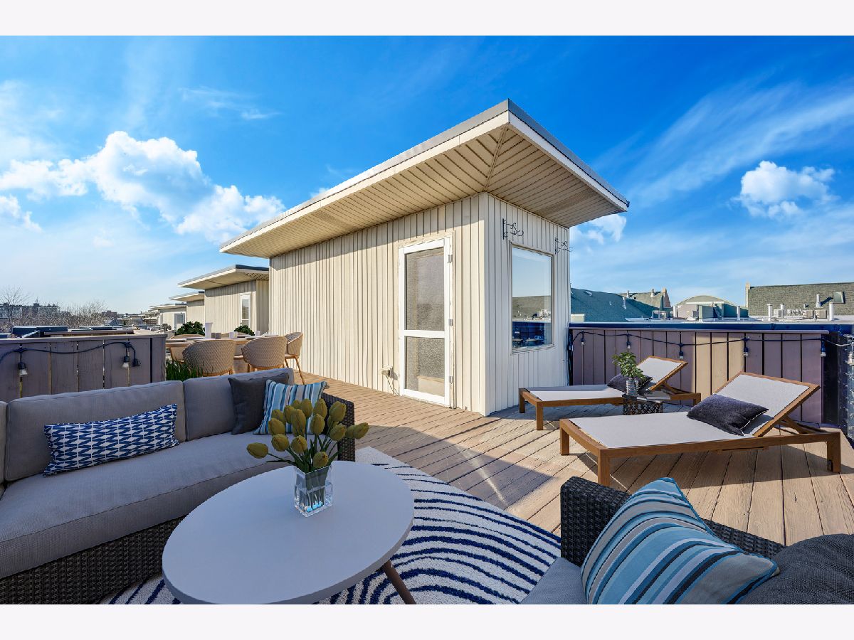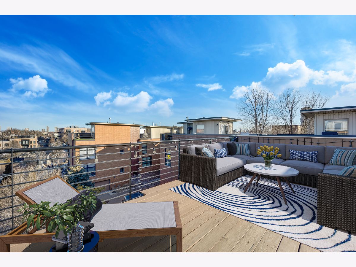 Sunny, spacious, updated, private, quiet...your new home awaits! This end unit in exclusive Willow Court is on a corner and actually has windows on 3 sides with loads of light, 2 car attached garage, and a private roof deck! The spacious foyer will greet you with a convenient coat closet and laundry room with a new washer and dryer! The hardwood stairs will bring you to the 2nd level which is sure to make your jaw drop...large corner windows, spacious living areas, an open floorplan, and a stunning kitchen! The kitchen was recently renovated and has white shaker cabinets, a double deep island with cabinets on both side, quartz counters, stainless steel appliances, a large panty cabinet, and a separate built-in buffet with a beverage fridge! There is also a perfectly located balcony accessed from the kitchen to make for easy grilling! The dining area can easily fit a table for 6-8 people. The living area has a sectional couch, a large north facing window overlooking the 606, and a gas fireplace. There is also a powder room located on this level! The 3rd floor has 2 en-suite bedrooms. The king sized primary suite has corner windows, 2 closets (one of which is a large walk-in closet) and a newly renovated primary bathroom with double sinks and a walk in shower with a stylish penny tile floor, a window, and a built-in bench and niche for easy storage! The 2nd bedroom is currently used as a den/office, but can easily fit a queen bed, has a large closet and a full en-suite bathroom! The 4th floor has a office with a newly installed sliding door for privacy on those Zoom meetings, a large window, and a door that leads to the large private roof deck! The deck is large with several seating areas, overlooks the 606 and the skyline! The 2 car attached garage is private to this unit and has a new Epoxy floor. Seller has taken great care of the home and has updated the following in the last couple years: primary bathroom shower, carpet runner on staircase at all 4 levels, new washer/dryer (2023), new hot water heater (2021), painted floors in garage, new main sewer line, window treatments in living room, open shelves in the kitchen, enclosed the office with a door, and new garbage disposal. Furnace and air conditioning were replaced in 2015. This home is conveniently located near the 606 Trail and Churchill Park and dog park. It is tucked inside Hoyne Ave away from street noise, but so close to the thriving city live that Bucktown has to offer along North, Damen and Milwaukee; close to the Blue Line, and endless dining and nightlife choices!