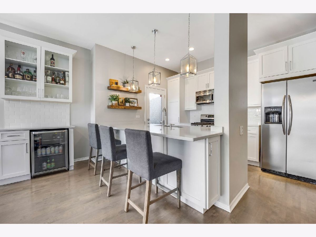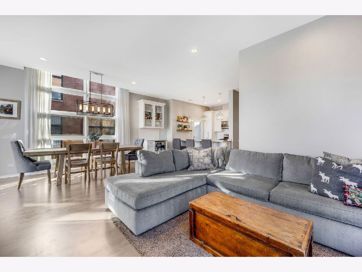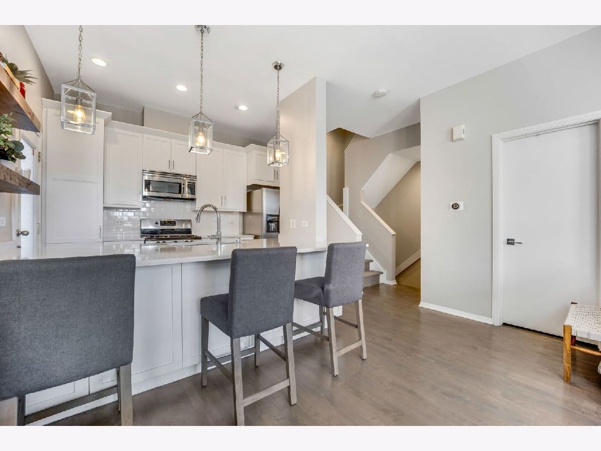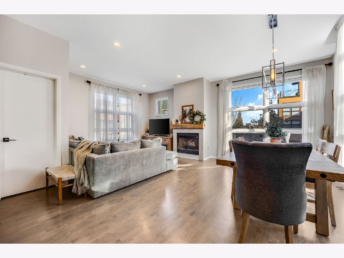 Sunny, spacious, updated, private, quiet...your new home awaits! This end unit in exclusive Willow Court is on a corner and actually has windows on 3 sides with loads of light, 2 car attached garage, and a private roof deck! The spacious foyer will greet you with a convenient coat closet and laundry room with a new washer and dryer! The hardwood stairs will bring you to the 2nd level which is sure to make your jaw drop...large corner windows, spacious living areas, an open floorplan, and a stunning kitchen! The kitchen was recently renovated and has white shaker cabinets, a double deep island with cabinets on both side, quartz counters, stainless steel appliances, a large panty cabinet, and a separate built-in buffet with a beverage fridge! There is also a perfectly located balcony accessed from the kitchen to make for easy grilling! The dining area can easily fit a table for 6-8 people. The living area has a sectional couch, a large north facing window overlooking the 606, and a gas fireplace. There is also a powder room located on this level! The 3rd floor has 2 en-suite bedrooms. The king sized primary suite has corner windows, 2 closets (one of which is a large walk-in closet) and a newly renovated primary bathroom with double sinks and a walk in shower with a stylish penny tile floor, a window, and a built-in bench and niche for easy storage! The 2nd bedroom is currently used as a den/office, but can easily fit a queen bed, has a large closet and a full en-suite bathroom! The 4th floor has a office with a newly installed sliding door for privacy on those Zoom meetings, a large window, and a door that leads to the large private roof deck! The deck is large with several seating areas, overlooks the 606 and the skyline! The 2 car attached garage is private to this unit and has a new Epoxy floor. Seller has taken great care of the home and has updated the following in the last couple years: primary bathroom shower, carpet runner on staircase at all 4 levels, new washer/dryer (2023), new hot water heater (2021), painted floors in garage, new main sewer line, window treatments in living room, open shelves in the kitchen, enclosed the office with a door, and new garbage disposal. Furnace and air conditioning were replaced in 2015. This home is conveniently located near the 606 Trail and Churchill Park and dog park. It is tucked inside Hoyne Ave away from street noise, but so close to the thriving city live that Bucktown has to offer along North, Damen and Milwaukee; close to the Blue Line, and endless dining and nightlife choices!