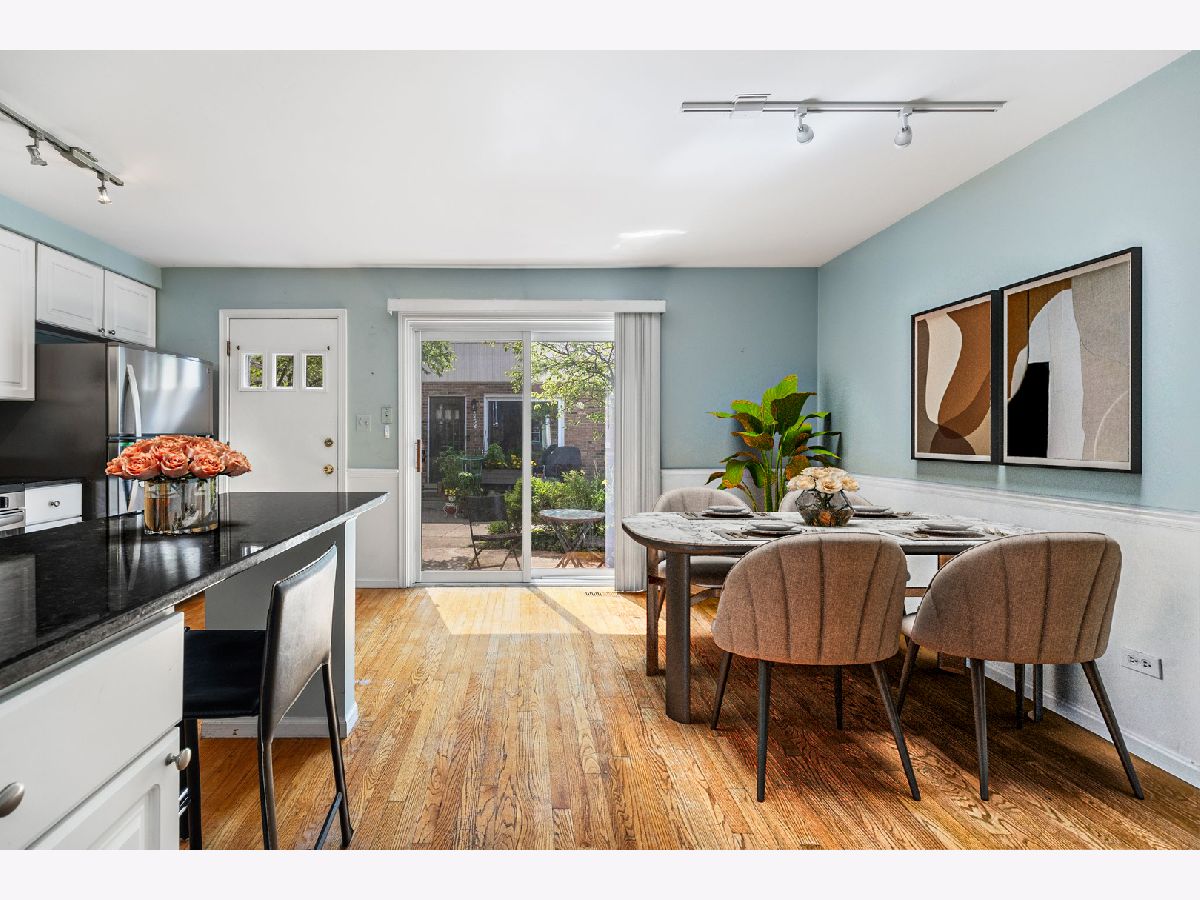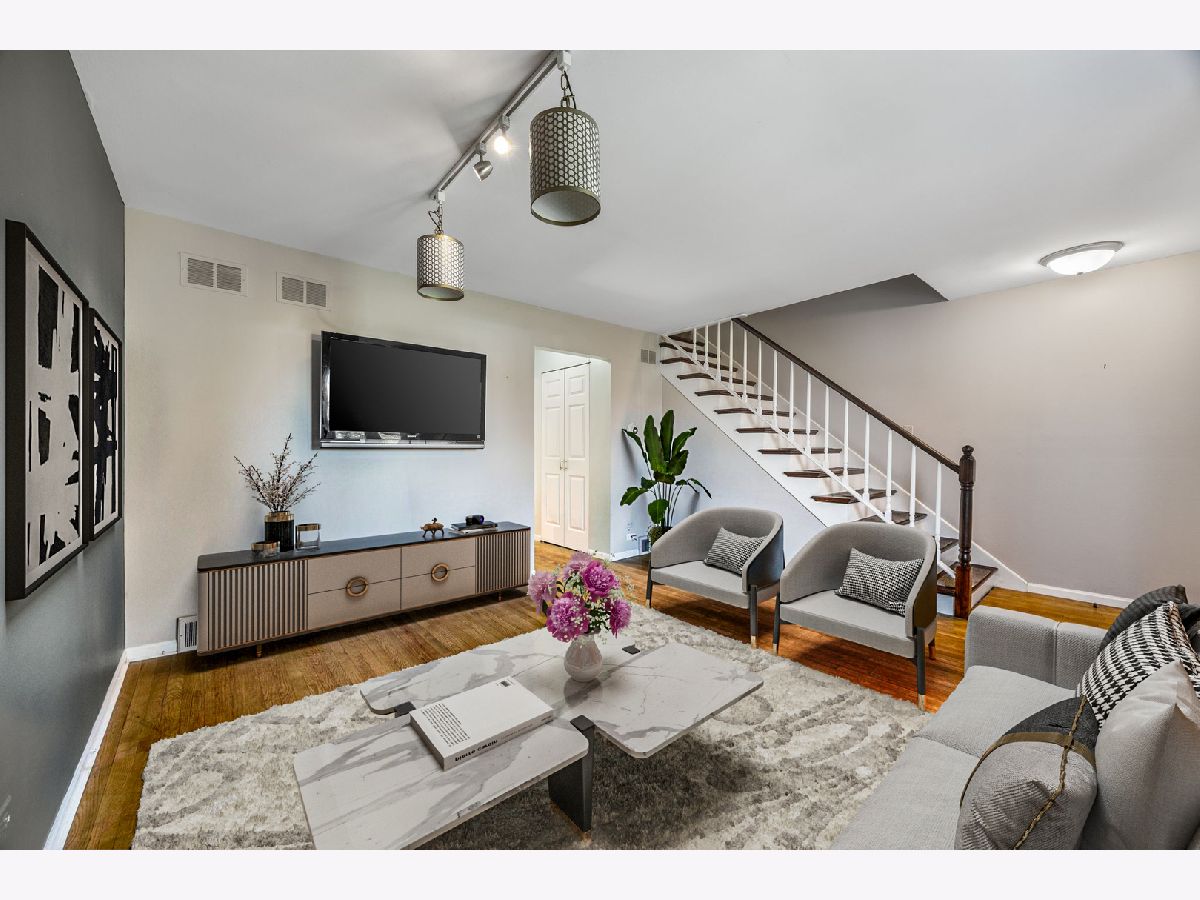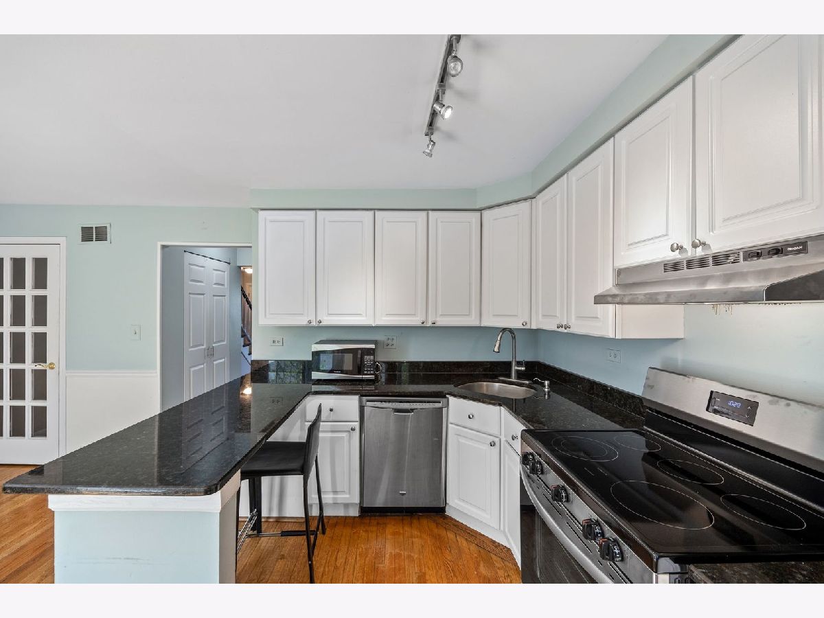 Welcome to this beautifully maintained 2-bedroom, 1.5-bath townhome, perfectly nestled in the heart of Glenview. The inviting living and dining area, featuring rich hardwood floors, offers a versatile space ideal for entertaining or relaxing with loved ones. The eat-in kitchen is a modern chef's dream, boasting an abundance of cabinetry, sleek granite countertops, a convenient breakfast bar, and stainless steel appliances, including a brand-new stove and exhaust hood, plus a newer refrigerator and dishwasher. On the main level, you'll also find a stylish powder room, perfect for guests. The lower-level family room is an excellent space for recreation or casual entertaining, providing a cozy retreat for movie nights or gatherings. Upstairs, the spacious master bedroom and second bedroom both offer ample closet space, ensuring plenty of room for storage. The second-level hall bath features a tub with a ceramic tile surround, adding a touch of elegance. This home also includes practical updates for your peace of mind, such as a hot water tank (2015), newer roof (2019), and a brand-new Lennox HVAC unit (2021) with a Google Nest Smart Thermostat. Additional storage space is available via pull-down stairs to the attic, and the lower level houses a laundry-mechanical room complete with a washer and dryer. Located within the highly regarded District 34 and 225 school zones, this townhome also comes with two assigned parking spaces and a 1-year home warranty for added comfort and security. Don't miss out on this rare opportunity to make this wonderful townhome your own!