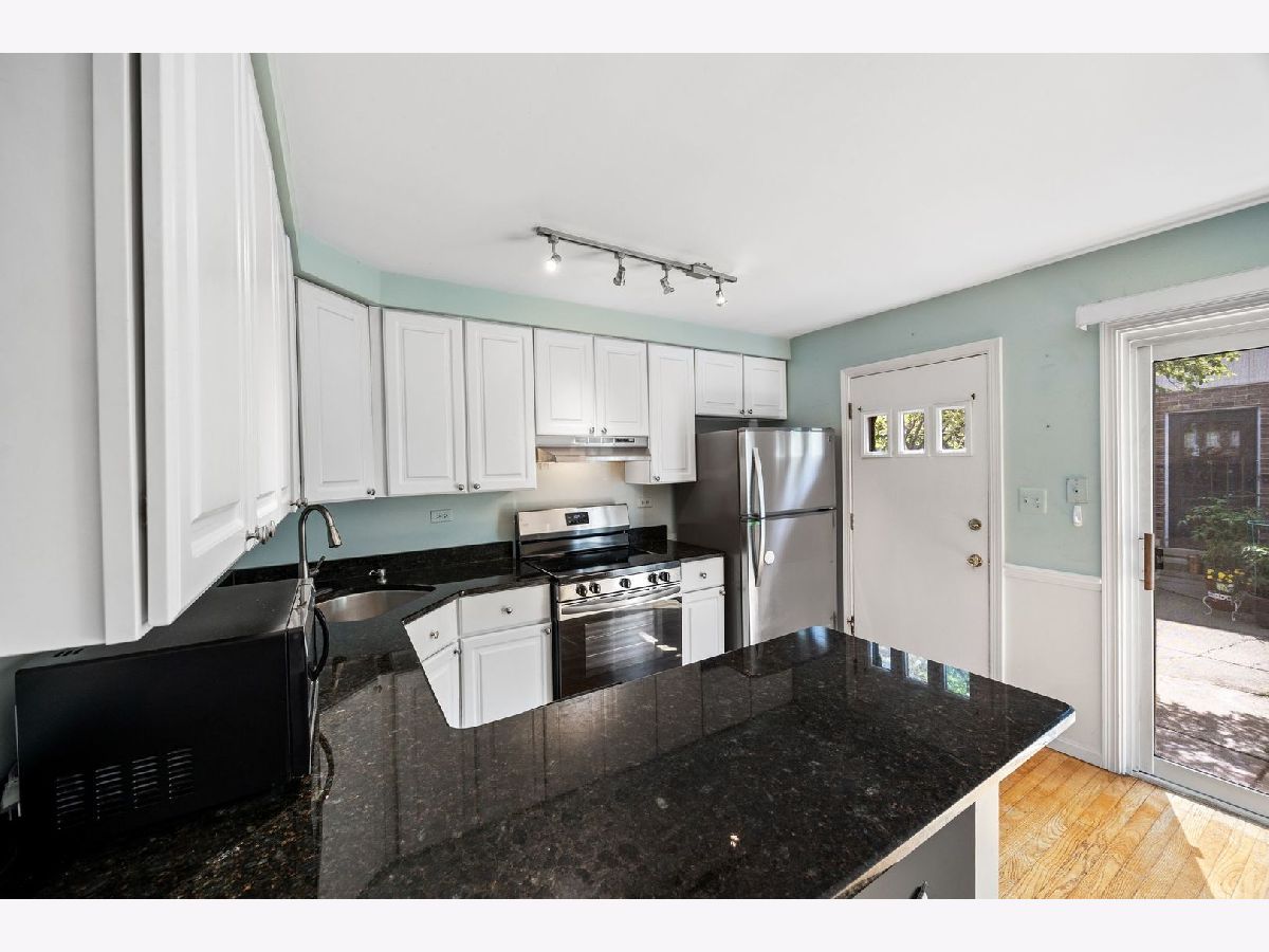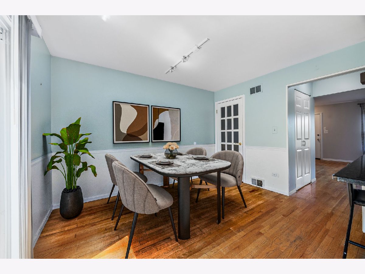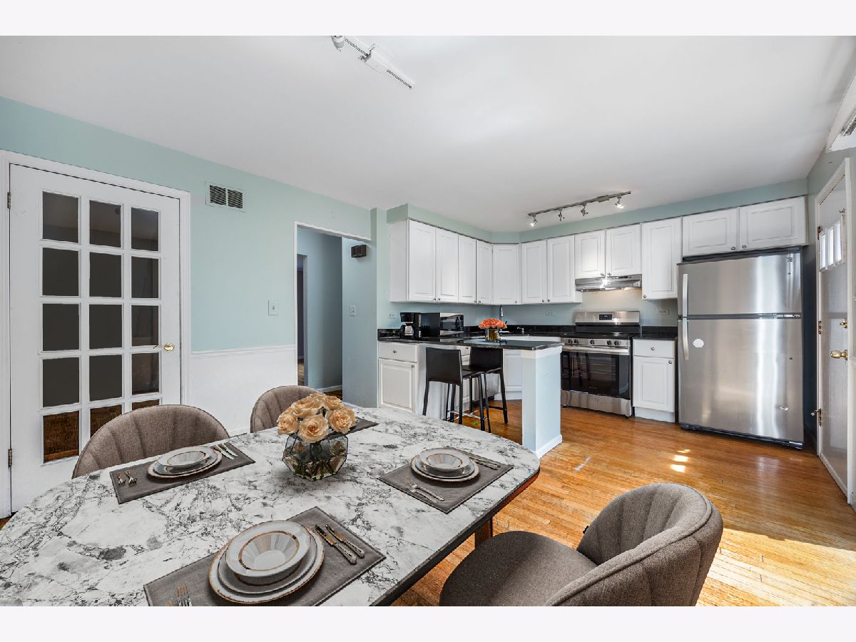 Welcome to this beautifully maintained 2-bedroom, 1.5-bath townhome, perfectly nestled in the heart of Glenview. The inviting living and dining area, featuring rich hardwood floors, offers a versatile space ideal for entertaining or relaxing with loved ones. The eat-in kitchen is a modern chef's dream, boasting an abundance of cabinetry, sleek granite countertops, a convenient breakfast bar, and stainless steel appliances, including a brand-new stove and exhaust hood, plus a newer refrigerator and dishwasher. On the main level, you'll also find a stylish powder room, perfect for guests. The lower-level family room is an excellent space for recreation or casual entertaining, providing a cozy retreat for movie nights or gatherings. Upstairs, the spacious master bedroom and second bedroom both offer ample closet space, ensuring plenty of room for storage. The second-level hall bath features a tub with a ceramic tile surround, adding a touch of elegance. This home also includes practical updates for your peace of mind, such as a hot water tank (2015), newer roof (2019), and a brand-new Lennox HVAC unit (2021) with a Google Nest Smart Thermostat. Additional storage space is available via pull-down stairs to the attic, and the lower level houses a laundry-mechanical room complete with a washer and dryer. Located within the highly regarded District 34 and 225 school zones, this townhome also comes with two assigned parking spaces and a 1-year home warranty for added comfort and security. Don't miss out on this rare opportunity to make this wonderful townhome your own!