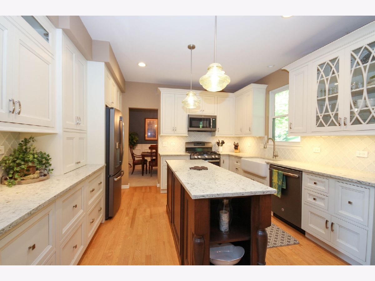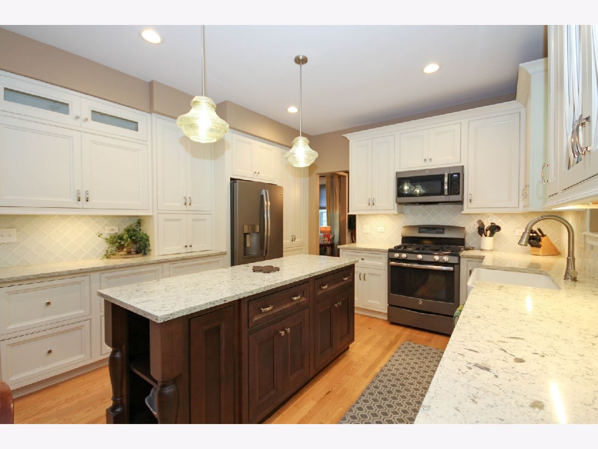 Tucked back in Renaux Manor on a premium lot, this 4 bedroom home offers more than 3,000 square feet of living space. The newly remodeled kitchen sports high-grade quartz countertops and cabinets, slate appliances, under-cabinet lighting, and an island. The cozy family room features a refinished fireplace. The large master suite has a walk-in closet and a full bath with double vanity, separate shower, and large jetted tub. Get away to the large rec room in the basement with can lighting and new carpet just installed! The fenced-in backyard is a great place to relax on the Brussels Block paver patio with awning. Extra space in the garage, and in-ground irrigation system. Additional improvements include the roof, gutters, windows, and water softener.