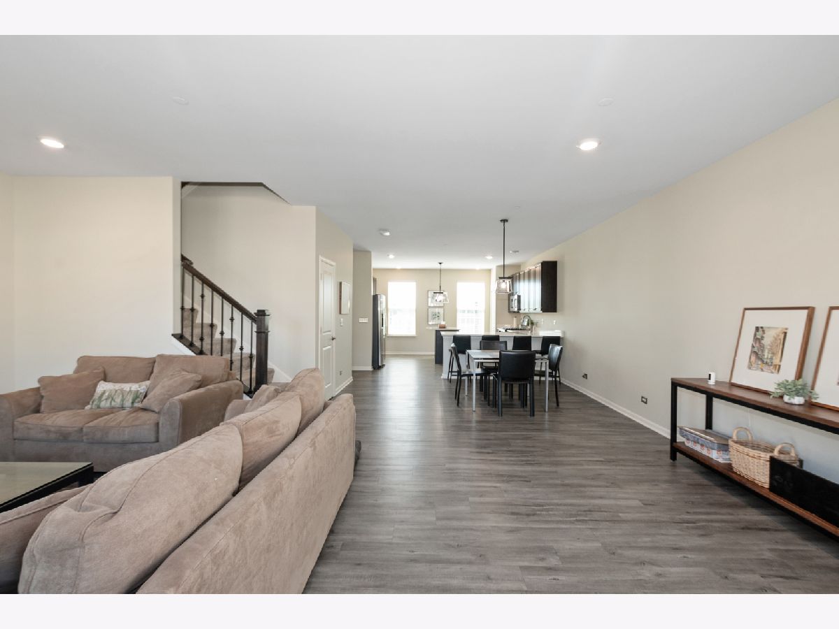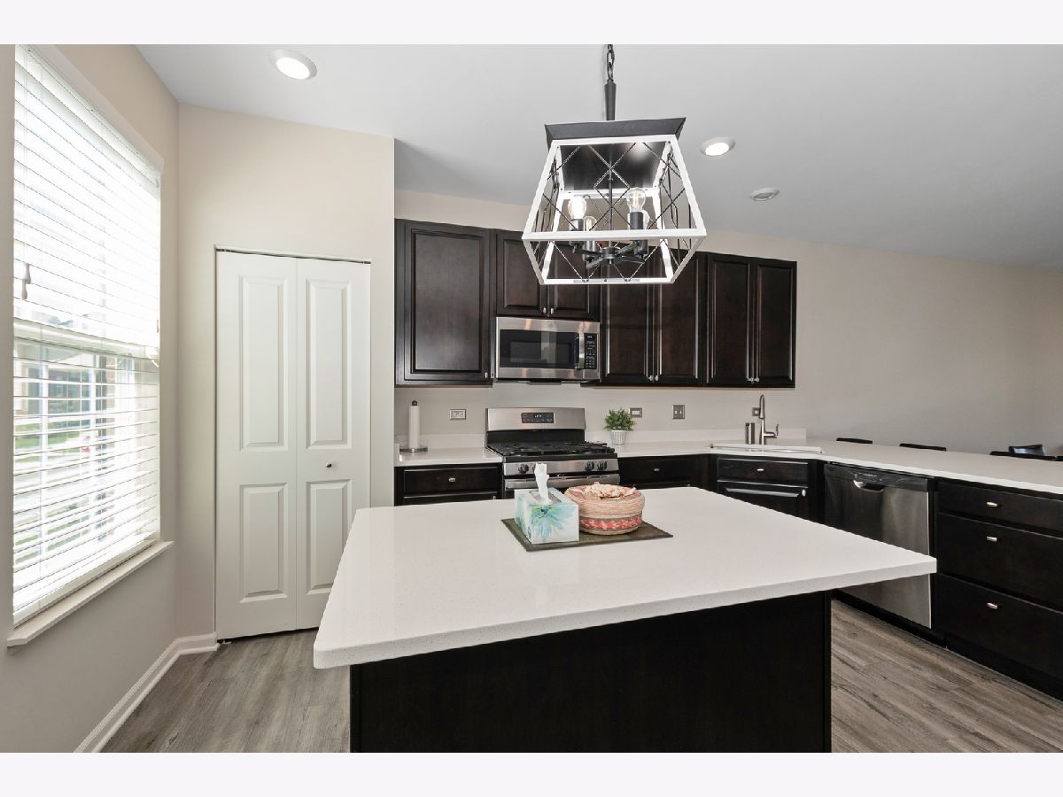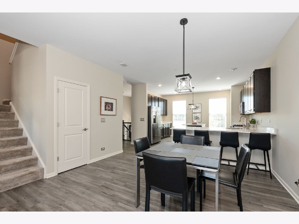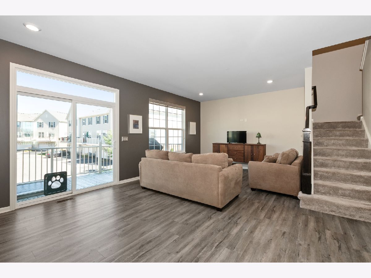 Stunning open floor plan in this gorgeous Chelsea model townhome featuring 3 bedrooms plus an office and 2 1/2 baths, including a private master bath. Luxurious living with 42 inch maple Mocha cabinets, frost white quartz kitchen countertops, a spacious island, GE SS appliances and 9 foot ceilings. There's also a spacious breakfast bar, formal dining room/living room combo that can easily accommodate a large flat screen TV. Custom blinds/shades thru out, other amenities include main floor office, kitchen island, vinyl plank flooring, wrought iron railings, full private master bath with water closet, a huge shower, walk-in closets and a wide balcony off the living room. Easy access to I-88, minutes to Metra and downtown Batavia. The garage is amazing with an amazing epoxy floor, wainscoting and additional electric ran for custom lighting. WOW! Shows like a model.