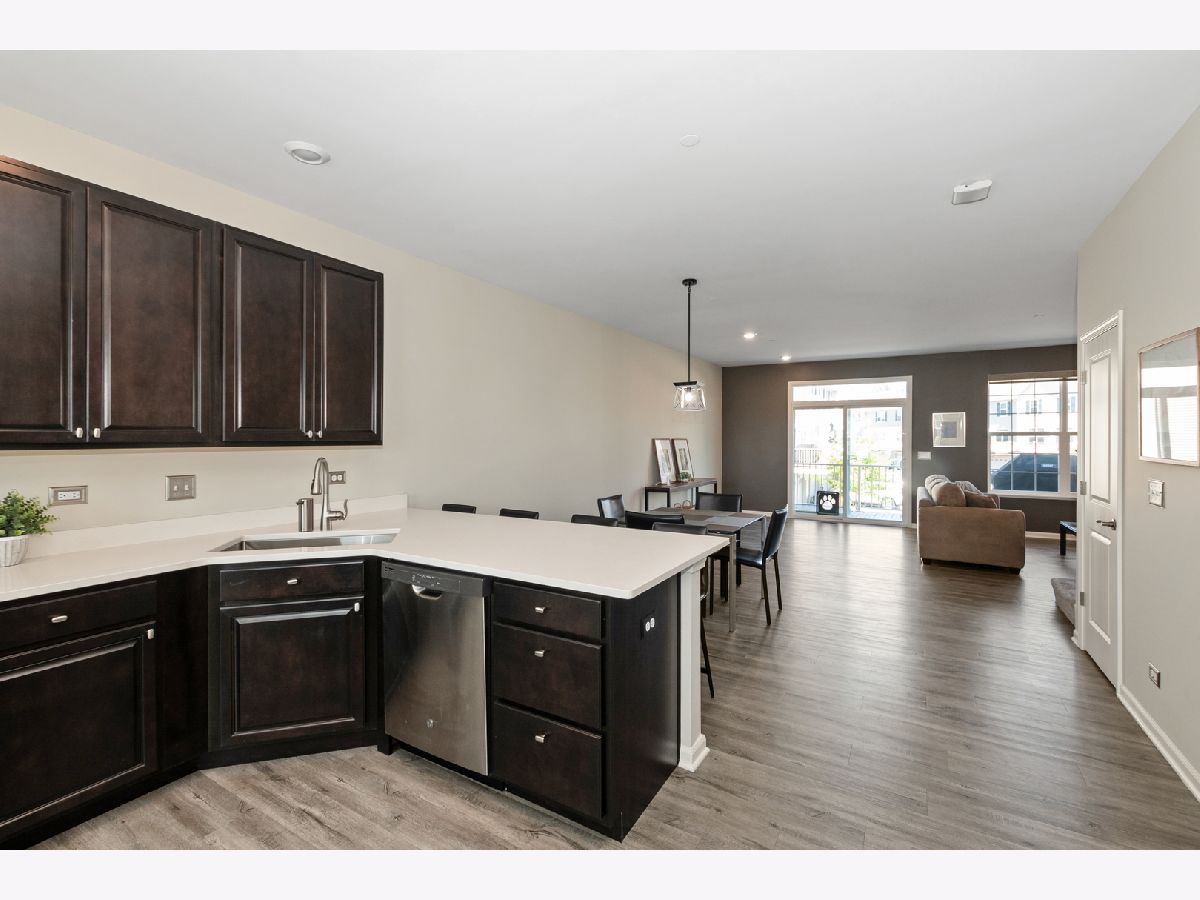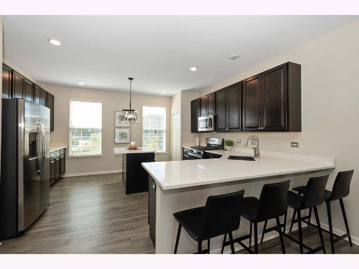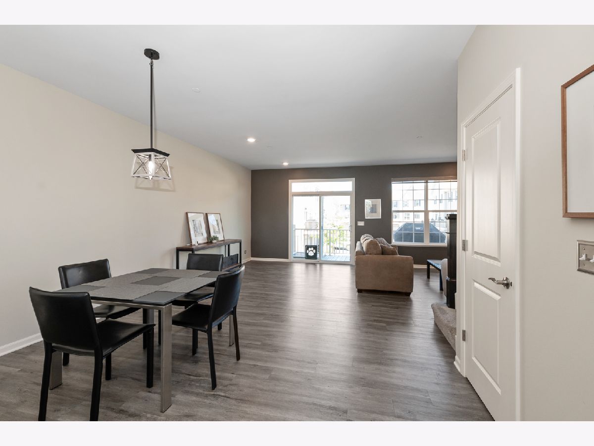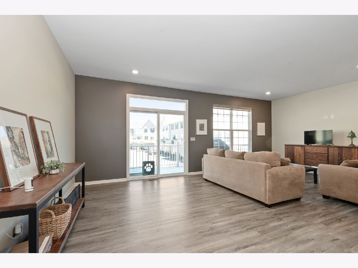 Stunning open floor plan in this gorgeous Chelsea model townhome featuring 3 bedrooms plus an office and 2 1/2 baths, including a private master bath. Luxurious living with 42 inch maple Mocha cabinets, frost white quartz kitchen countertops, a spacious island, GE SS appliances and 9 foot ceilings. There's also a spacious breakfast bar, formal dining room/living room combo that can easily accommodate a large flat screen TV. Custom blinds/shades thru out, other amenities include main floor office, kitchen island, vinyl plank flooring, wrought iron railings, full private master bath with water closet, a huge shower, walk-in closets and a wide balcony off the living room. Easy access to I-88, minutes to Metra and downtown Batavia. The garage is amazing with an amazing epoxy floor, wainscoting and additional electric ran for custom lighting. WOW! Shows like a model.