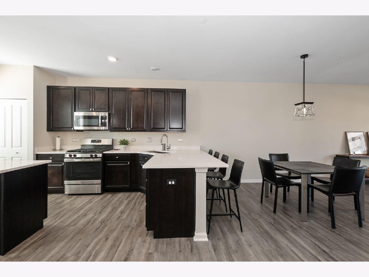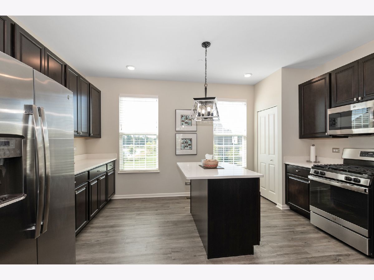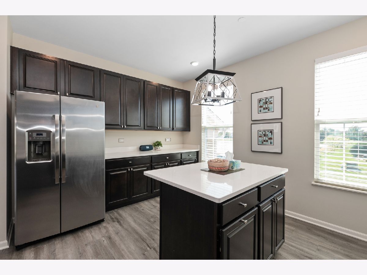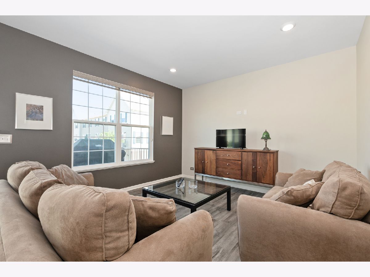 Stunning open floor plan in this gorgeous Chelsea model townhome featuring 3 bedrooms plus an office and 2 1/2 baths, including a private master bath. Luxurious living with 42 inch maple Mocha cabinets, frost white quartz kitchen countertops, a spacious island, GE SS appliances and 9 foot ceilings. There's also a spacious breakfast bar, formal dining room/living room combo that can easily accommodate a large flat screen TV. Custom blinds/shades thru out, other amenities include main floor office, kitchen island, vinyl plank flooring, wrought iron railings, full private master bath with water closet, a huge shower, walk-in closets and a wide balcony off the living room. Easy access to I-88, minutes to Metra and downtown Batavia. The garage is amazing with an amazing epoxy floor, wainscoting and additional electric ran for custom lighting. WOW! Shows like a model.