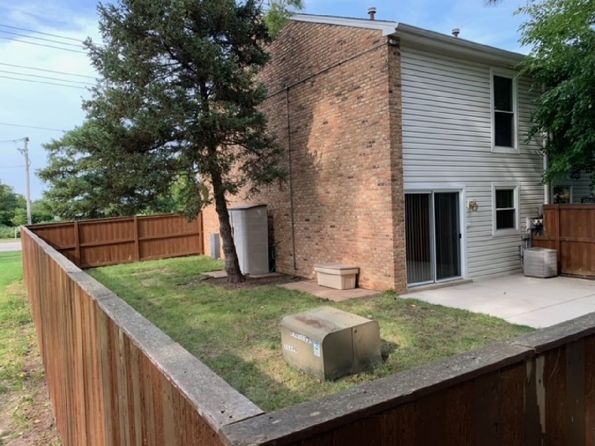 Attention investors and first time home buyers. This end unit is one of the only 8 units in the subdivision with an extremely large back and side yard . Fully fenced yard with approximately 1,000 sq f. of grass area. Location is one of the best in the subdivision as you would be able to park your cars in the back or in the front of the unit on Hassell Rd. Fence was installed by the HOA only 5 years ago and is maintained by the association. Newer extra large concrete patio- installed 6 y. ago. Very clean and well mantained property. No pet weight restrictions. RENTALS are allowed. Second floor bedrooms are larger than the interior units in the same subdivision. First floor family room, kitchen and eating area with laminate floor and tiled dining room area, which opens to the outdoor and leads directly to the outside open space through the sliding door. Plenty of space for grill, outdoor furniture and great view of the golf course. Owner will leave the outside shed and storage box with the hose. The second level of the home features 2 bedrooms, a full bath and a laundry closet with newer washer and dryer. Second floor laundry is just one of the many wonderful features of the property. Great location- close to I-90, shopping, golf, parks, highly rated schools and walking paths. Woodfield Mall is only 8 min from the property and HE park district Recreational facilty is just around the corner of Higgins and Huntington. FHA and VA friendly subdivision. Low assessment of $253 includes all utilities ,but electric. Easy to show and Easy to buy.