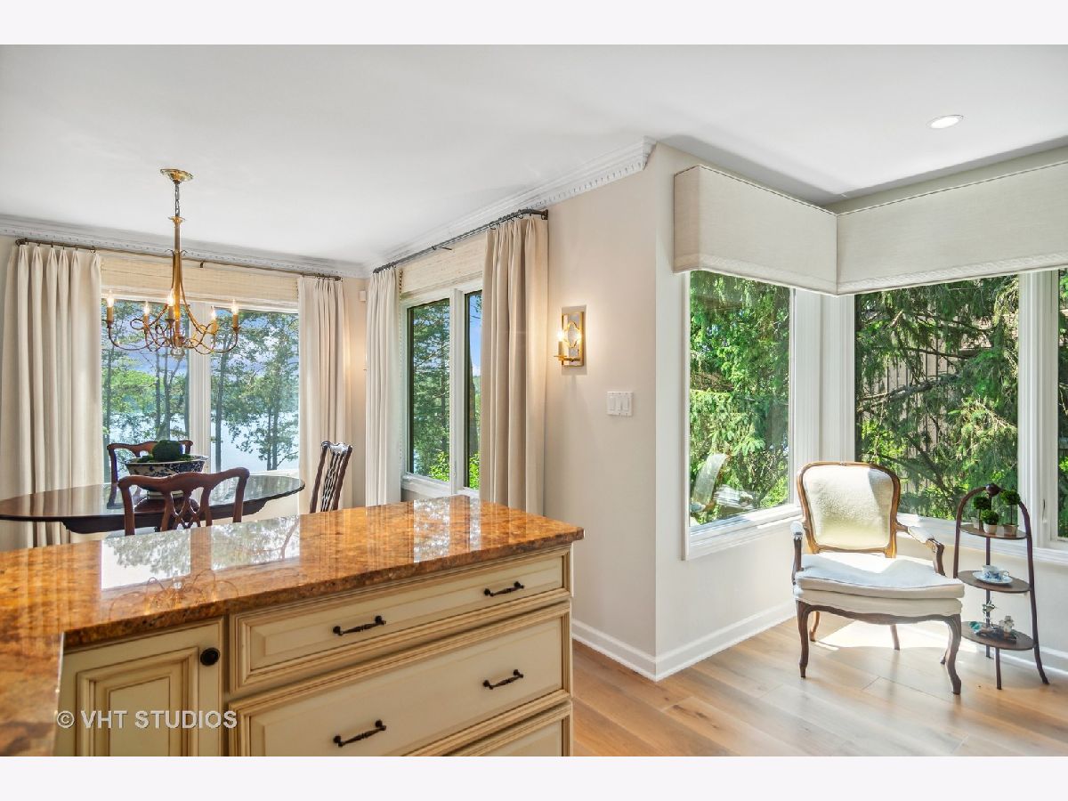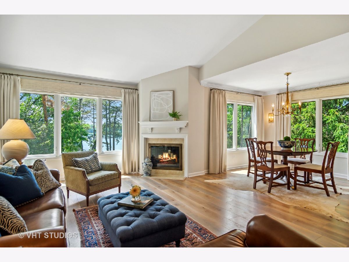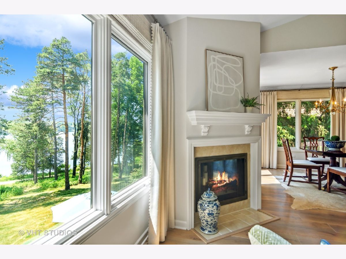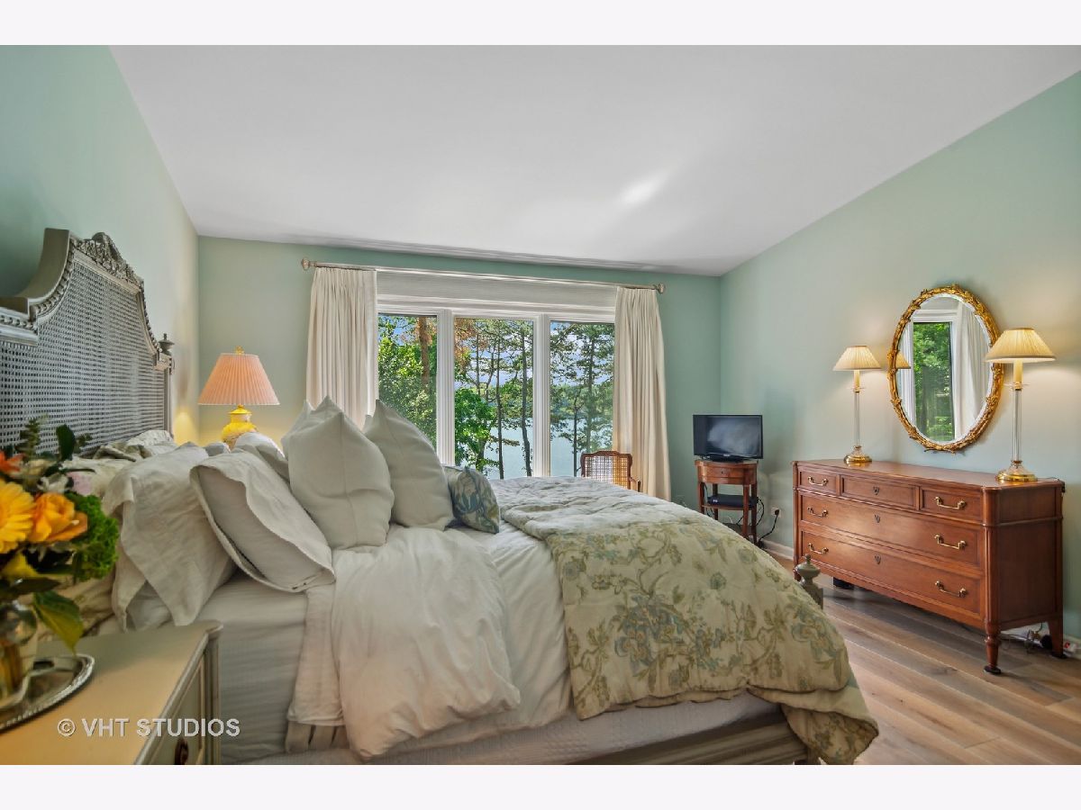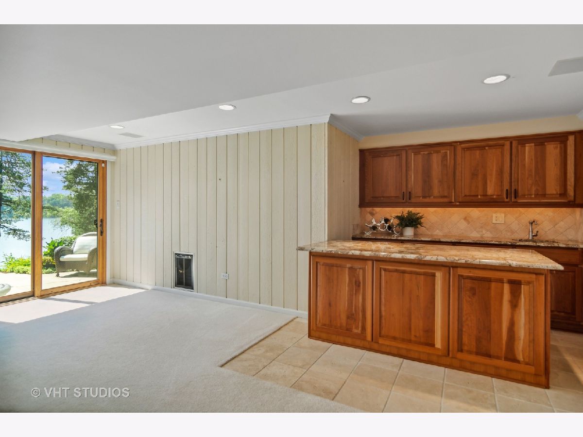 A rare opportunity to purchase one of the most requested homes in Lake Barrington Shores! Enjoy panoramic sunset views over Lake Barrington from this Kimball 1/2 Duplex Ranch waterfront end unit! This gorgeous, move-in ready 4 bedroom, 3 bathroom home has been updated & upgraded with the finest finishes and highest of standards. The private courtyard welcomes you with a NEW brick paver path & patio as you are enveloped by lush, perennial landscaping. Once inside, the open floorplan allows stunning views of the lake from almost every room! The completely remodeled kitchen, which was featured in "Chicago Home and Garden" magazine, offers NEW paint, high-end, stainless steel appliances, custom hardwood cabinetry, timeless fixtures, granite countertops & breakfast nook that opens to the lovely dining room. The living room features vaulted ceilings, wood-burning fireplace, large windows with lake views, NEW paint & NEW wide plank, white oak floors that continue throughout the entire first level! The main level also offers a generous primary suite with picture-perfect views, ample closet space & remodeled ensuite bath with beautiful, custom millwork & luxe finishes. Two more bedrooms grace this level, both with access to the impeccably updated hallway bath. The third bedroom could easily be a home office or den and has sliding glass doors to the private courtyard. The walkout lower level is bright & open with plenty of space to entertain & maximize lakeside living! The recreation room offers a full wet bar, third full bath, second wood-burning fireplace & sliding door access to the rear patio. This level also features an exercise room that could be used as a fourth bedroom with lots of storage space & entry to the rear craft room/office, as well as a full laundry room with utility sink. The attic space over the 2-car garage offers even more storage. Lake Barrington Shores amenities round out this opportunity to live like you're on vacation all year round! Come see for yourself before it's too late!