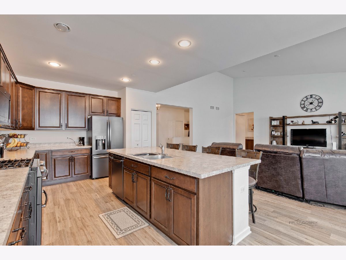 Beautiful Open Concept Ranch Home Feels Brand New! Luxury vinyl Flooring. Vaulted Ceilings in Family Room. Kitchen features a Large 9'x4' Kitchen Island, double oven and all high end Black Stainless Steel Appliances. 3 Large Bedrooms. 2 Full Bathrooms. Primary Bedroom has a Tray Ceiling, Access to the Covered Patio, Motorized Hunter Douglas Blackout Window Treatments, Ensuite Bath with Large Walk In Closet, Private Water Closet and Tons of Storage! Separate Laundry Room is Complete with Custom Cabinetry and Work Space. Full Unfinished Basement waiting for your Finishing Touches! Gorgeous Outdoor Space Features a Covered Porch and Beautiful Patio with Retaining Wall. 3 Car Garage has Epoxy Flooring and additional hot and cold hose bib for easy washing accessibility. Brick Paver Lined Asphalt Driveway. Professionally Landscaped with Brick Paver Flower Beds. Fire Sprinkler System Throughout the Home. This could be the one you've been waiting for!!