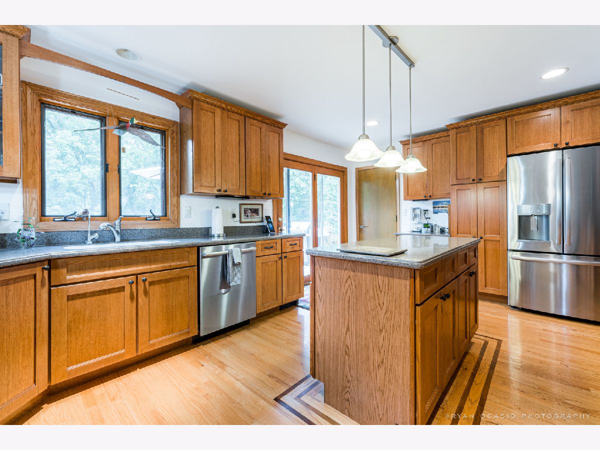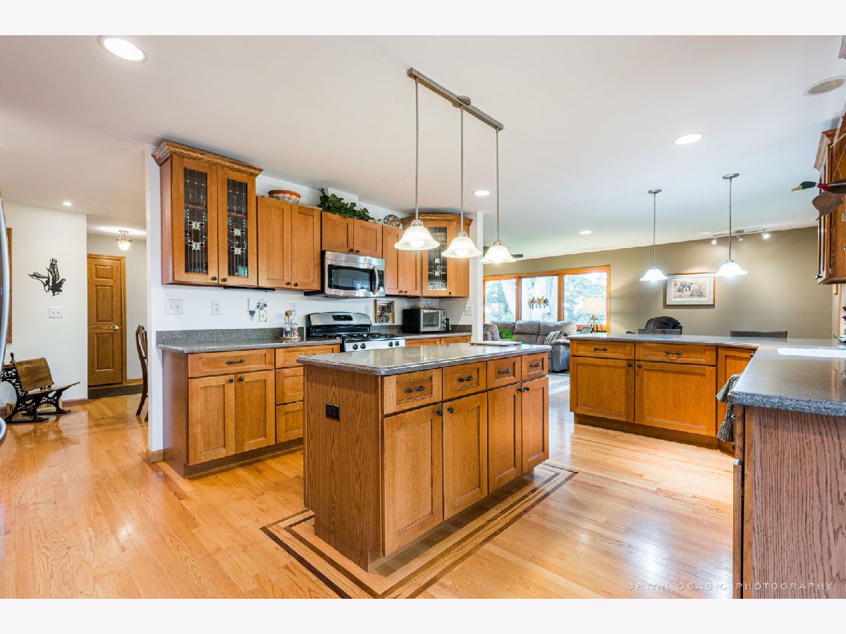 LOOKING FOR A RURAL PARK-LIKE SETTING, BUT CLOSE TO TOWN? THIS IS IT! Close enough to town for natural gas and cable, but far enough out to have a 2.65 acre piece of peaceful paradise! A spectacular nicely landscaped and partially wooded lot with a creek at one side and farmer's field behind. The home was rehabbed in 2007 and has had many improvements since (see list with disclosures). Beautiful hardwood floors (with some inlays) throughout. Newer ledgestone gas fireplace in the living room and a wood burning fireplace (as is) in the dining room. Love to cook? Check out the spacious kitchen with tons of quarter sawn oak cabinetry and plenty of solid surface counter space including a center island. All stainless steel appliances and the peninsula has seating space for 3-4 people. The dining room opens to the living room giving options for expanded seating with large gatherings.The master bedroom has an attached master bath and is connected to the first floor laundry. Basement has access through the garage and could be an in-law living arrangement. Basement is finished with a large kitchen and dining area, 2 bedrooms with egress windows and a bathroom with shower. The other half of the basement offers plenty of storage space, plus a second laundry center. A second stairway to the first floor was covered with the rehab, but could be reopened. Recent improvements include a "whole house" generator powered by natural gas and automatically comes on when electricity goes off protecting all of the essentials (sump pump, well, furnace, appliances, etc.); new siding and stone accent, blacktop driveway, and garage/front porch flooring sealed and painted. Attached 2 car garage. The 26'X27' pole building offers more parking and storage space, OR... the building can be heated (insulation and gas wall heater -as is- in place). Property includes an abundance of trees, bushes, a small pond, fenced in area, and a fire pit. Take a walk (off property) down the creek path for a half mile. This is truly a park-like setting with direct access to the creek and a path perfect for walking, 4-wheeling, cross country skiing, or snowmobiling! Come on out to discover all this property has to offer. Realtor owned.