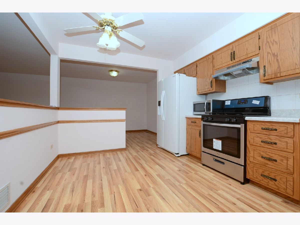 QUALITY BUILT 2060 SQ FT "EAGLE RIDGE" TOWNHOME SPLIT-LEVEL WITH OPEN FLOOR PLAN, BRIGHT & IMMACULATE. ALL NEW GORGEOUS LAMINATE HARDWOOD FLOORS THRU-OUT!! A NEW KITCHEN COUNTER TOPS, BRAND NEW SS KITCHEN RANGE/OVEN! FRESHLY PAINTED! WALK IN TO THE VAULTED ENTRY FOYER VIEW THE GLEAMING FLOORS THRU OUT. OPEN EAT-IN-KITCHEN WITH DIRECT ACCESS TO OR FROM THE OVERSIZED GARAGE WITH WATER & DRAIN. GREAT FOR UNLOADING GROCERIES & PARCELS. HUGE FAMILY ROOM WITH FIREPLACE & WET BAR. TASTEFULLY DECORATED WITH NEUTRAL DECOR. 2 1/2 BATH WITH MASTER BATH PRIVATE BATH. 2 SPACIOUS BEDROOMS. LARGE FULL SIZE LAUNDRY ROOM WITH UPGRADED WASHER & DRYER. UPON ARRIVAL YOU'LL CALL THIS "HOME"!! LOCATION, LOCATION, LOCATION! CLOSE TO ALL TRANSPORTATION INCLUDING METRA, WALKING DISTANCE TO PARK, WALKING TRAILS, GOLF COURSE, EXPRESSWAYS & SHOPPING! ALL YOU HAVE TO DO IS MOVE IN!!