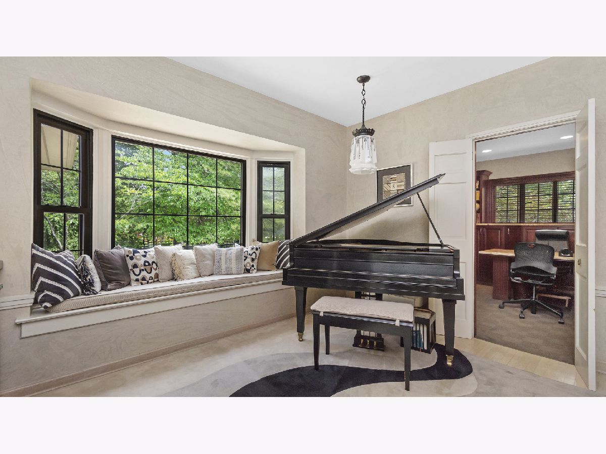 Think of your special buyer taking their first glimpse of this romantic 1930's house ensconced in a beautiful garden setting. Throughout this warm and welcoming home, you will be wowed by the seamless blending of the traditional and updated. The gracious foyer opens to a large living room, enhanced with a wood beamed vaulted ceiling, fireplace and French doors. The updated eat-in kitchen has an island, top of the line appliances with 2 dishwashers. The large dining room includes ample storage and French doors that open to a wrap around deck, which offers entertaining space and beautiful views of the property. The first floor is completed by the family room, a music room that can serve many purposes and an office finished with custom built in cabinetry. The primary bedroom suite has been recently remodeled. There are 3 additional bedrooms and two full baths on the second level. The first floor powder room is newly redone. Easy access to to 41, I-294 and the Metra. Ages of Mechanicals: Hot Water Heater 2010 Roof new in 2008 Furnaces 2018 Kitchen remodeled in 2005 Office remodeled in 2005