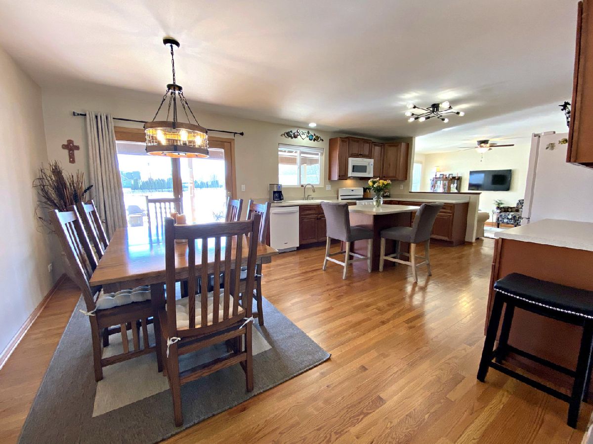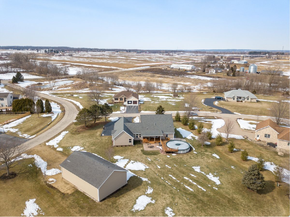 RANCH Floorplan in this Custom Beauty! LOVE, LOVE the 2 COVERED Porches, one in front, one in back - pick your pleasure! FIRST Floor Master Bedroom Suite with the Bathroom REMODEL you have always wanted. Barn Door Access, WALK-IN Ceramic Tile Shower, 2 Walk-in Closets & a JETTED Tub. The perfect spot to recharge your health & sanity at the end of the day! Split bedroom design means the other 2 first floor bedrooms are located on the opposite end of the house, separated by a Jack & Jill Bathroom, separate sink areas & walk-in closets. The OPEN floor plan allows for gathering together. NEW Kitchen Maple Cabinetry, Center Island & new appliances in 2019. Soft close hinges make ALL the difference. Large eating area serves this owner for Dining Area, but the flexible space allows for a separate dining room in the SUNROOM. 2nd Floor features a FULL BATH, Bedroom & REC ROOM area that's perfect for PLAY, Hobby, Fitness Center, Home Office or more bedrooms! OUTBUILDING is 30 x 50, HEATED, with a concrete floor, Room for all the toys, tractors, business you can think of! Other UPDATES include 2020 PELLA Windows, Vinyl Siding, 2018 Hot Water Heater. NO Covenants in this small, friendly neighborhood. And, just a hop, skip to Marengo & Union fun, shopping and TOLLWAY access!