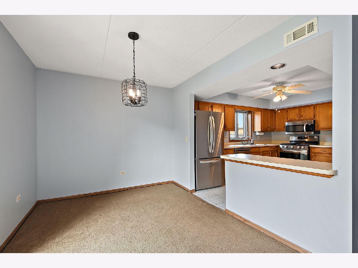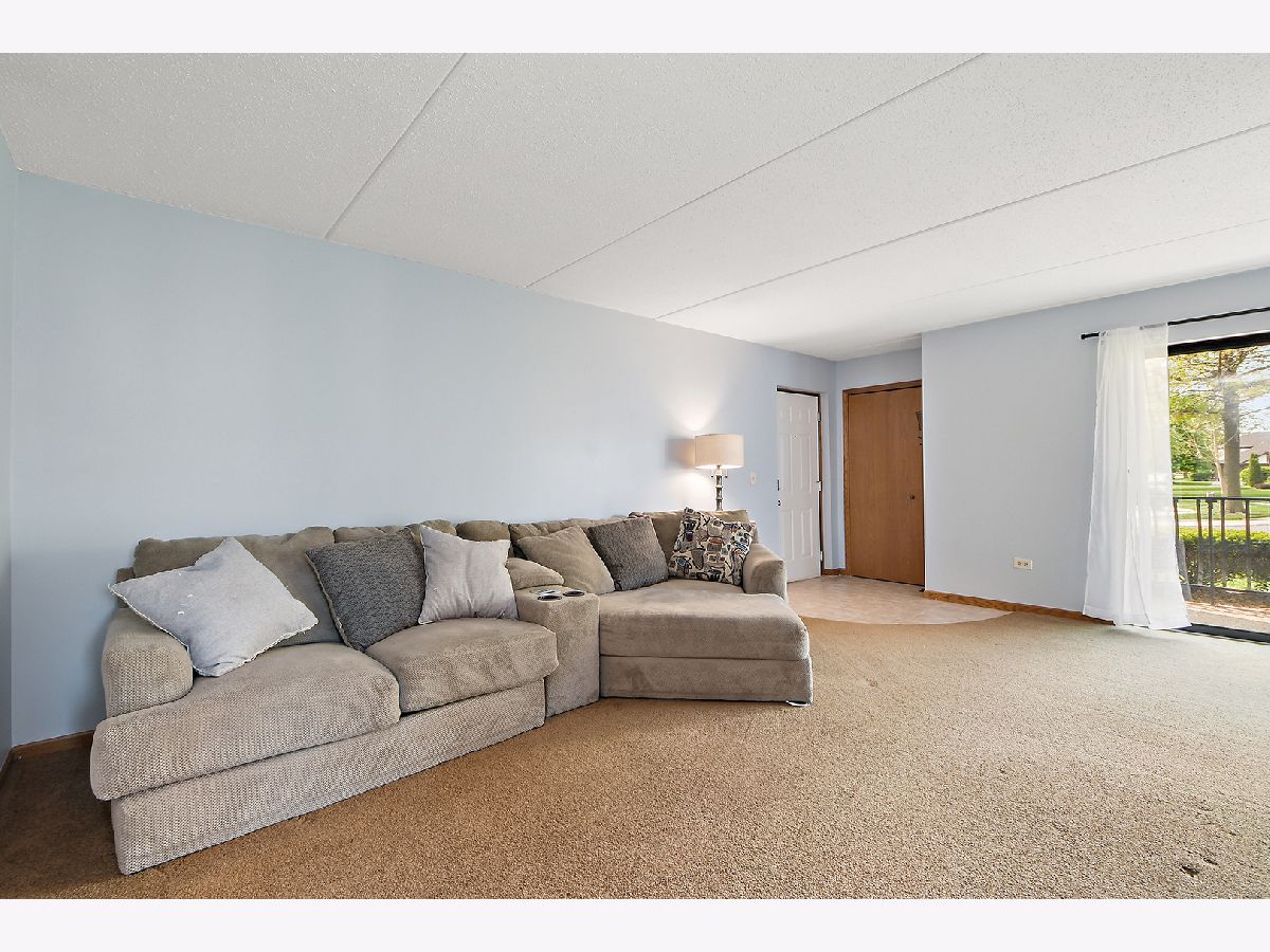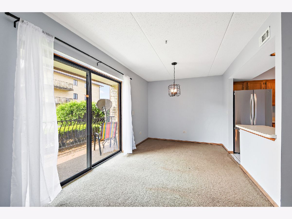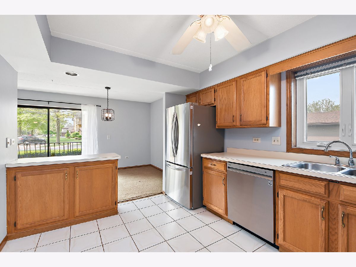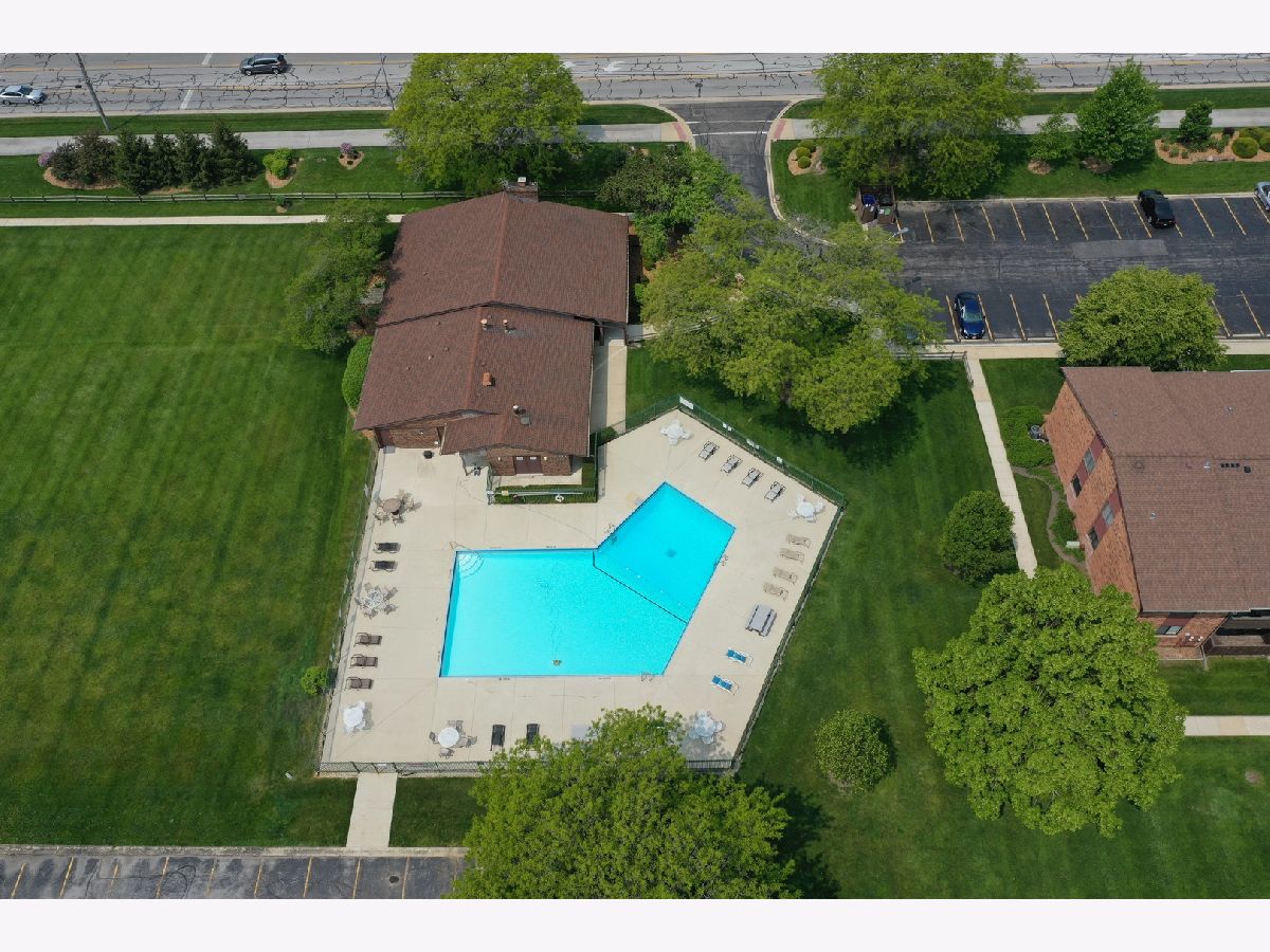 What an awesome location for this first floor condo in Tinley Park. Backing up to Memorial Elementary School with two playgrounds, a baseball field, a basketball court and a shaded open space with benches. The perfect backyard neighbor. This, along with the shopping, dining, and many amenities within walking distance. You will love living here. Even a community clubhouse for parties with bathroom, kitchenette, and in-ground pool surrounded by lounge chairs for tanning. Your condo is equally appealing. Main level living with open concept dining room and living room. View of the outdoor space from the covered balcony overlooking the nicely landscaped yard and large cul-de-sac. Large eat-in kitchen has NEW stainless steel appliances, oak cabinetry, and tile flooring. Two spacious bedrooms including a master with dual closets and recently updated full bathroom. In unit laundry room with NEW washer and dryer, sink, and room for storage. Only steps to your private one car garage. Furnace, AC, and all windows have all been replaced in the last few years as well. All of this, with awesome schools and convenient access to transportation. I think we've checked all the boxes and then some!