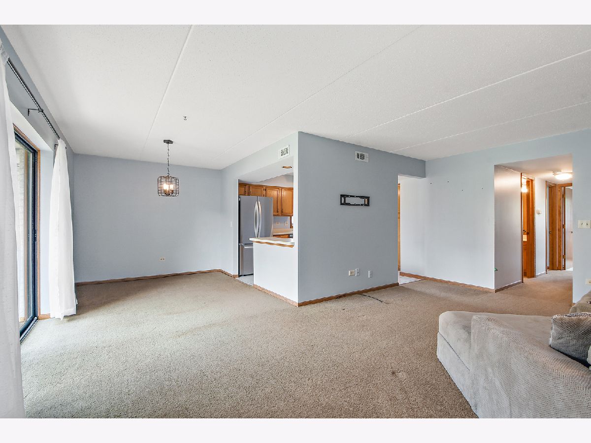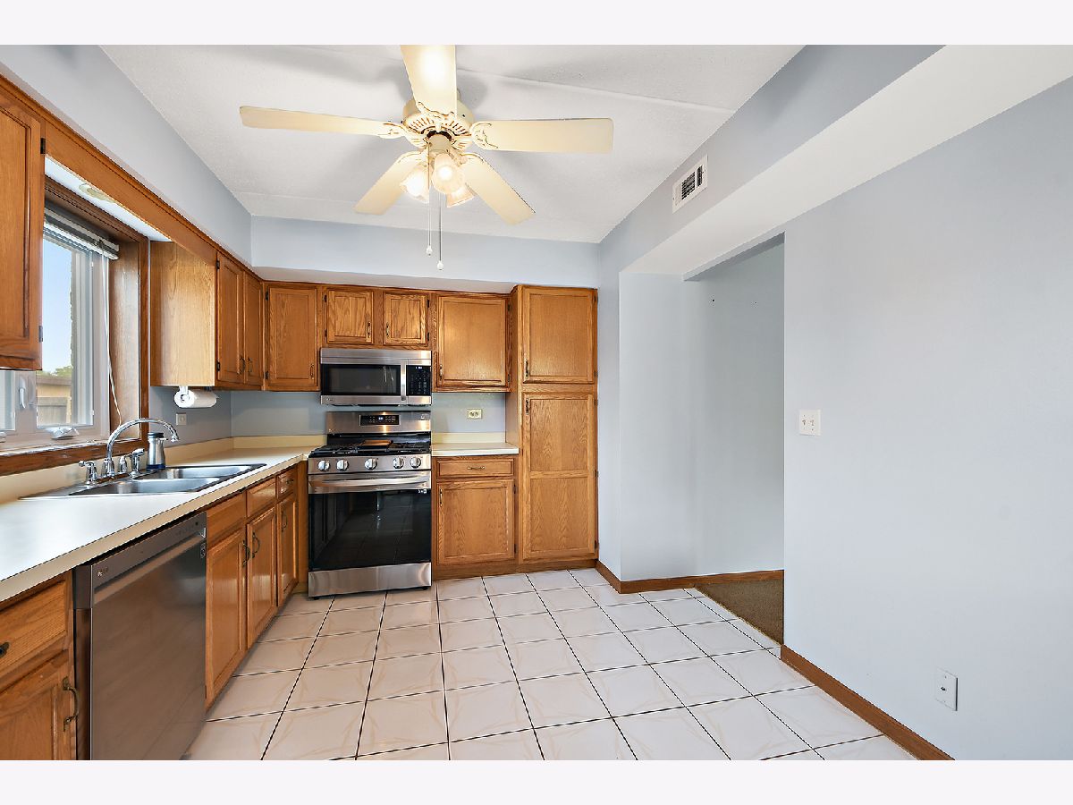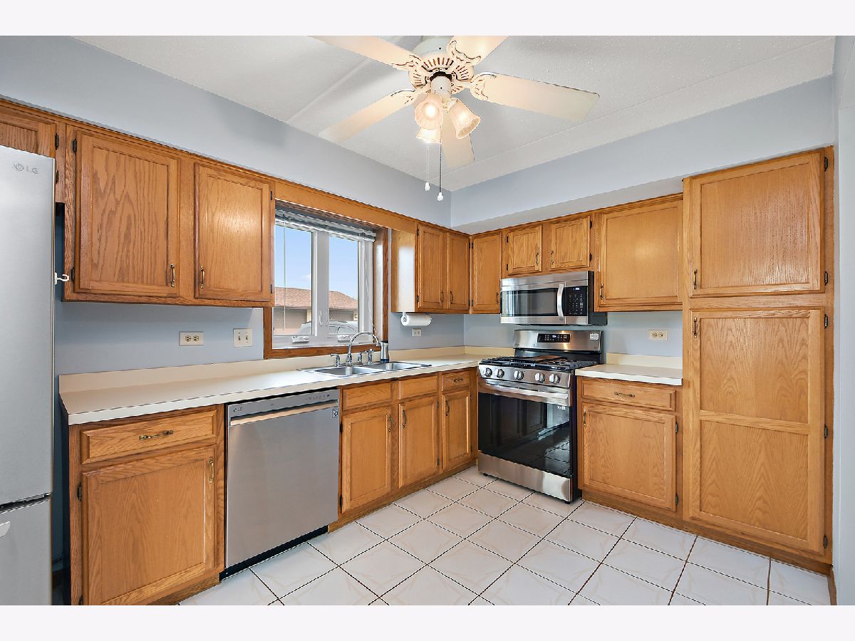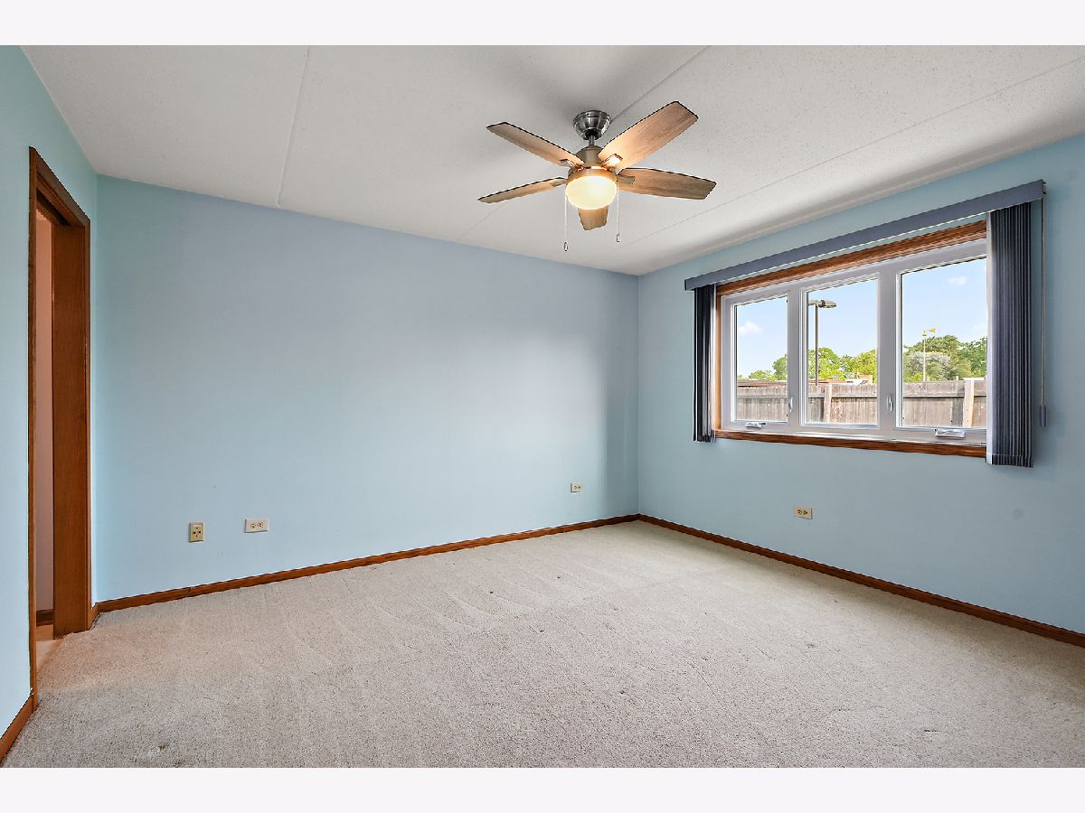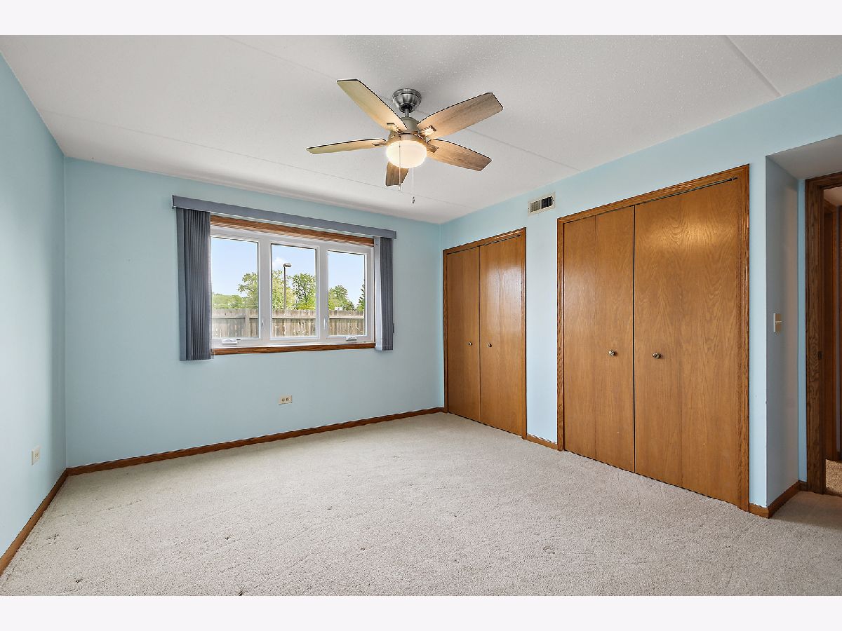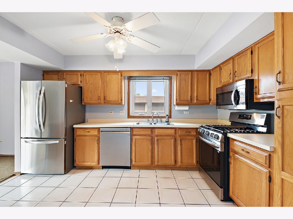 What an awesome location for this first floor condo in Tinley Park. Backing up to Memorial Elementary School with two playgrounds, a baseball field, a basketball court and a shaded open space with benches. The perfect backyard neighbor. This, along with the shopping, dining, and many amenities within walking distance. You will love living here. Even a community clubhouse for parties with bathroom, kitchenette, and in-ground pool surrounded by lounge chairs for tanning. Your condo is equally appealing. Main level living with open concept dining room and living room. View of the outdoor space from the covered balcony overlooking the nicely landscaped yard and large cul-de-sac. Large eat-in kitchen has NEW stainless steel appliances, oak cabinetry, and tile flooring. Two spacious bedrooms including a master with dual closets and recently updated full bathroom. In unit laundry room with NEW washer and dryer, sink, and room for storage. Only steps to your private one car garage. Furnace, AC, and all windows have all been replaced in the last few years as well. All of this, with awesome schools and convenient access to transportation. I think we've checked all the boxes and then some!