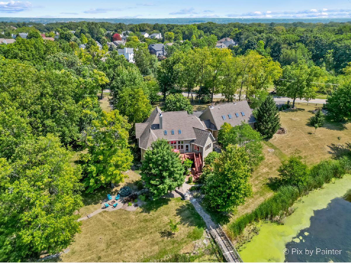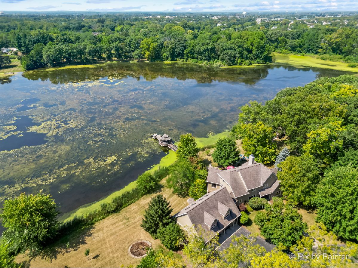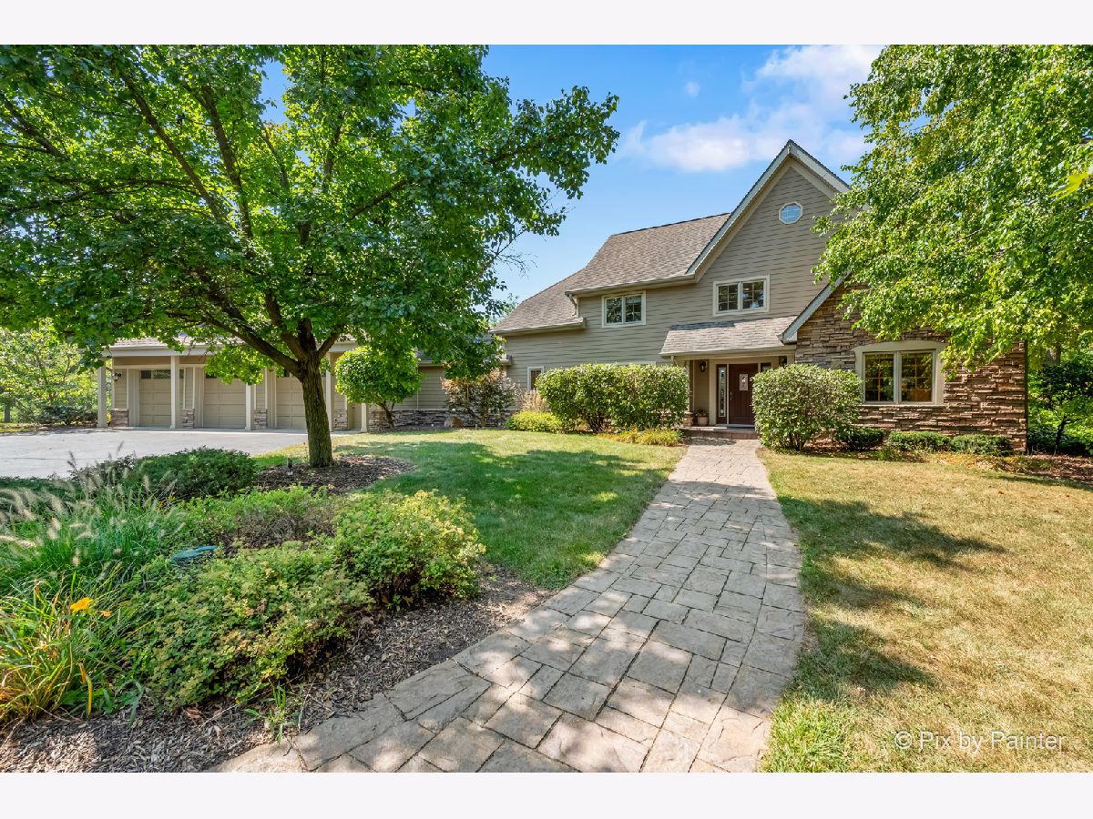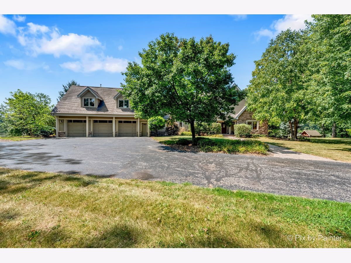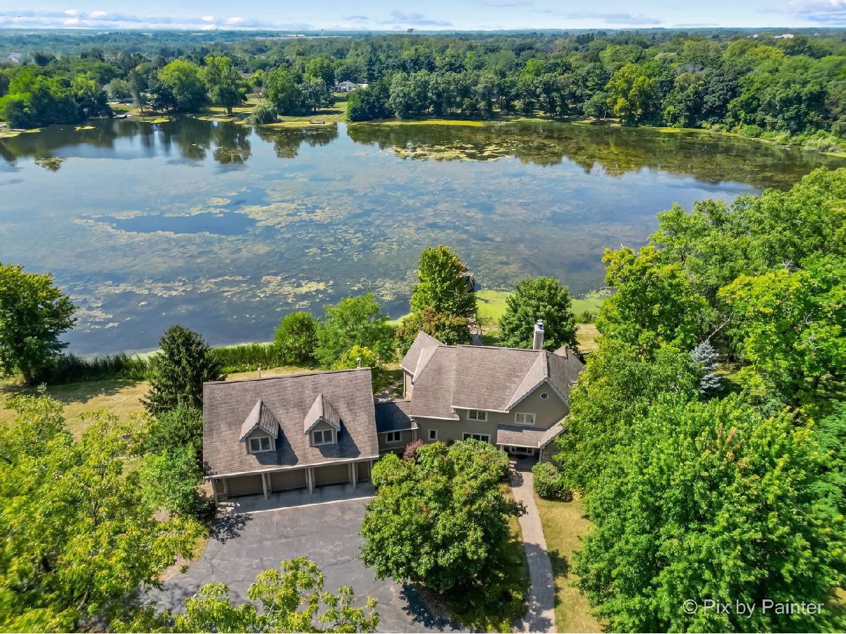 **SELLERS ARE HIGHLY MOTIVATED** Prepare to be enchanted! A little slice of nature tucked within a short drive of everything you expect in modern suburbia! This custom built home adheres to many green building practices such as ICF construction and geothermal heating and cooling (new in 2023). Located on an almost 20 acre lake, this home provides plenty of space both inside and out for comfort and adventure! The main home has 4 bedrooms and 3 full baths, plus an additional suite above the 3-car garage with another bed and full bath. The family room is stunning with vaulted ceiling, floor-to-ceiling fireplace, and plenty of natural light and lake views. With the kitchen and dining nook connected you have a beautiful open concept space for entertaining and day-to-day living. The finished walkout basement will be another favorite hang out space with stone fireplace, access to an outdoor kitchen, wine cellar, and workout room or home office. 1st floor master suite and laundry room! Two additional sheds on the property (12x24 and 10x10) can store your tools and playthings! 2.9 acres of mature trees, young fruit trees, paver paths, wooden deck/gazebo, firepit and easy to maintain landscaping add to the charm of this property. Homes like this do not come along very often! Too many highlights to mention here - be sure to see our Feature Sheet under "Additional Info" as well as our video and floor plans! Make your appointment now to see this beautiful home and imagine the possibilities!