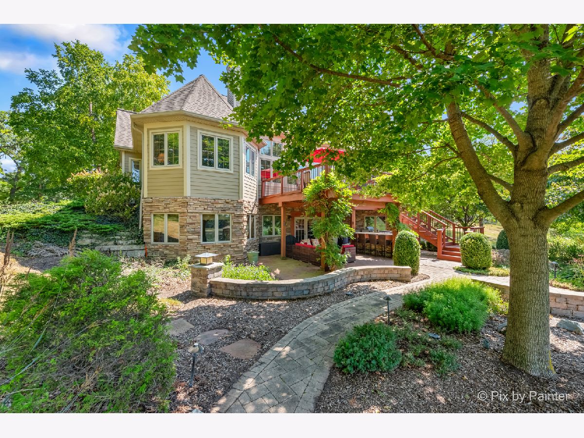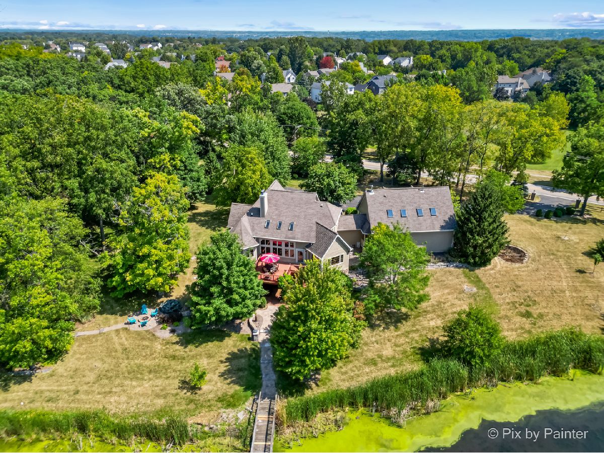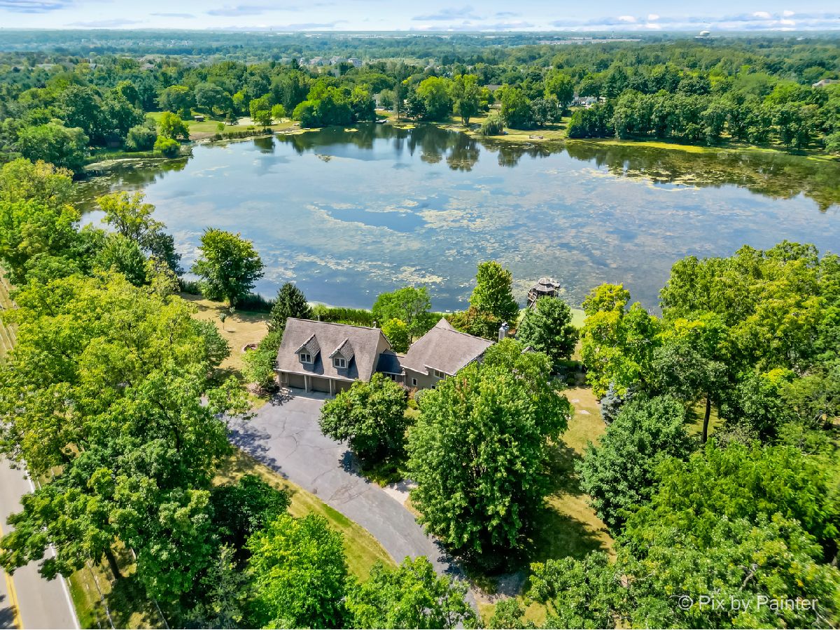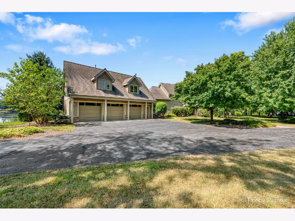 **SELLERS ARE HIGHLY MOTIVATED** Prepare to be enchanted! A little slice of nature tucked within a short drive of everything you expect in modern suburbia! This custom built home adheres to many green building practices such as ICF construction and geothermal heating and cooling (new in 2023). Located on an almost 20 acre lake, this home provides plenty of space both inside and out for comfort and adventure! The main home has 4 bedrooms and 3 full baths, plus an additional suite above the 3-car garage with another bed and full bath. The family room is stunning with vaulted ceiling, floor-to-ceiling fireplace, and plenty of natural light and lake views. With the kitchen and dining nook connected you have a beautiful open concept space for entertaining and day-to-day living. The finished walkout basement will be another favorite hang out space with stone fireplace, access to an outdoor kitchen, wine cellar, and workout room or home office. 1st floor master suite and laundry room! Two additional sheds on the property (12x24 and 10x10) can store your tools and playthings! 2.9 acres of mature trees, young fruit trees, paver paths, wooden deck/gazebo, firepit and easy to maintain landscaping add to the charm of this property. Homes like this do not come along very often! Too many highlights to mention here - be sure to see our Feature Sheet under "Additional Info" as well as our video and floor plans! Make your appointment now to see this beautiful home and imagine the possibilities!