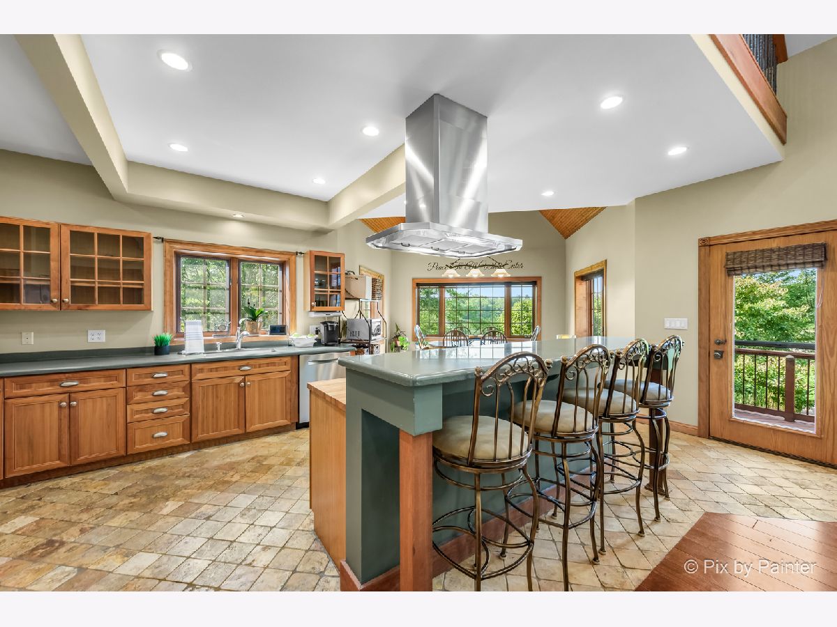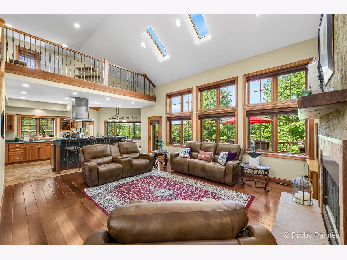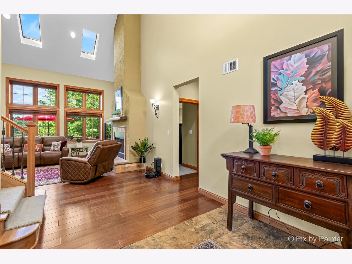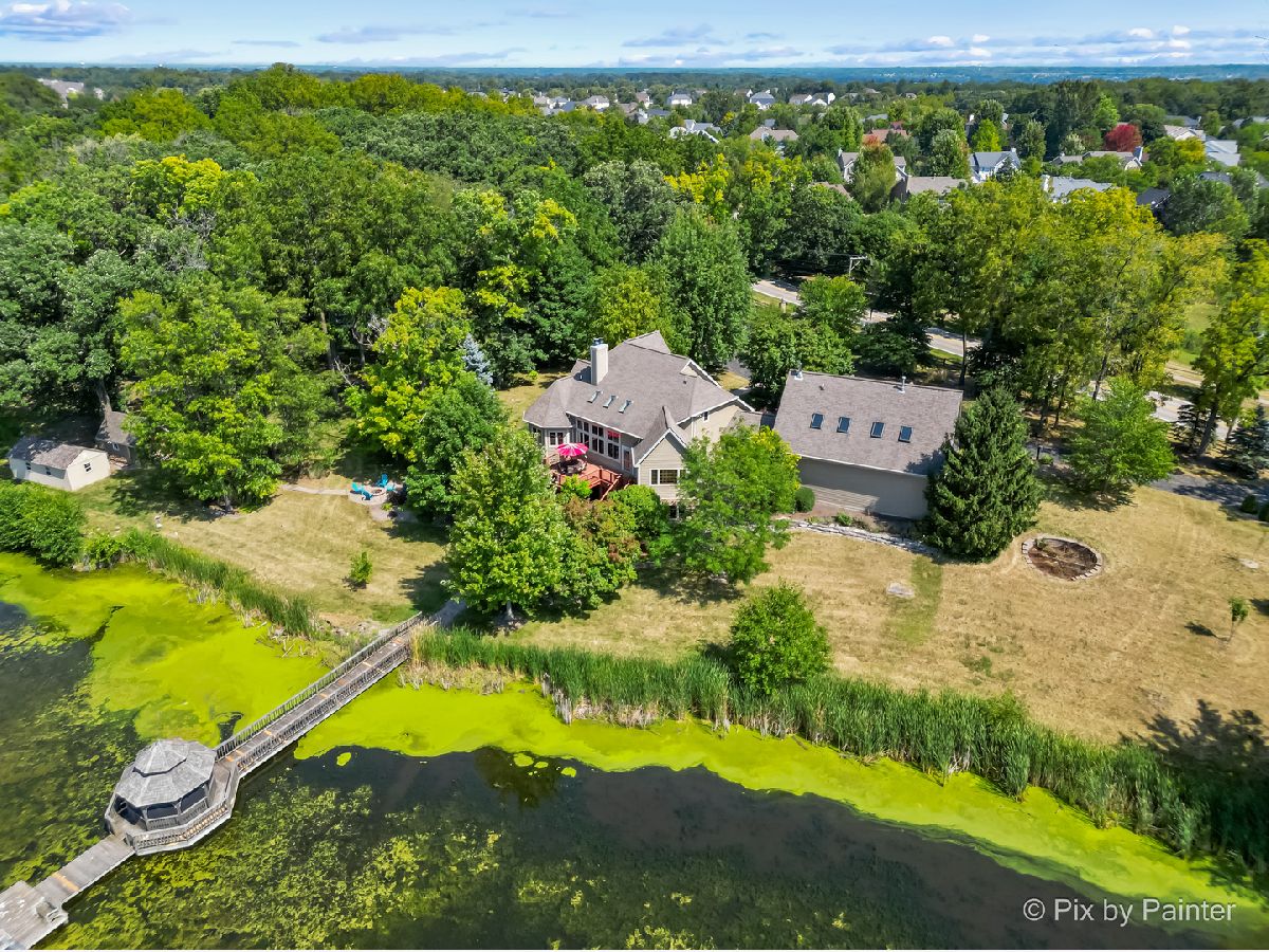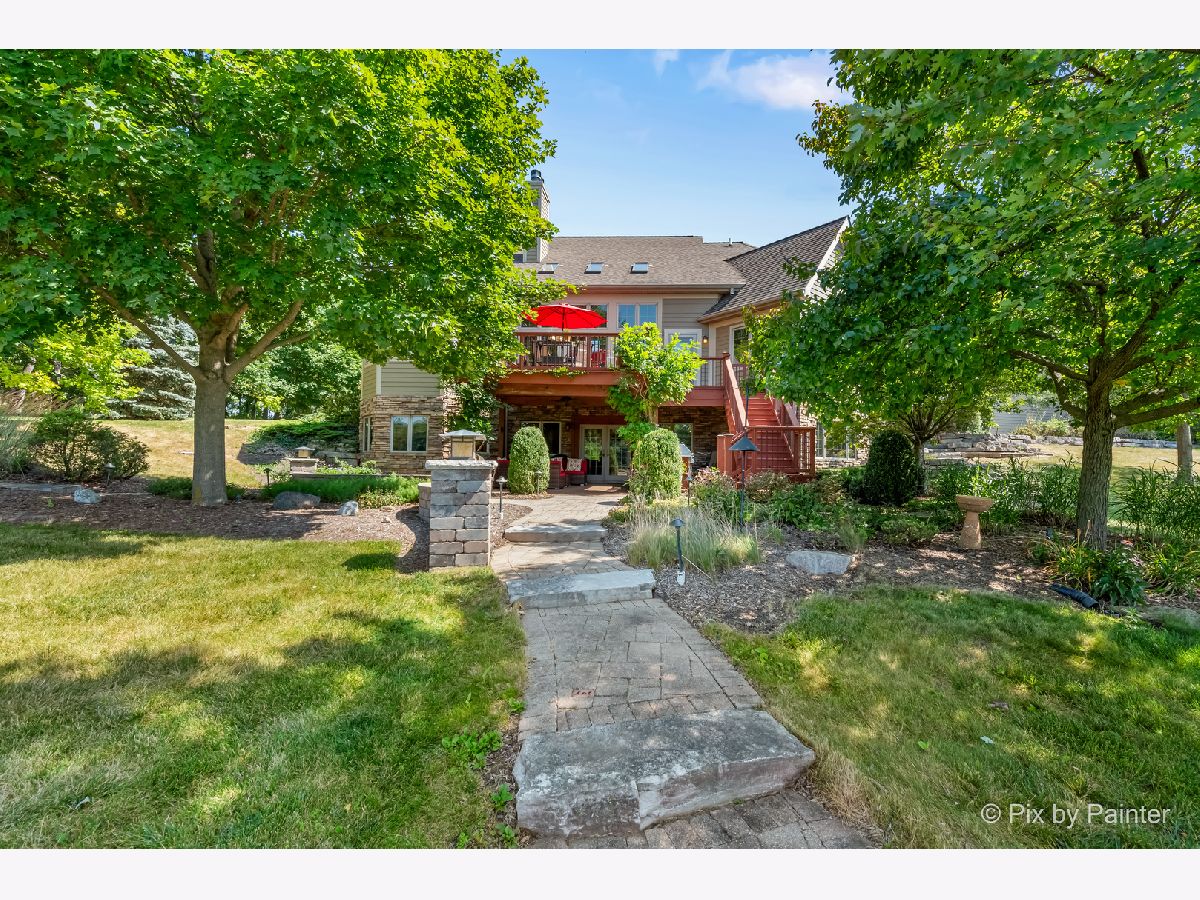 **SELLERS ARE HIGHLY MOTIVATED** Prepare to be enchanted! A little slice of nature tucked within a short drive of everything you expect in modern suburbia! This custom built home adheres to many green building practices such as ICF construction and geothermal heating and cooling (new in 2023). Located on an almost 20 acre lake, this home provides plenty of space both inside and out for comfort and adventure! The main home has 4 bedrooms and 3 full baths, plus an additional suite above the 3-car garage with another bed and full bath. The family room is stunning with vaulted ceiling, floor-to-ceiling fireplace, and plenty of natural light and lake views. With the kitchen and dining nook connected you have a beautiful open concept space for entertaining and day-to-day living. The finished walkout basement will be another favorite hang out space with stone fireplace, access to an outdoor kitchen, wine cellar, and workout room or home office. 1st floor master suite and laundry room! Two additional sheds on the property (12x24 and 10x10) can store your tools and playthings! 2.9 acres of mature trees, young fruit trees, paver paths, wooden deck/gazebo, firepit and easy to maintain landscaping add to the charm of this property. Homes like this do not come along very often! Too many highlights to mention here - be sure to see our Feature Sheet under "Additional Info" as well as our video and floor plans! Make your appointment now to see this beautiful home and imagine the possibilities!