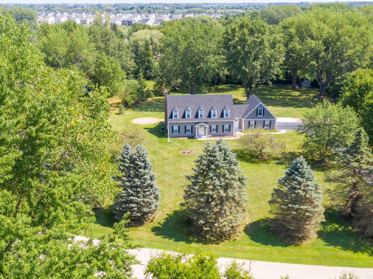 Beautiful Sprawling Estate located on lush green acres in a 16 home hidden community. Surrounded by over 1000 acres of Forest Preserves, this beautiful home is truly one of a kind! 3 bedrooms, 2 1/2 bath home on nearly 2 acres in Unincorporated Kane County is a rare gem with room to build your detached shop or "she shed" up to 900 sq. feet per County. Everywhere you turn, you experience the love that was poured into this beautiful home from top to bottom; it is just bursting with unique architectural details. Gourmet Kitchen with White Quartz Counter Tops, Farm Sink, all Stainless Steel Appliances, Unique Coffee Bar and an eat-in island. So much to list but here are a few of the amazing features: Solid Teak Hardwood Flooring throughout, newer roof, siding, plumbing, electric, fixtures, all entry doors, air conditioning all within the last 4 1/2 years. Architectural Crown Molding throughout. Relax in your beautiful 3 Season Room overlooking a large serene private yard. Full unfinished basement waiting for your personal touch. For those that love the quiet of country life and nature but still want to be only minutes to shopping and the toll road, this home certainly has it all! Hurry and make this beautiful home yours today!