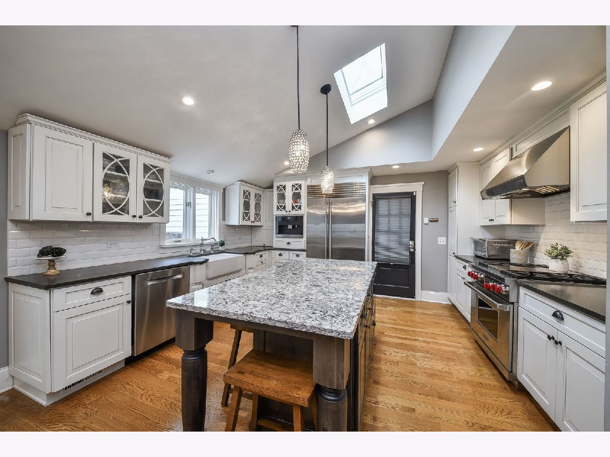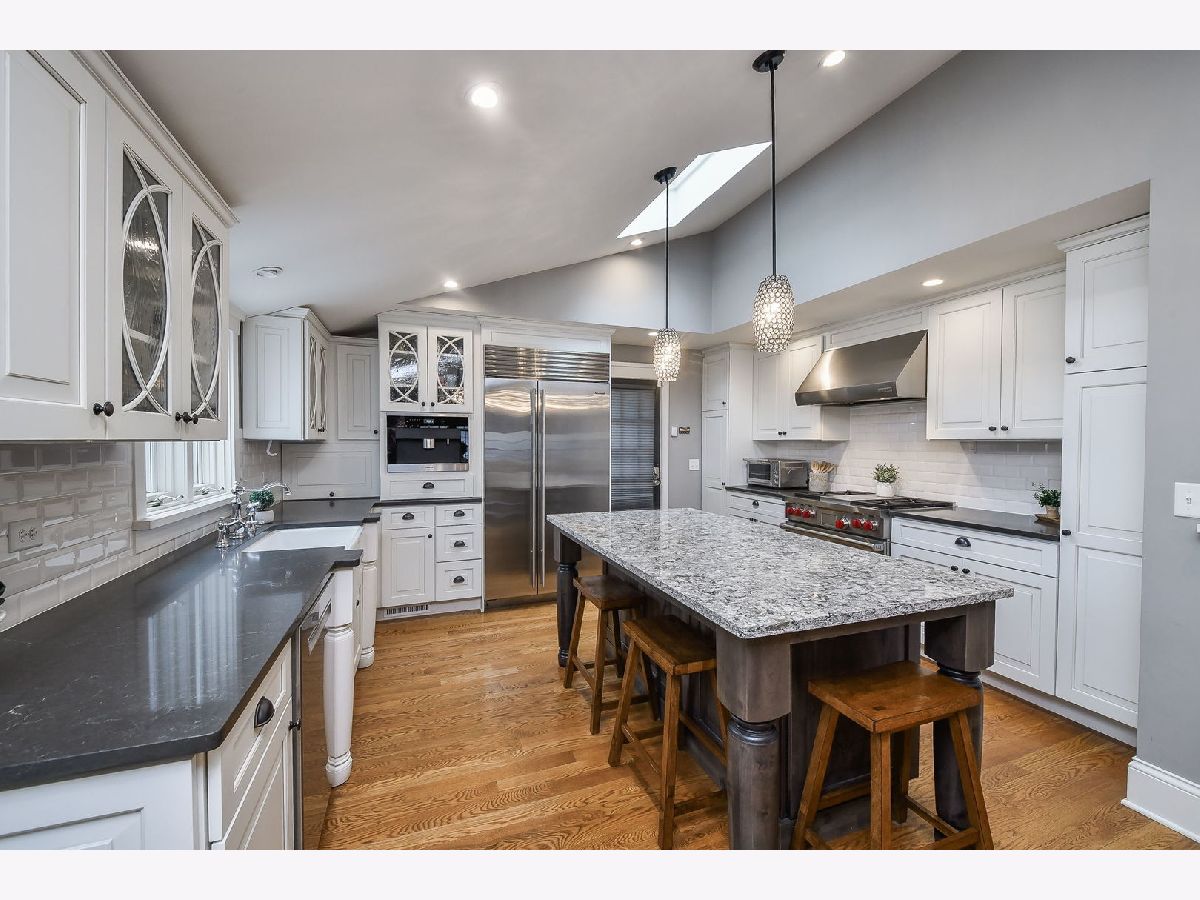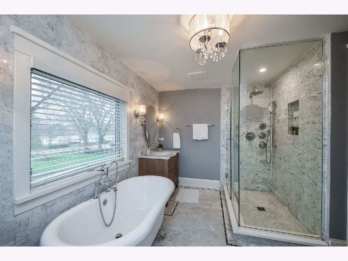 Step into a piece of history with this stunning 1843 home, completely reimagined to blend classic charm with modern sophistication. Perfectly situated in the heart of downtown Geneva (2 blocks from the famed Third Street offering a boutique shopping & dining experience), this exquisite 4-bedroom residence offers unparalleled access to unique restaurants, boutique shopping, and the vibrant energy of the city. The chef's dream kitchen is an entertainer's paradise, boasting top-of-the-line Wolf appliances, a Sub-Zero refrigerator, a Miele built-in coffee maker, a stunning skylight, and Cambria quartz countertops. The attached eating area, enhanced by a statement light fixture, provides the perfect spot to gather. Unwind in the three-season sunroom, wrapped in three walls of windows that frame the beautifully fenced backyard. The family room offers warmth and character with a fireplace, custom built-in bookshelves, and detailed wainscoting, while the welcoming foyer is equally refined with its own wainscoting. The main-floor primary suite is a true retreat, featuring gleaming hardwood floors, elegant crown molding, and custom blinds. Its spa-like ensuite boasts dual vanities and a luxurious dual-spray walk-in shower. A second bedroom on the main floor-ideal for a home office-also features hardwood floors and custom blinds. Upstairs, two additional bedrooms each have their own en-suite baths, including a one-of-a-kind bathroom featuring a cozy wood-burning fireplace.The partially finished basement provides additional space with finished walls and durable concrete flooring, offering endless possibilities. Nestled in a prime location, this charming home is just one block from the scenic Fox River, whether you're strolling the riverwalk, or simply enjoying the peaceful surroundings, nature is always within reach. Just one block in the other direction, you'll find the convenience of the Metra train station-perfect for commuters or weekend trips to the city. This unbeatable location combines natural beauty with urban accessibility, making it a rare and desirable find.