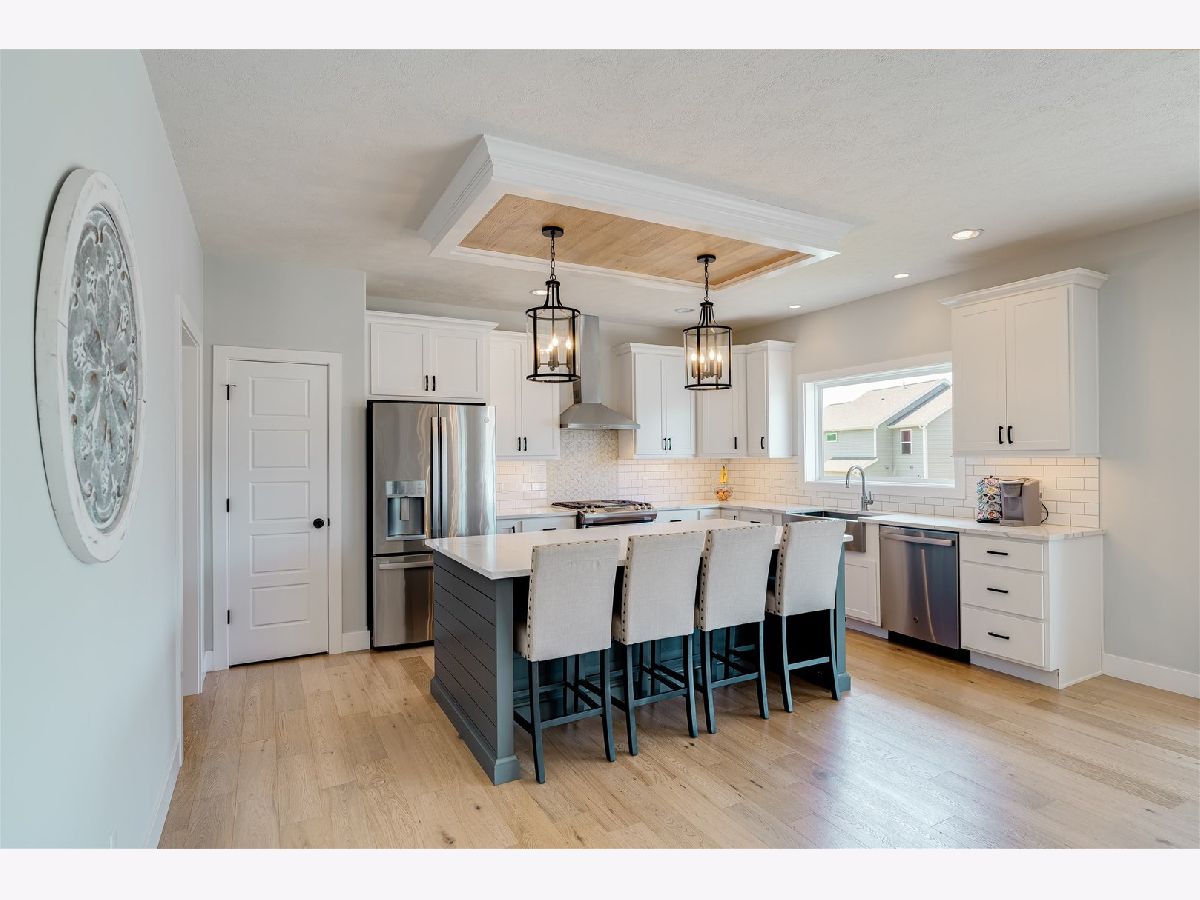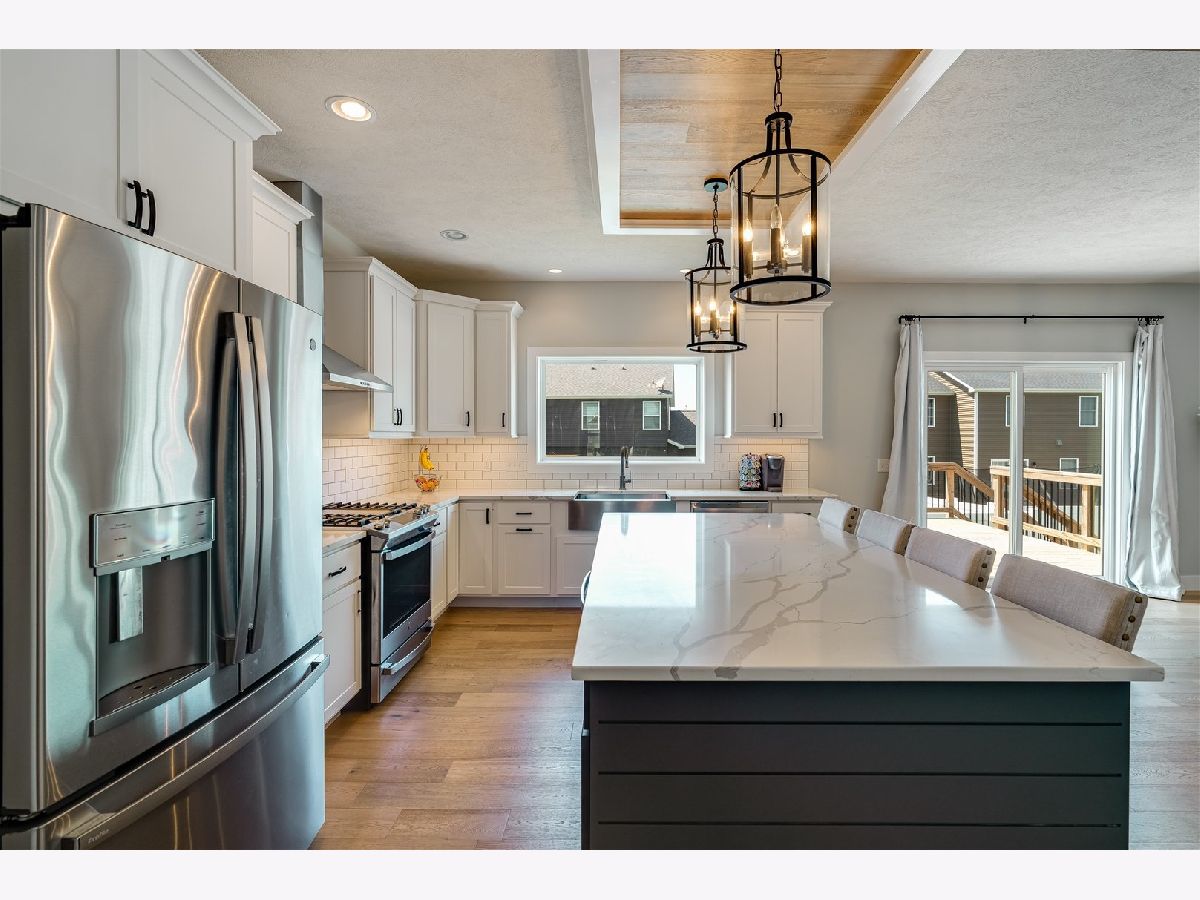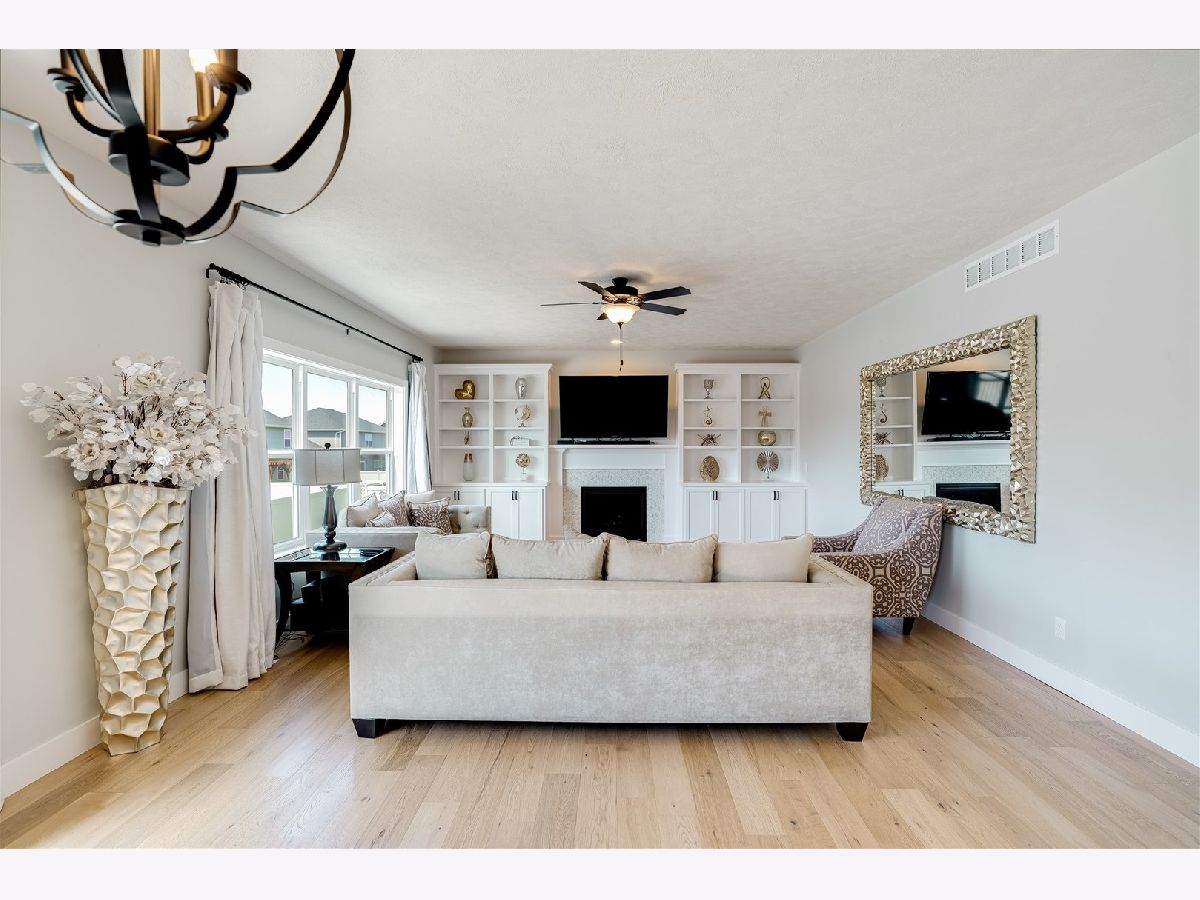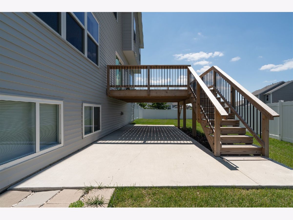 This home is a prize for any buyer! It features an open floor plan and beautiful white oak engineered hardwood floors throughout the main level! The kitchen shows off beautiful, crisp, clean, quartz counter tops and on trend white shaker cabinets. The island is huge and the base gives the perfect pop of color. Eat-in kitchen leads to the large deck that overlooks the huge backyard, fenced on all sides! Extra concrete poured beneath the deck for extra seating space. The 1st floor family room was upgraded with beautiful built-ins to frame the gas fireplace. The laundry room is conveniently located on the second floor with four bedrooms and two full bathrooms. Large primary suite and ensuite outfitted with timeless finishes, separate shower, stand alone soaking tub and walk-in closet. Storage matters, so each bathroom was upgraded with additional cabinet space. Guest room and full bathroom in the basement as well as large family room for entertaining. Home built in 2020, therefore mechanicals, appliances, roof etc, all in excellent condition. Do not miss your opportunity to be in a desirable neighborhood that is continuing to grow, grab this home while you can!