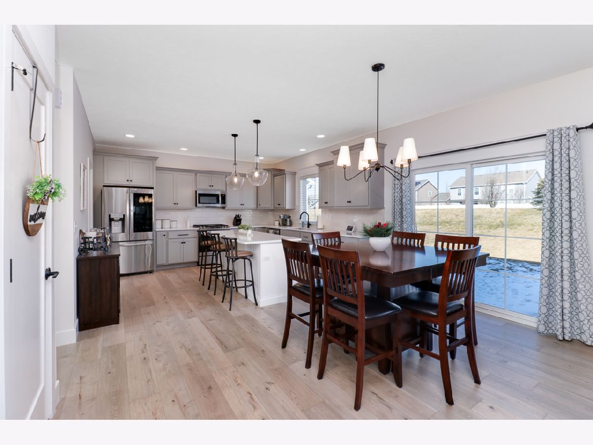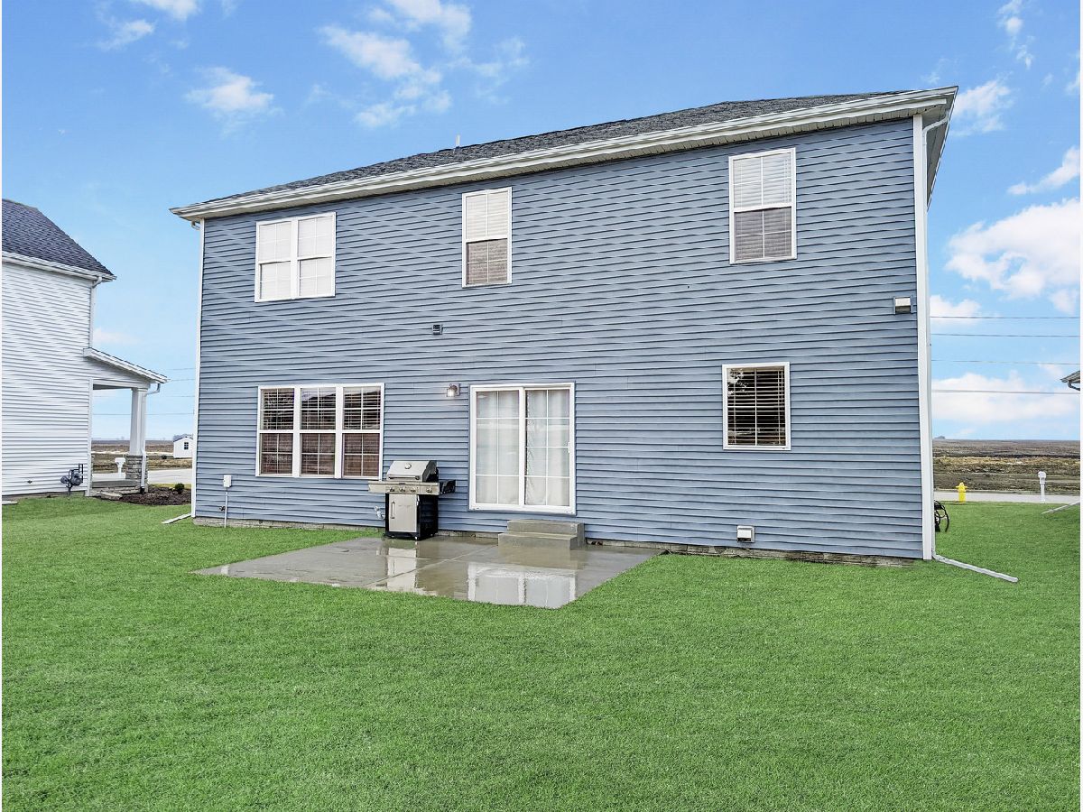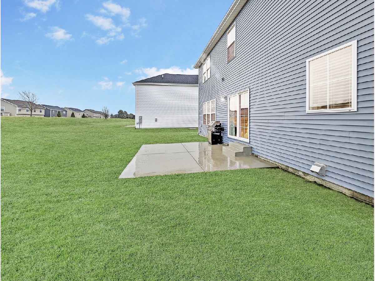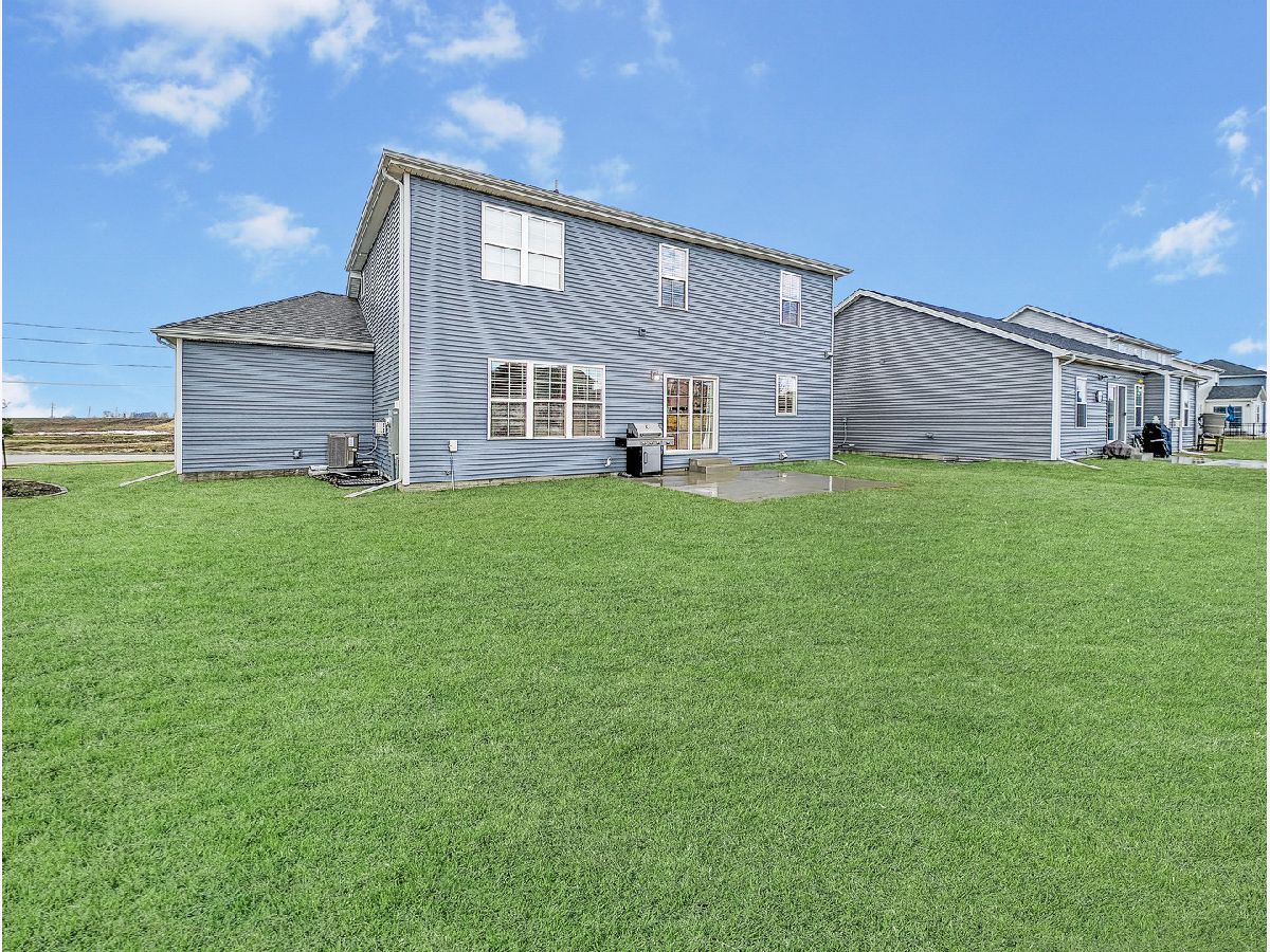 Exquisite home situated on a gorgeous lot that backs up to a berm with mature evergreens. This two-story home boasts four bedrooms and two and a half bathrooms. The kitchen showcases elegant grey cabinets complemented by white marbled quartz countertops and top-of-the-line stainless steel appliances. A spacious walk-in pantry adds convenience. Throughout the main level, you'll find wide plank laminate wood flooring and a custom-built mantel adorns the gas fireplace, enhancing the aesthetic appeal. Additionally, a versatile front flex room can serve as either an office or dining area...you can make it your own. The back hall features a convenient drop zone with a custom-built locker system. Right off the drop zone is the massive oversized 3 car garage. The 3rd bay of the garage measures 24 feet deep AND features a new 8 foot overhead door. The second floor boasts 4 bedrooms 2 full baths and a laundry room. The primary bedroom has a detailed ceiling feature, great natural light, a walk-in closet and an expansive primary bathroom with a dual sink vanity and custom tiled shower. The basement offers a rough-in for a future bathroom, with potential for the addition of a recreational room and bedroom to further enhance the living space. Please call for your appointment today!