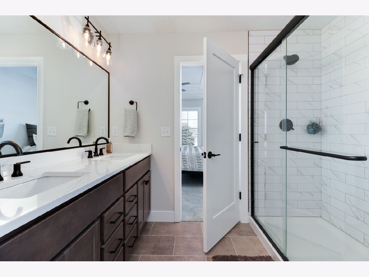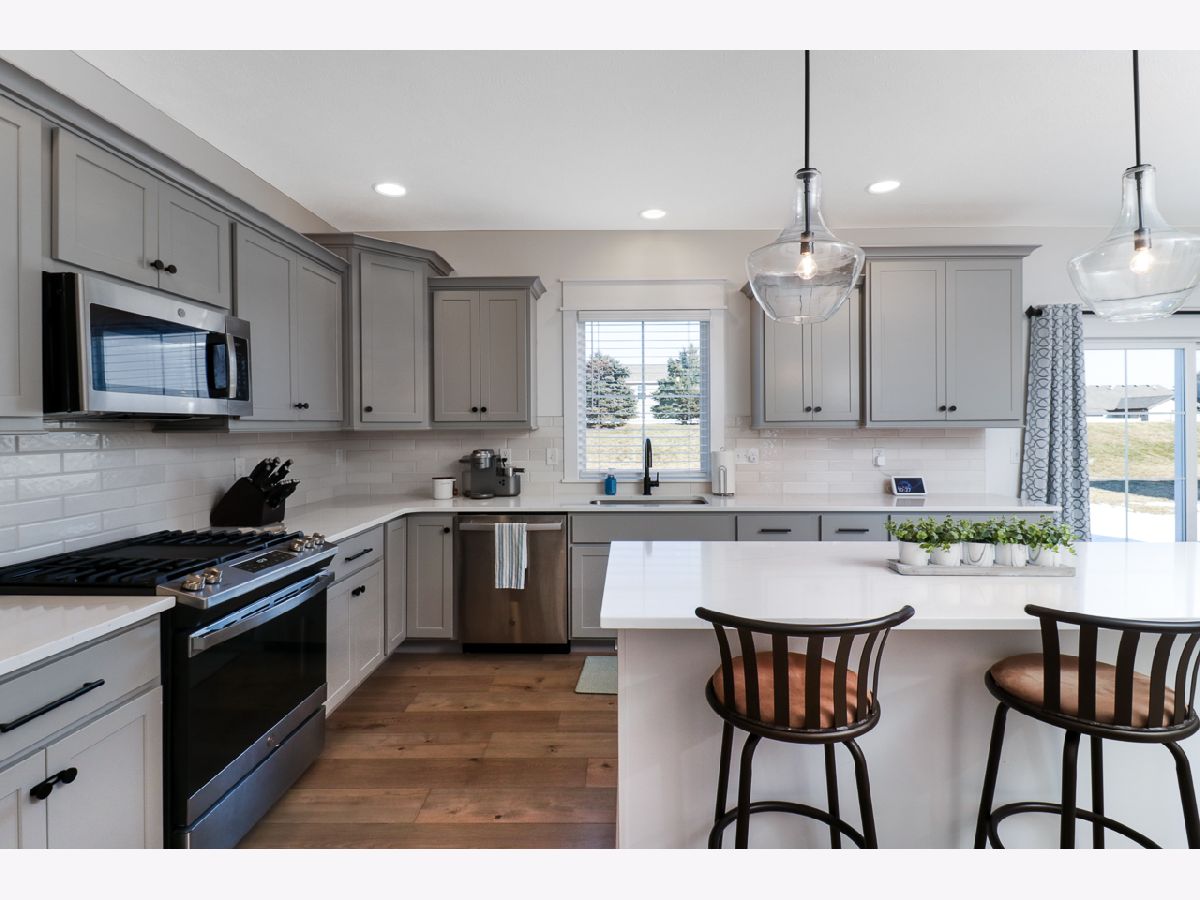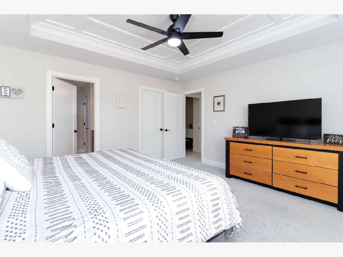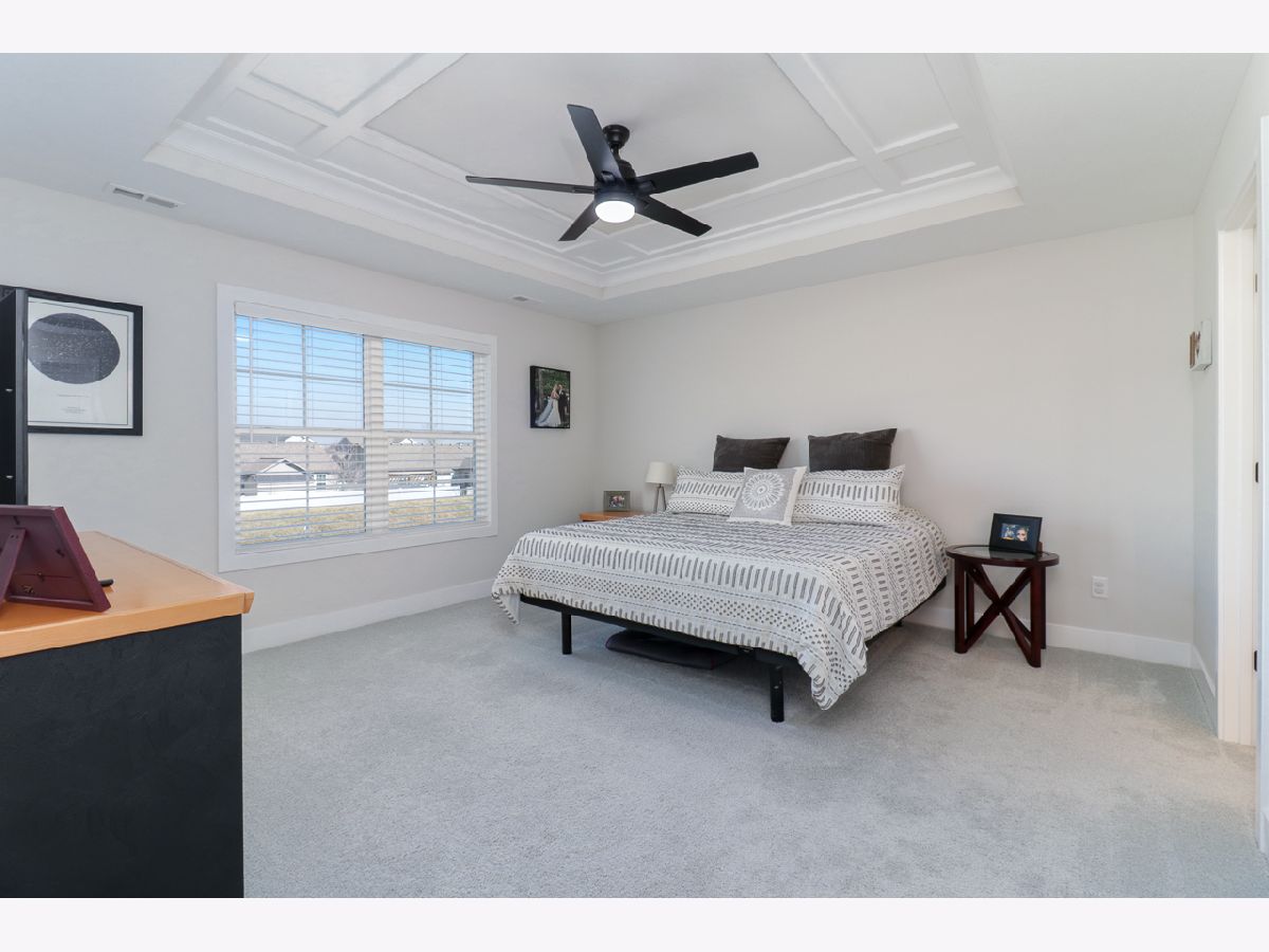 Exquisite home situated on a gorgeous lot that backs up to a berm with mature evergreens. This two-story home boasts four bedrooms and two and a half bathrooms. The kitchen showcases elegant grey cabinets complemented by white marbled quartz countertops and top-of-the-line stainless steel appliances. A spacious walk-in pantry adds convenience. Throughout the main level, you'll find wide plank laminate wood flooring and a custom-built mantel adorns the gas fireplace, enhancing the aesthetic appeal. Additionally, a versatile front flex room can serve as either an office or dining area...you can make it your own. The back hall features a convenient drop zone with a custom-built locker system. Right off the drop zone is the massive oversized 3 car garage. The 3rd bay of the garage measures 24 feet deep AND features a new 8 foot overhead door. The second floor boasts 4 bedrooms 2 full baths and a laundry room. The primary bedroom has a detailed ceiling feature, great natural light, a walk-in closet and an expansive primary bathroom with a dual sink vanity and custom tiled shower. The basement offers a rough-in for a future bathroom, with potential for the addition of a recreational room and bedroom to further enhance the living space. Please call for your appointment today!