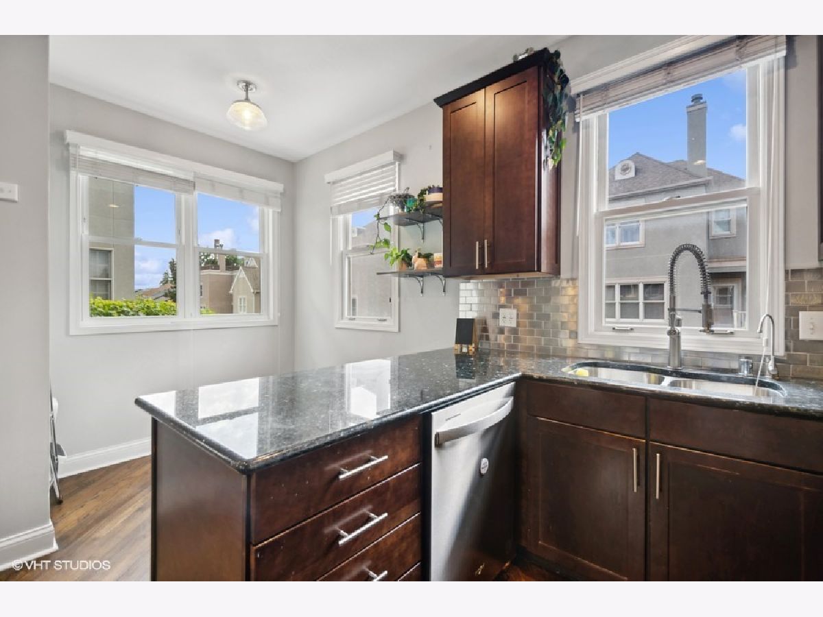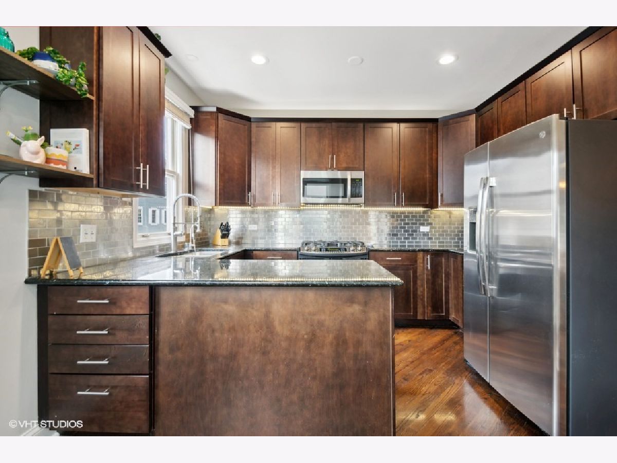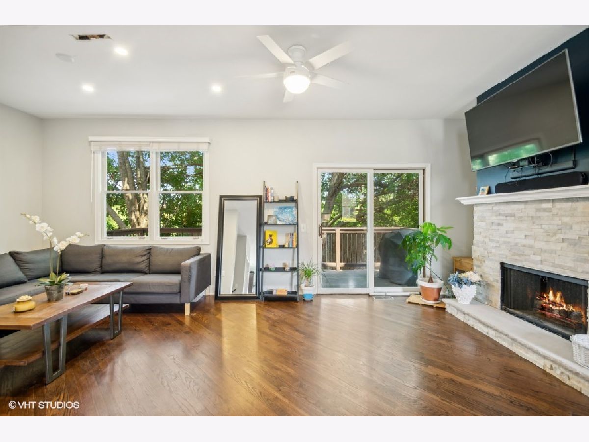 Discover Chicago's Best-Kept Secret: Picardy Place! Ideally nestled between Lincoln Park, Lakeview, and Roscoe Village. This renovated property features a flexible floor plan with three levels of living, making it conducive to easy living. The large main floor living room offers a granite and stainless eat-in kitchen with 42-inch cabinets and a custom backsplash. Open living and dining spaces feature hardwood floors, a stone fireplace, and sliding doors that lead to the walk-out balcony. The functional powder room rounds out this impressive floor. Upstairs, you'll find two well-appointed en-suite bedrooms with spa-like updated baths, large closets, and a convenient laundry room. The versatile lower level is perfect as a third bedroom or family room, complemented by a fully renovated bathroom and additional outdoor space. Attached garage and great light add to this special home. Situated in the perfect area to enjoy the best of many Chicago neighborhoods.
