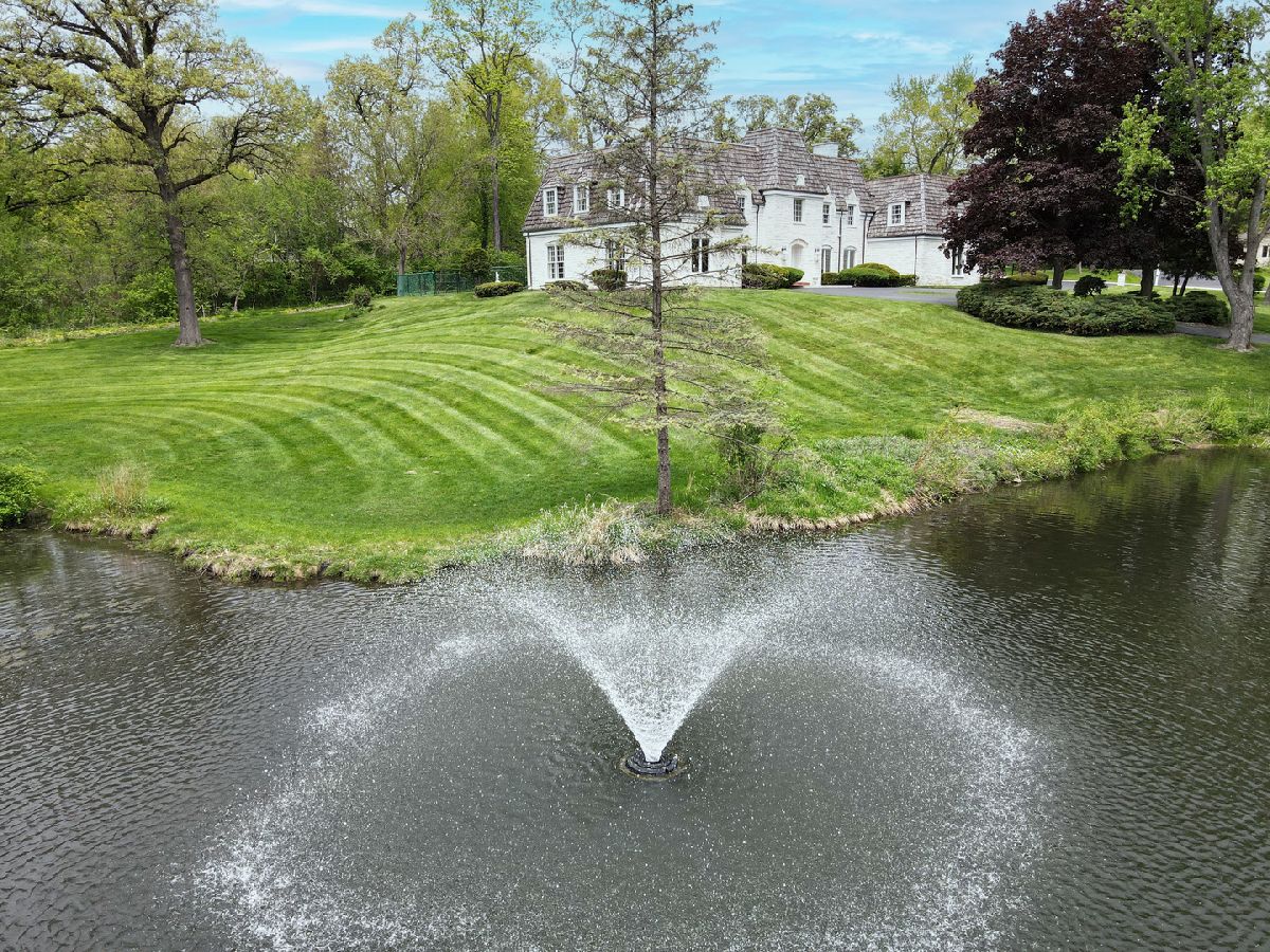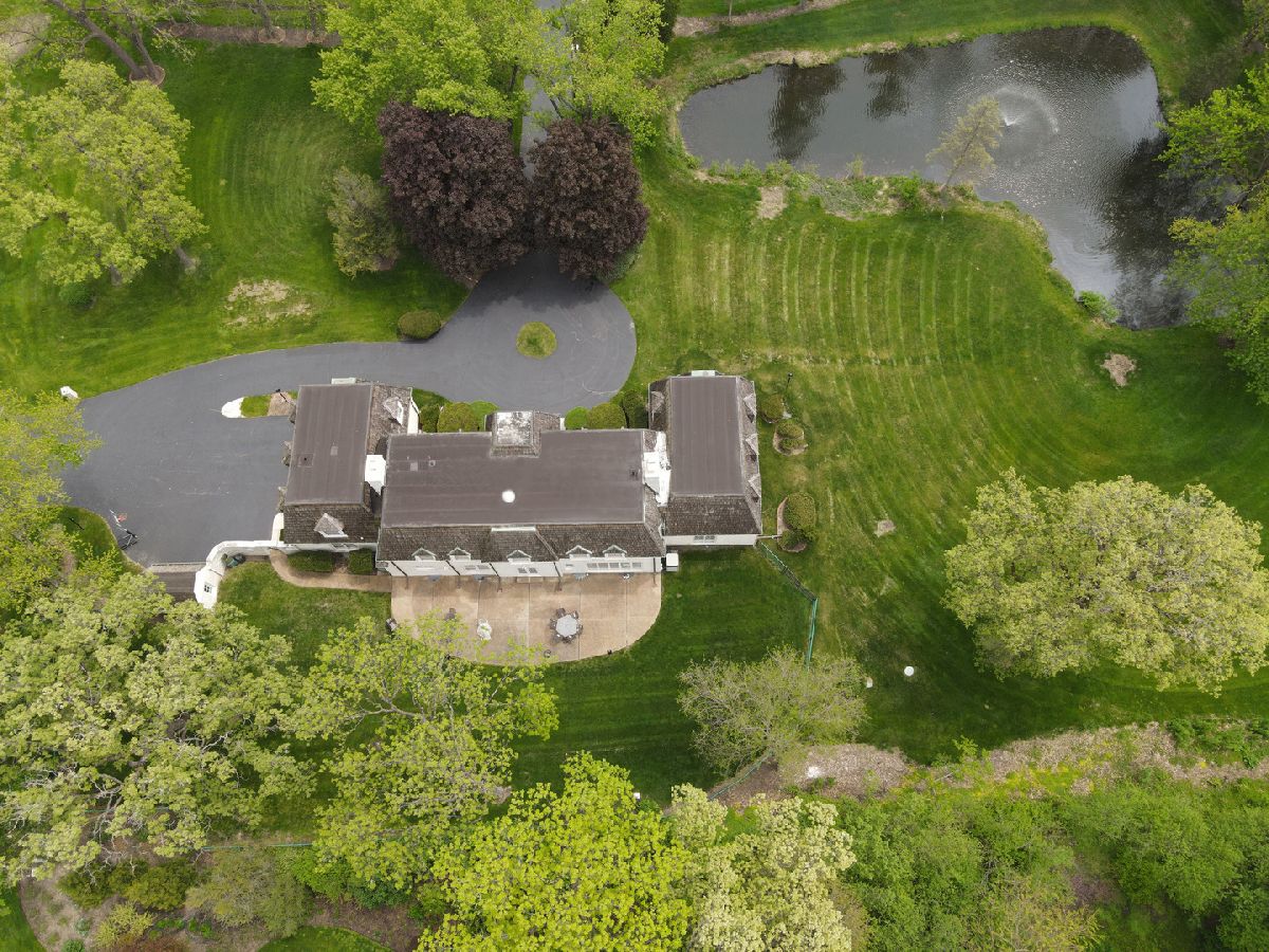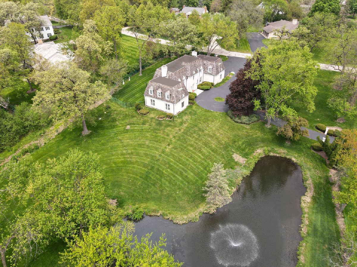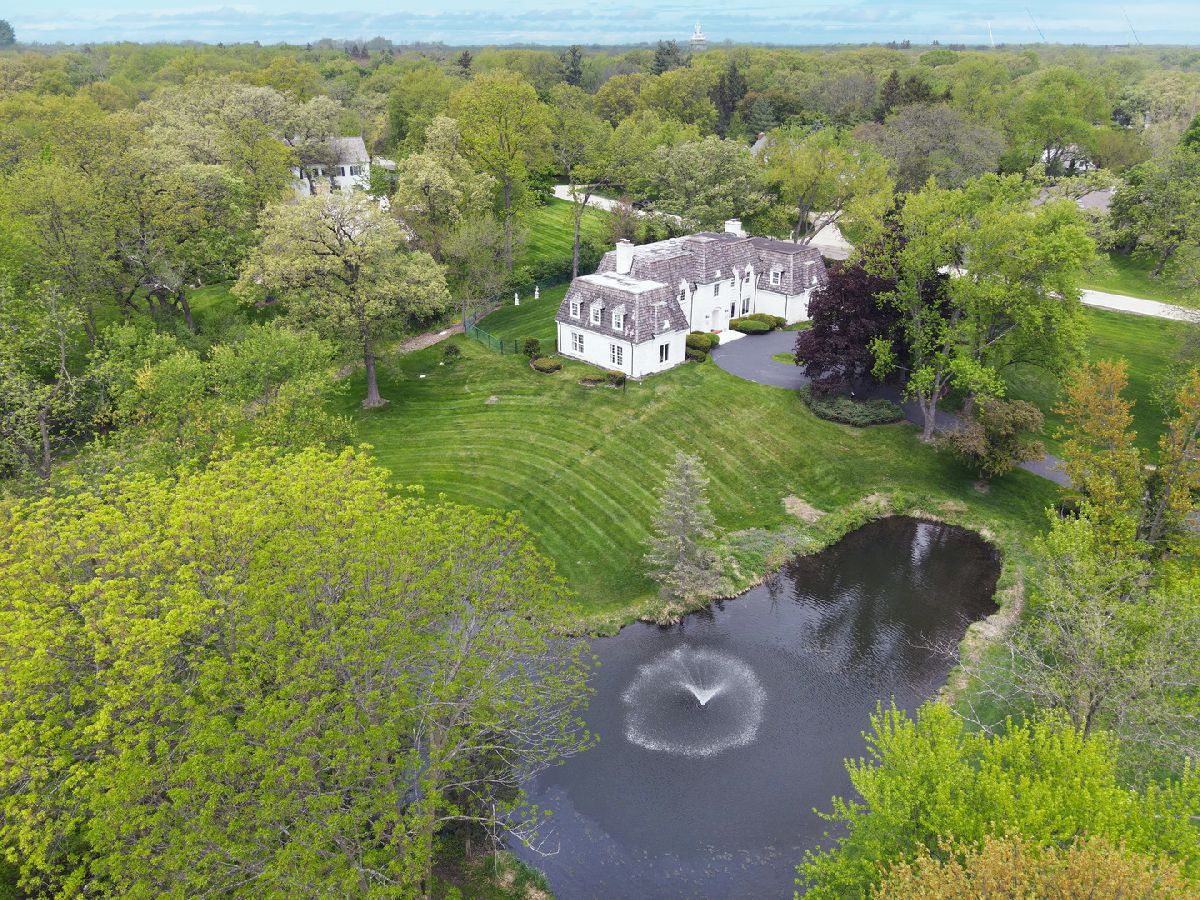 French country living in Inverness! A circular drive leads up to this gracious marble estate built as a French chateau in desirable McIntosh. Proudly set on 2.1 acres, this 5-bedroom, 6000 sq. ft. home delights with hilltop views of a private pond accentuated by a gushing water fountain, Salt Creek, private nature path, and meticulously maintained grounds. Its unique, priceless exterior is made of Danby white marble easily competing with the style and grace of the Taj Mahal while being honored with awards for its incomparable and timeless beauty. As you enter the home, you are immediately impressed by the elegant, 2-story foyer with custom Carrara marble floors and a winding wrought iron baluster staircase that directs the eye upward to a beautiful crystal chandelier. Natural light pours in from all directions filling the home with extraordinary beauty and grace. From the foyer, a broad, gallery wall hallway with marble floors, tall windows, and custom millwork leads to a large, formal living room with a bronze and marble fireplace; hardwood floors; and 9-ft, floor-to-ceiling windows on all 3 sides overlooking the pond and side yard. French doors from the hallway also open to a paneled, coffered ceiling den/family room complete with a fireplace, wet bar, built-in bookcases, and windows lining the back of the room. On the foyer's opposite side is a stunning dining room with floor-to-ceiling windows, crystal chandelier, wainscotting, and access to a kitchen with solid wood cabinetry. Adjacent to one side of the kitchen is a breakfast room with tranquil views of the patio and backyard. On the opposite side is a large, multipurpose room with closets, 2nd powder room, back staircase, access to the garage, and option for a first-floor laundry. The second-floor features hardwood floors throughout, 5 generous bedrooms, and 4.5 bathrooms. The master suite is ideally located at one end of the home with views of the pond and includes a large dressing room lined with closets and two bathrooms. One bathroom also offers access to a second bedroom that would be ideal as an extension of the master suite, nursery, or office. On the opposite side of the house are the remaining 3 bedrooms, with 2 out of 3 being ensuite. The fifth bedroom features a powder room and washer/dryer connections, offering a second-floor laundry room option. Ideal for casual gatherings, the handsome lower level is fully finished in varnished pine paneling and Roman brick and features a recreation room with custom kitchenette and marble fireplace; exercise/game room; wine closet; 6th possible bedroom; 1.5 bathrooms. 2.5 car garage! Scenic and private fenced yard with expansive patio! Top-rated William Fremd school district! Near Metra, shopping, entertainment, restaurants, highway, and O'Hare!