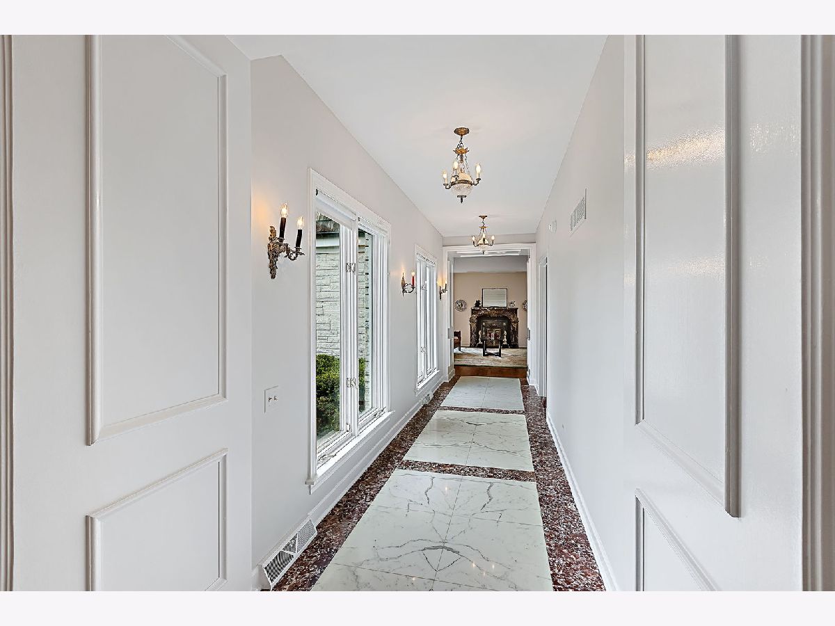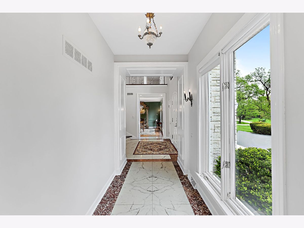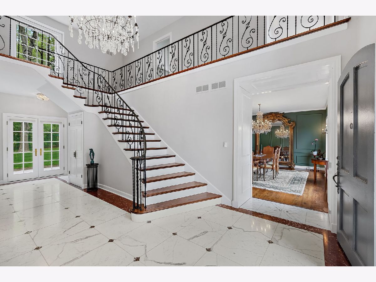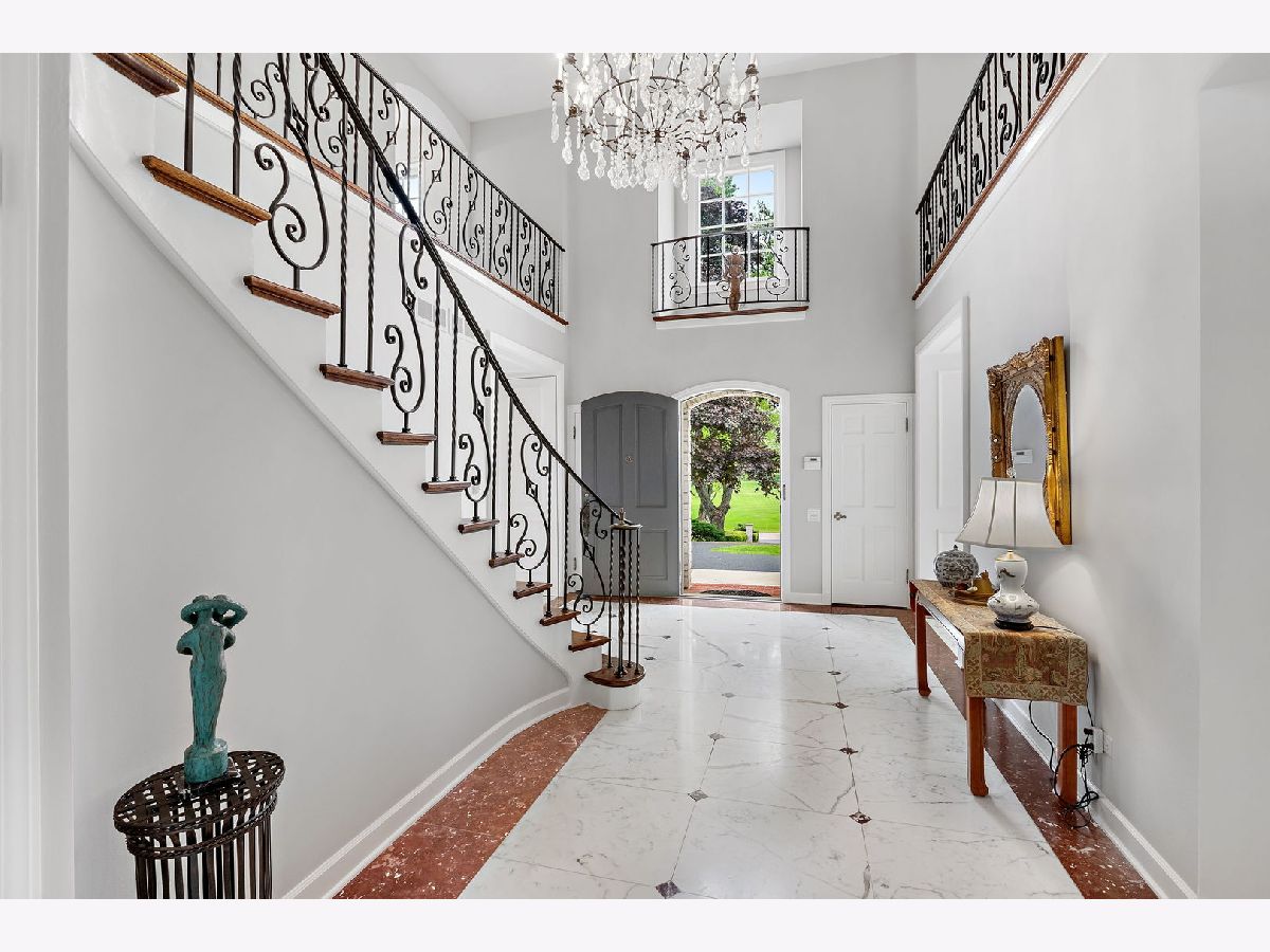 French country living in Inverness! A circular drive leads up to this gracious marble estate built as a French chateau in desirable McIntosh. Proudly set on 2.1 acres, this 5-bedroom, 6000 sq. ft. home delights with hilltop views of a private pond accentuated by a gushing water fountain, Salt Creek, private nature path, and meticulously maintained grounds. Its unique, priceless exterior is made of Danby white marble easily competing with the style and grace of the Taj Mahal while being honored with awards for its incomparable and timeless beauty. As you enter the home, you are immediately impressed by the elegant, 2-story foyer with custom Carrara marble floors and a winding wrought iron baluster staircase that directs the eye upward to a beautiful crystal chandelier. Natural light pours in from all directions filling the home with extraordinary beauty and grace. From the foyer, a broad, gallery wall hallway with marble floors, tall windows, and custom millwork leads to a large, formal living room with a bronze and marble fireplace; hardwood floors; and 9-ft, floor-to-ceiling windows on all 3 sides overlooking the pond and side yard. French doors from the hallway also open to a paneled, coffered ceiling den/family room complete with a fireplace, wet bar, built-in bookcases, and windows lining the back of the room. On the foyer's opposite side is a stunning dining room with floor-to-ceiling windows, crystal chandelier, wainscotting, and access to a kitchen with solid wood cabinetry. Adjacent to one side of the kitchen is a breakfast room with tranquil views of the patio and backyard. On the opposite side is a large, multipurpose room with closets, 2nd powder room, back staircase, access to the garage, and option for a first-floor laundry. The second-floor features hardwood floors throughout, 5 generous bedrooms, and 4.5 bathrooms. The master suite is ideally located at one end of the home with views of the pond and includes a large dressing room lined with closets and two bathrooms. One bathroom also offers access to a second bedroom that would be ideal as an extension of the master suite, nursery, or office. On the opposite side of the house are the remaining 3 bedrooms, with 2 out of 3 being ensuite. The fifth bedroom features a powder room and washer/dryer connections, offering a second-floor laundry room option. Ideal for casual gatherings, the handsome lower level is fully finished in varnished pine paneling and Roman brick and features a recreation room with custom kitchenette and marble fireplace; exercise/game room; wine closet; 6th possible bedroom; 1.5 bathrooms. 2.5 car garage! Scenic and private fenced yard with expansive patio! Top-rated William Fremd school district! Near Metra, shopping, entertainment, restaurants, highway, and O'Hare!