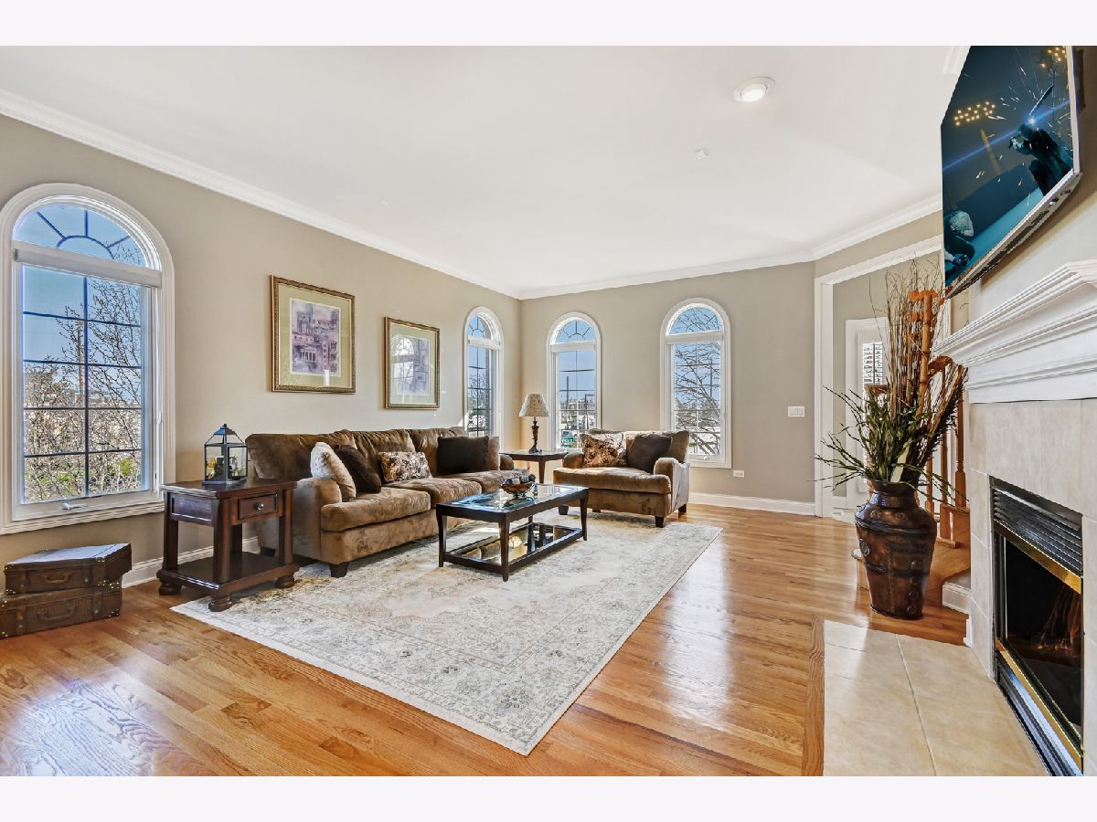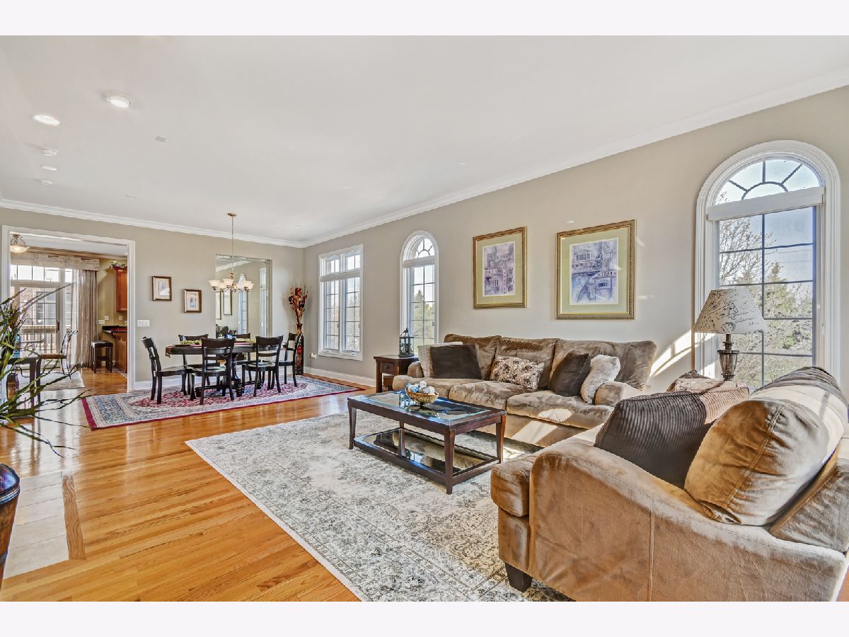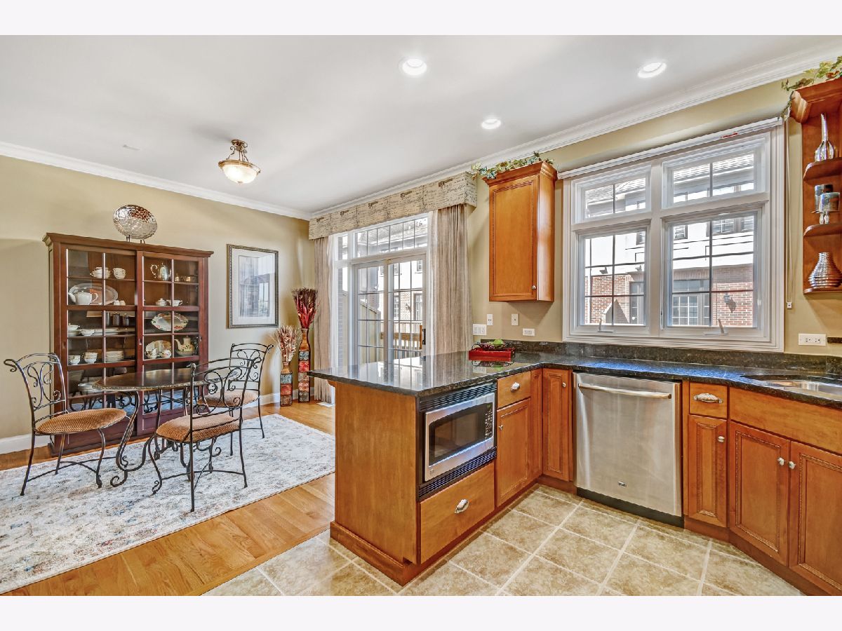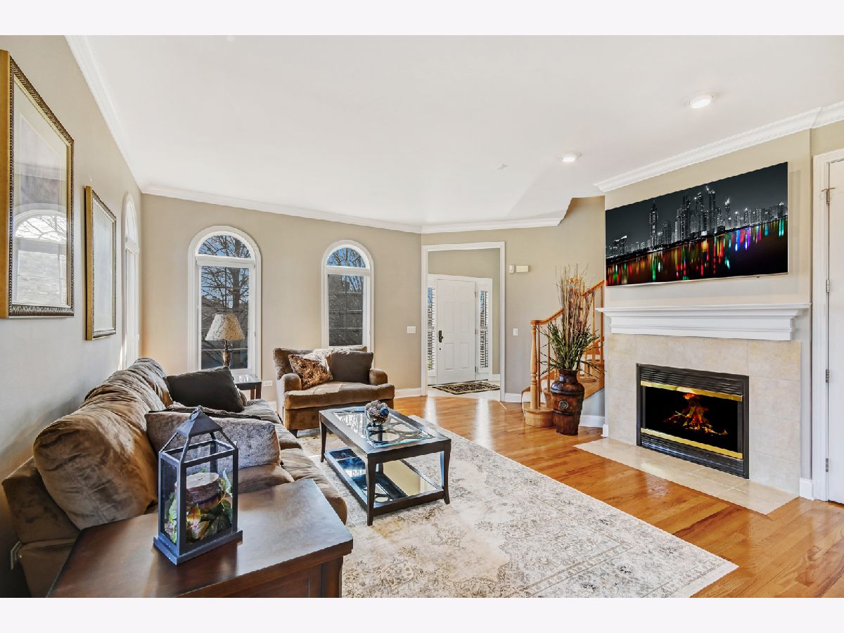 GREAT LOCATION! Luxury living in this immaculate light & bright end-unit. Neutral decor throughout. 9' ceilings on 1st floor, crown molding, an abundance of storage. Living and dining with gas fireplace, hardwood flooring & crown molding. The gourmet kitchen has 42" Maple cabinets, granite, all SS appliances, planning desk, ceramic tile floors and breakfast bar. Hardwood floors in the spacious breakfast area with sliding door to the extended balcony. Master suite has volume ceiling, sitting area, dual closets & luxury on-suite spa bath. Master bath with bubble jets, separate shower, vanity & ceramic tile floor. 2 additional bedrooms, one is used as a den/office. 2nd-floor laundry. Finished lower level with spacious family room, Newer carpeting and full bath with ceramic tile shower/floor. Garage with extra storage. Gorgeous front courtyard patio for relaxing. Newer A/C and water heater 2019. Minutes to Metra station and quick access to I-88. Close to shopping, recreation, restaurants. Don't miss this beautiful townhome!