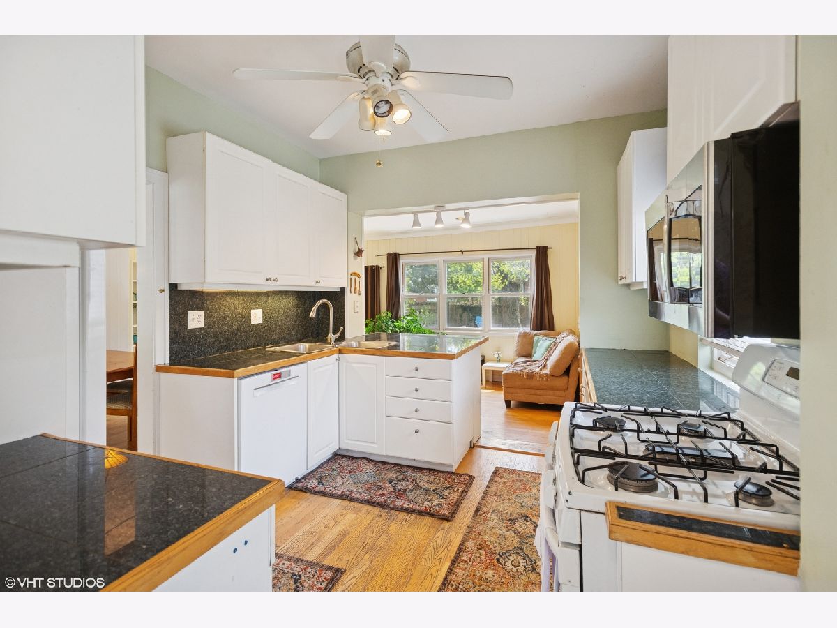 Welcome to Timeless Charm & Endless Potential in the Heart of Evanston! Tucked away on a picturesque, tree-lined street in one of Evanston's most sought-after neighborhoods, this distinctive brick Georgian stands out from the crowd with its vintage charm and unique personality, far from the cookie-cutter homes you'll find nearby. Whether you're looking to move in and enjoy the home as-is or unleash its full potential with updates, finishing touches, or upgrades inside and out. Step inside and be greeted by sun-drenched spaces, large windows, and soaring ceilings that create a warm, open feel throughout the main level. Hardwood floors flow through the expansive living and dining areas, while the sizable, open-concept floor plan is perfect for both entertaining and everyday living. The family room is bright and inviting and opens directly to the backyard, seamlessly blending indoor and outdoor living. The kitchen features a breakfast bar and overlooks the family space, offering a functional layout ready for your personal touch. Upstairs, you'll find more vintage charm. Featuring three bedrooms and a full bath. The spacious primary suite features a walk-in closet and charming double French doors that lead to a rare and expansive, second-floor rooftop, just waiting to be transformed into a stunning outdoor lounge or garden retreat. With a roughed-in full bathroom in the basement, there's excellent potential to add value and square footage. The large, fully fenced backyard is a hidden gem, enhanced by brand-new Japanese maples and offering ample space for gardening, play, or entertaining. The attached garage is a truly rare find. It adds everyday convenience, while generous storage throughout the home, and including a large utility room, makes organization a breeze. Downstairs, the partially finished basement includes a recreation room, ideal for a playroom, home office, or fitness area. A tucked-away half bath on the main level adds extra functionality without sacrificing style. This is a rare opportunity to own a truly unique and character-filled property in a prime location. Minutes from top-rated schools, beloved local shops and restaurants, public transit, the lakefront, James Park, and the Robert Crown Center. This is where vintage charm meets modern lifestyle. Don't miss your chance to create your dream home in the heart of Evanston!