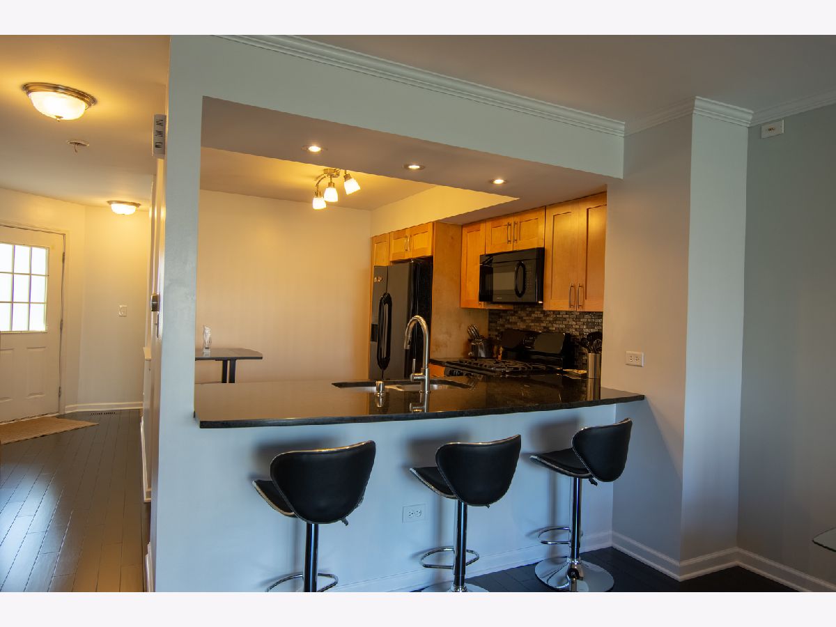 Beautifully updated Townhome style unit offers spacious & open floorplan. This home includes updated bamboo flooring thoughout the main level. The eat-in kitchen has been completely remodeled (2017) with new cabinets, counters & appliances. The oversized counter provides ample space for the breakfast bar. A tastefully done dry-bar has been added to the spacious Living Room area which leads directly to the patio outside. Recessed lighting on the first floor and ceiling fans w/lighting in both bedrooms. Both full bathrooms offer many updates including new flooring, fixtures, new vanity in the master and new tile work in the 2nd bath shower. The entire home has been painted within the last 2 years. 2nd floor laundry. Quiet & convenient location near shopping, expressways, commuter train & restaurants.