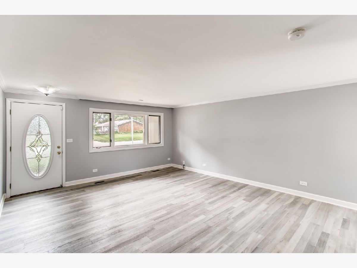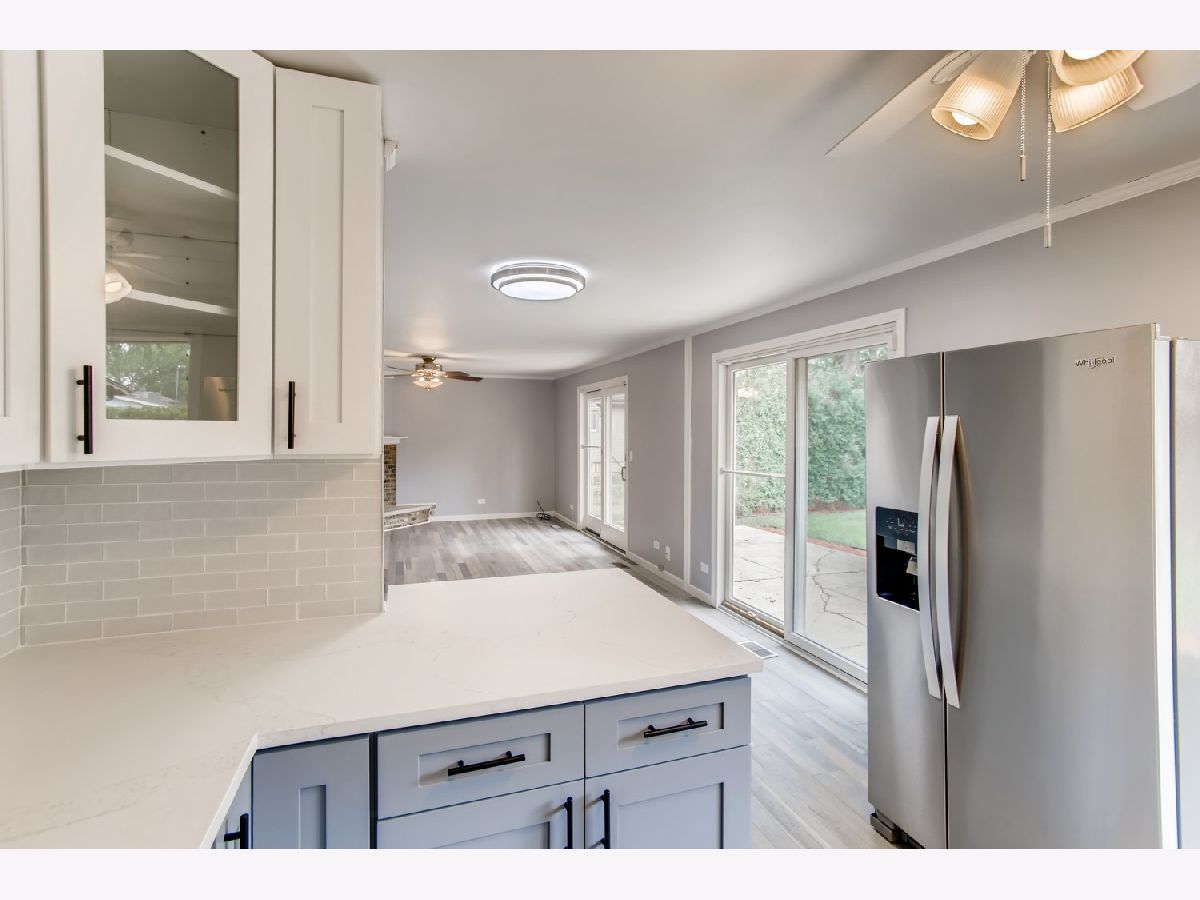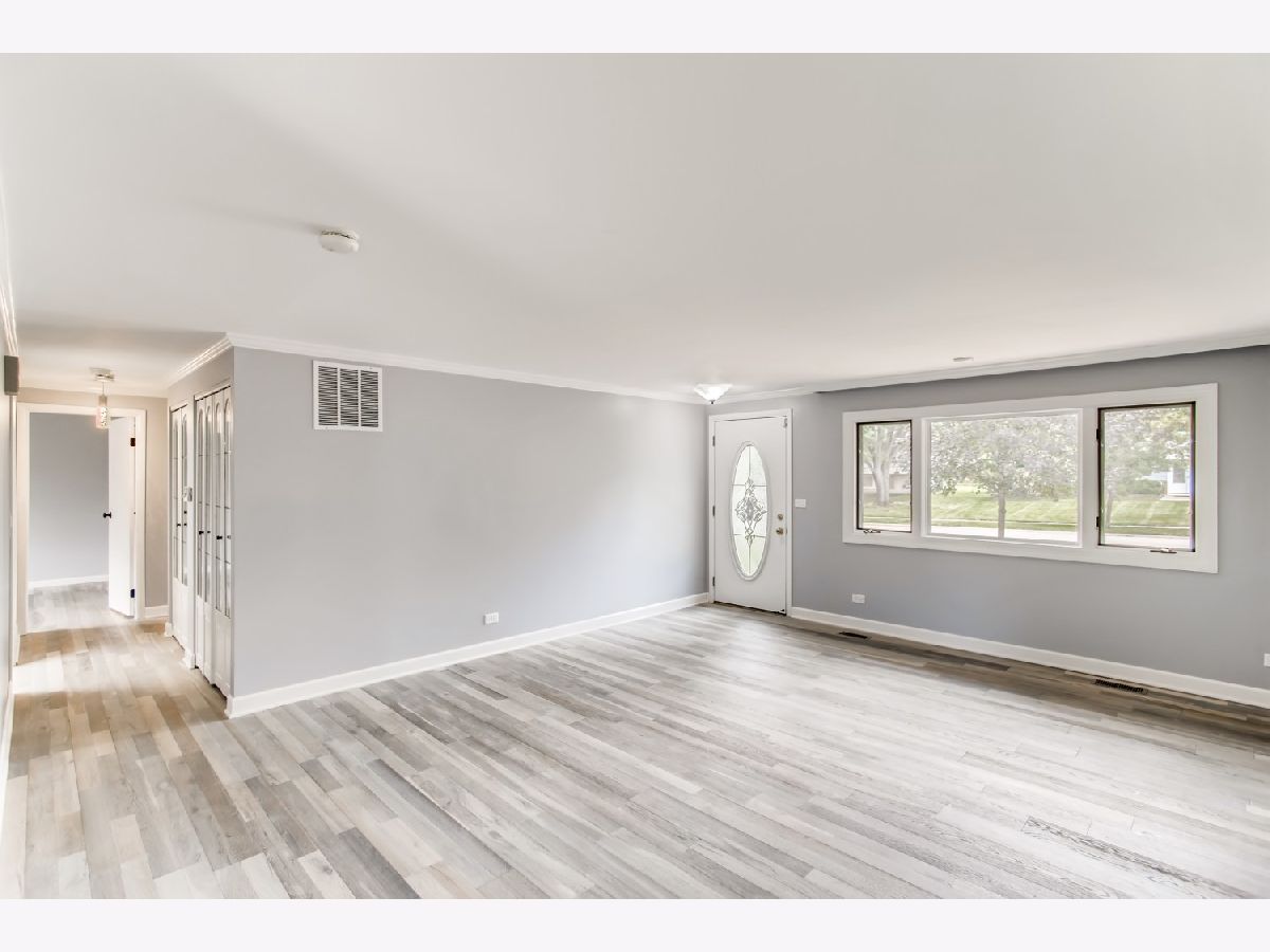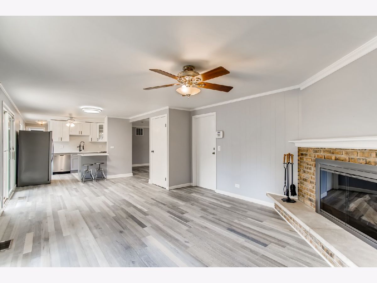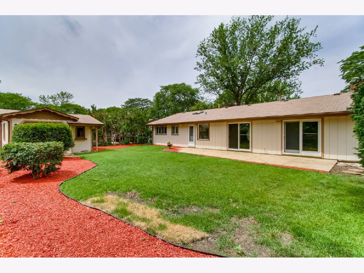 Move right in to this spacious 3 bedroom, 1 1/2 bath ranch home with many new updates throughout. All new natural wood overlay engineered hardwood floor throughout many of the freshly painted rooms. Enjoy relaxing in the spacious living room or retreat to the large family room with a wood burning fireplace. All newer SS appliances in the kitchen - Maytag dishwasher, Whirlpool side by side refrigerator, and an LG 5 gas burner stove with overhead microwave. New quartz countertops, tiled backsplash and spacious new cabinets. Double SS kitchen sink with a disposal. Landscaping has been updated. Insulated 2 car garage with a heater (sold AS-IS). Enter the yard through one of 2 sliding patio doors to the fenced in yard. In a corner of the yard you find a large roomy shed with remote overhead door access. Both bathrooms have been completely redone. Included with the property is a working lawn sprinkler system (sold AS-IS).The home has newer windows as well. A security system with sensors and cameras is in place to be utilized. Many schools and parks, even a park district water park, are within walking distance, as well as, shopping and entertainments options near by. East access to the Interstate with in minutes and the Metra stop is easy to get to - take Springinsguth south straight to the station. Welcome to your new home.