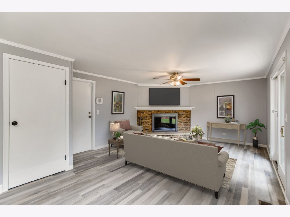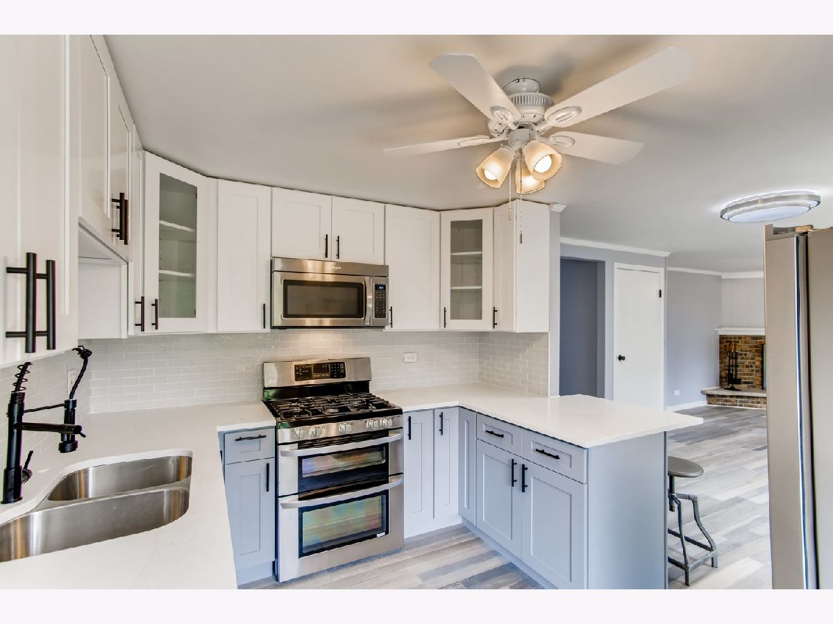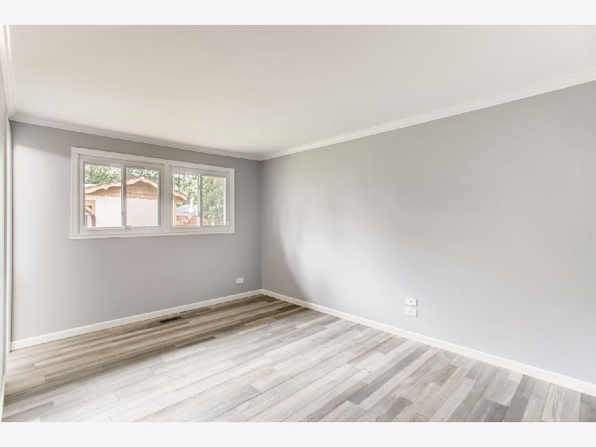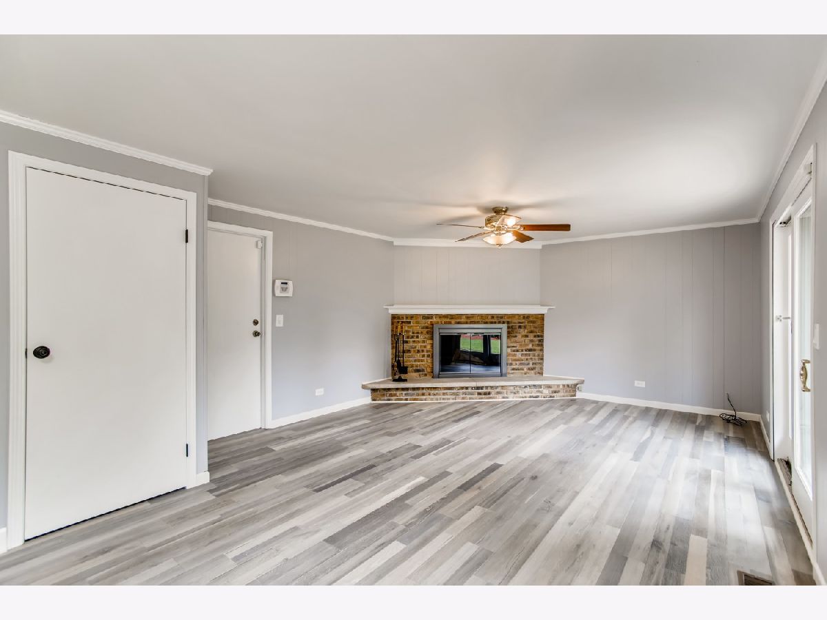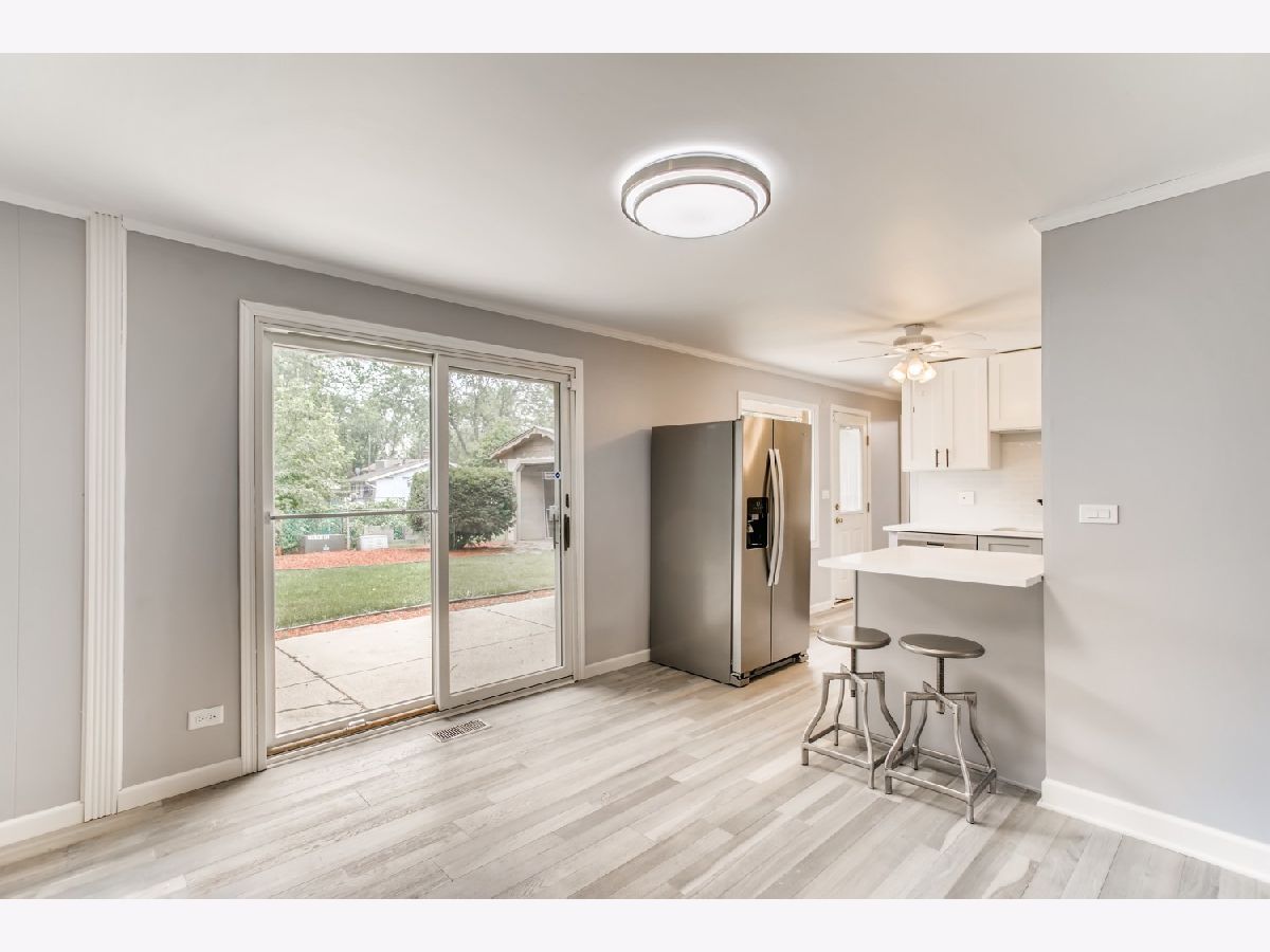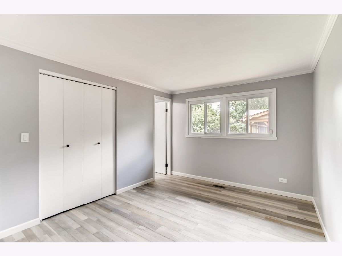 Move right in to this spacious 3 bedroom, 1 1/2 bath ranch home with many new updates throughout. All new natural wood overlay engineered hardwood floor throughout many of the freshly painted rooms. Enjoy relaxing in the spacious living room or retreat to the large family room with a wood burning fireplace. All newer SS appliances in the kitchen - Maytag dishwasher, Whirlpool side by side refrigerator, and an LG 5 gas burner stove with overhead microwave. New quartz countertops, tiled backsplash and spacious new cabinets. Double SS kitchen sink with a disposal. Landscaping has been updated. Insulated 2 car garage with a heater (sold AS-IS). Enter the yard through one of 2 sliding patio doors to the fenced in yard. In a corner of the yard you find a large roomy shed with remote overhead door access. Both bathrooms have been completely redone. Included with the property is a working lawn sprinkler system (sold AS-IS).The home has newer windows as well. A security system with sensors and cameras is in place to be utilized. Many schools and parks, even a park district water park, are within walking distance, as well as, shopping and entertainments options near by. East access to the Interstate with in minutes and the Metra stop is easy to get to - take Springinsguth south straight to the station. Welcome to your new home.