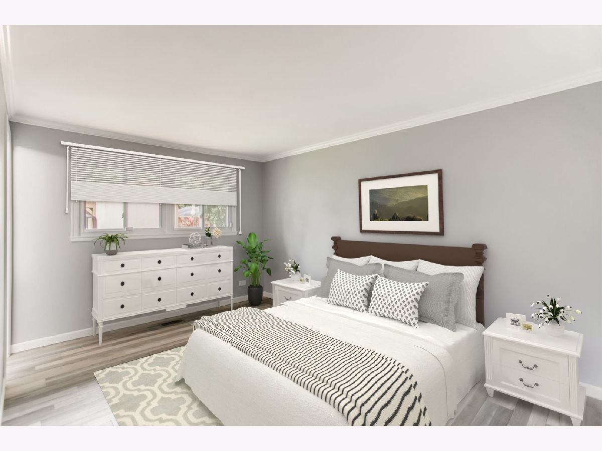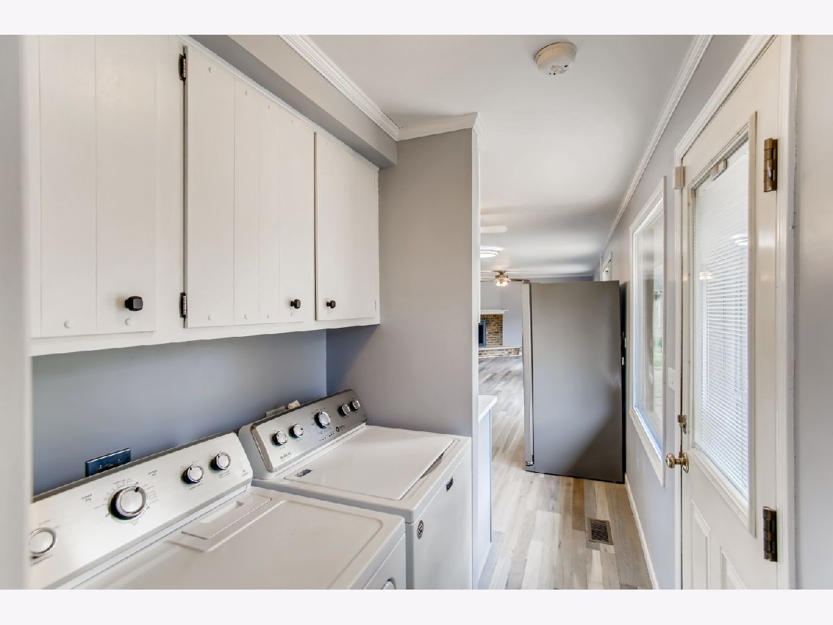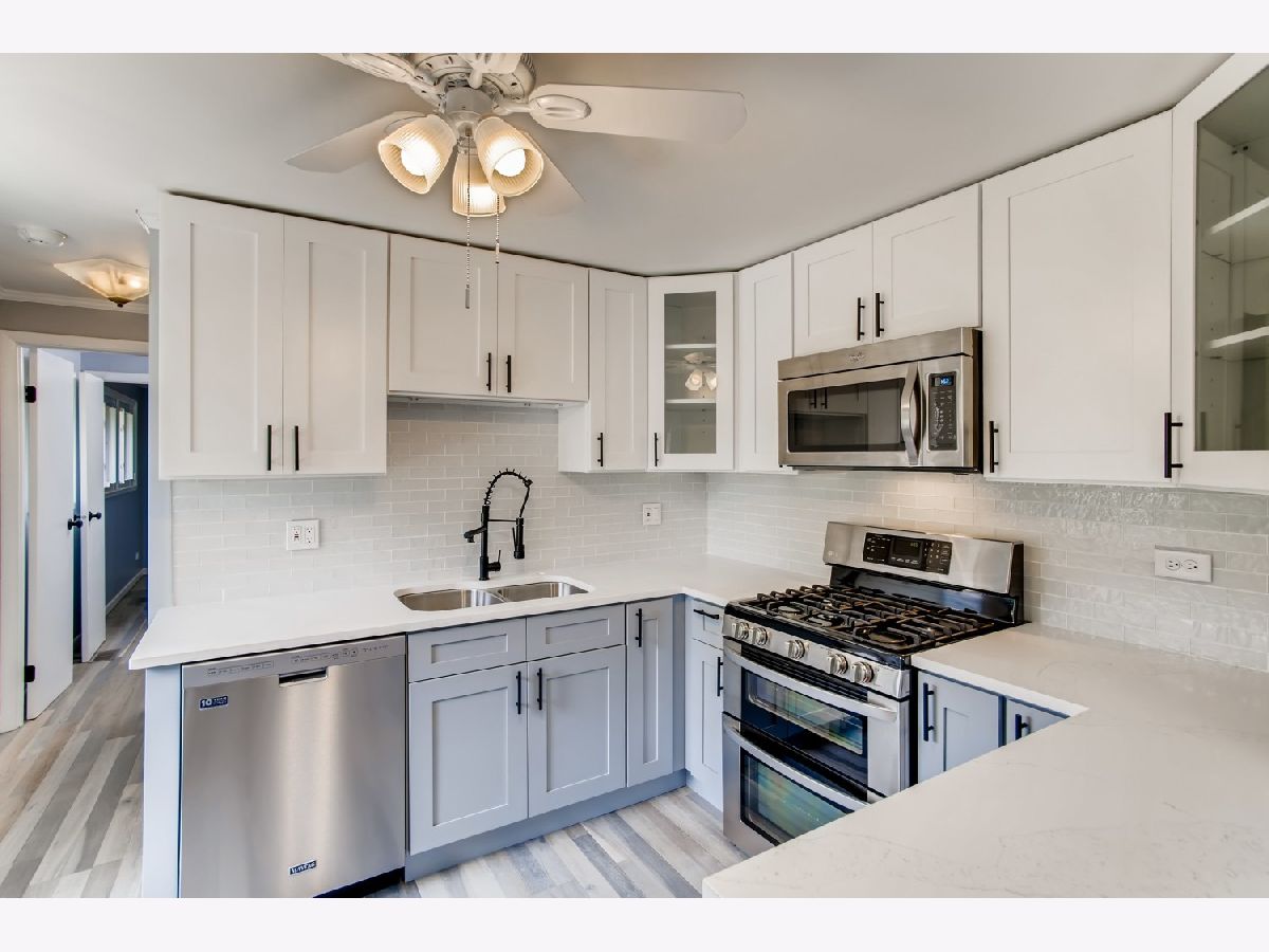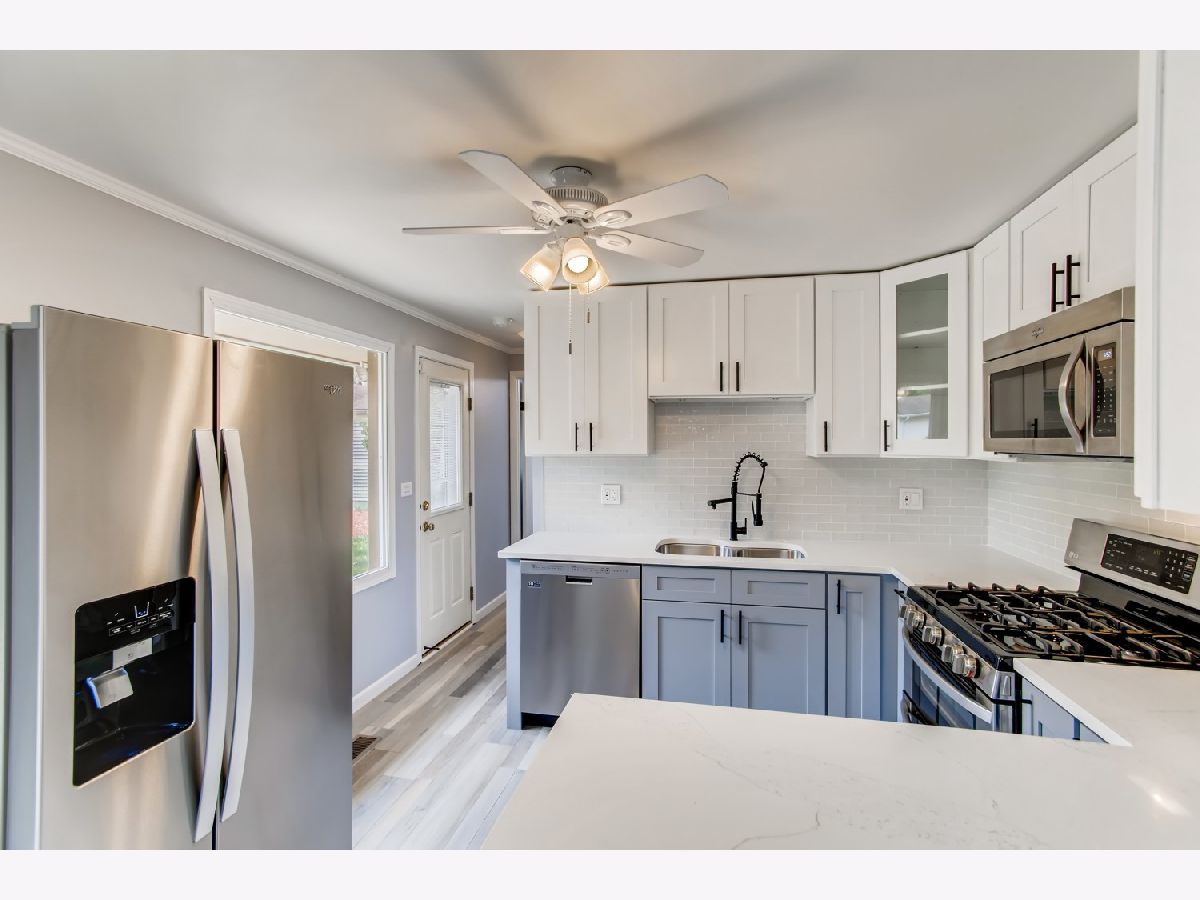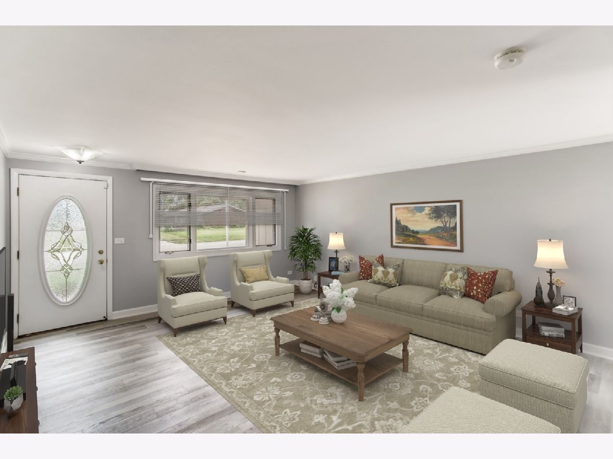 Move right in to this spacious 3 bedroom, 1 1/2 bath ranch home with many new updates throughout. All new natural wood overlay engineered hardwood floor throughout many of the freshly painted rooms. Enjoy relaxing in the spacious living room or retreat to the large family room with a wood burning fireplace. All newer SS appliances in the kitchen - Maytag dishwasher, Whirlpool side by side refrigerator, and an LG 5 gas burner stove with overhead microwave. New quartz countertops, tiled backsplash and spacious new cabinets. Double SS kitchen sink with a disposal. Landscaping has been updated. Insulated 2 car garage with a heater (sold AS-IS). Enter the yard through one of 2 sliding patio doors to the fenced in yard. In a corner of the yard you find a large roomy shed with remote overhead door access. Both bathrooms have been completely redone. Included with the property is a working lawn sprinkler system (sold AS-IS).The home has newer windows as well. A security system with sensors and cameras is in place to be utilized. Many schools and parks, even a park district water park, are within walking distance, as well as, shopping and entertainments options near by. East access to the Interstate with in minutes and the Metra stop is easy to get to - take Springinsguth south straight to the station. Welcome to your new home.