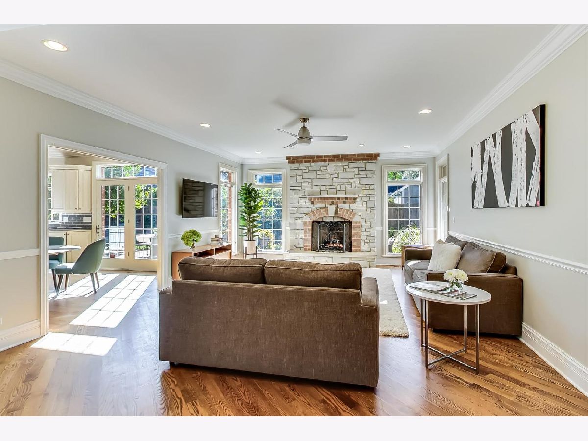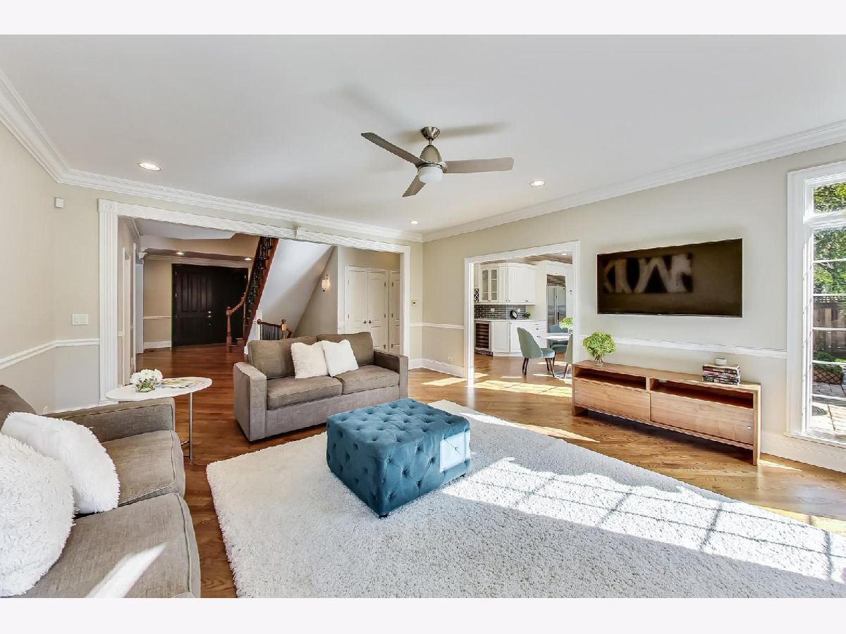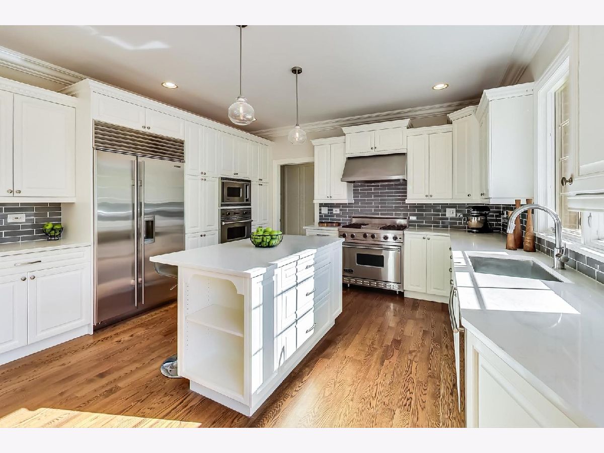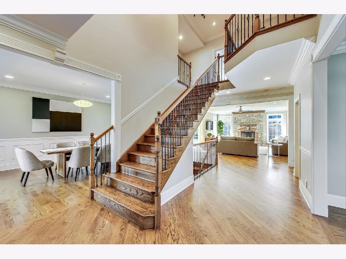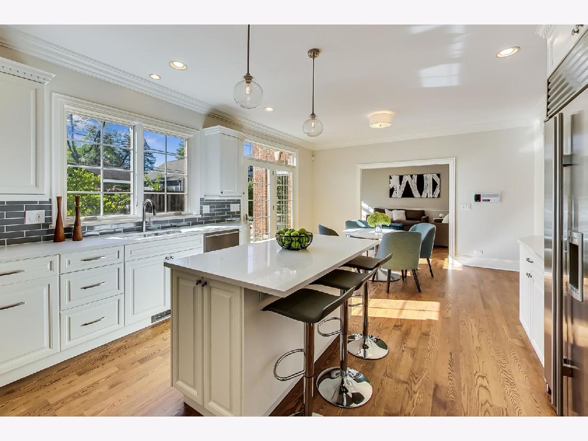 Gorgeous 5,800+ sq ft 6 bedroom, 5 bathroom Glenview residence! Can you say "perfect home for entertaining"!?!? Open floor plan with oversized rooms throughout and floor-to-ceiling windows on first floor make this bright and airy home absolutely stunning. Chef's kitchen includes while shaker custom cabinetry, quartz counters, oversized island with breakfast bar, high-end Subzero and Wolf stainless steel appliances, butlers pantry with wine storage and wine cooler. Grand foyer flows freely into formal living room, dining room or first floor family room. Elegant dining room with crown molding, large enough for 12 person table. First floor bedroom is currently being used as an office, but spacious for a guest suite. 2nd floor boasts spacious primary suite, three additional bedrooms and a bonus "great room" space for theater room/office/laundry room/etc. Primary suite entices with french doors, cathedral ceilings, professionally organized walk-in closet, spa-like bathroom with dual vanity, jet tub and frameless glass shower. Hardwood floors throughout 1st and 2nd floors. Renovated (2020) lower level boasts wood burning fireplace in rec room, large play room with great storage, huge storage/utility/HVAC room, 6th bedroom & full bathroom w/steam shower. Other fantastic features include:skylights, mudroom off the garage with built-in cubbies, spacious 2 car garage with car pad for 3rd car, fenced yard, massive brick patio w/outdoor fireplace, professional landscaped garden & more! 1 block to park, 2 blocks to Johns Park, 5 blocks to downtown Glenview, library and restaurants, 12 min walk to GV or Golf Metra stop, and more.